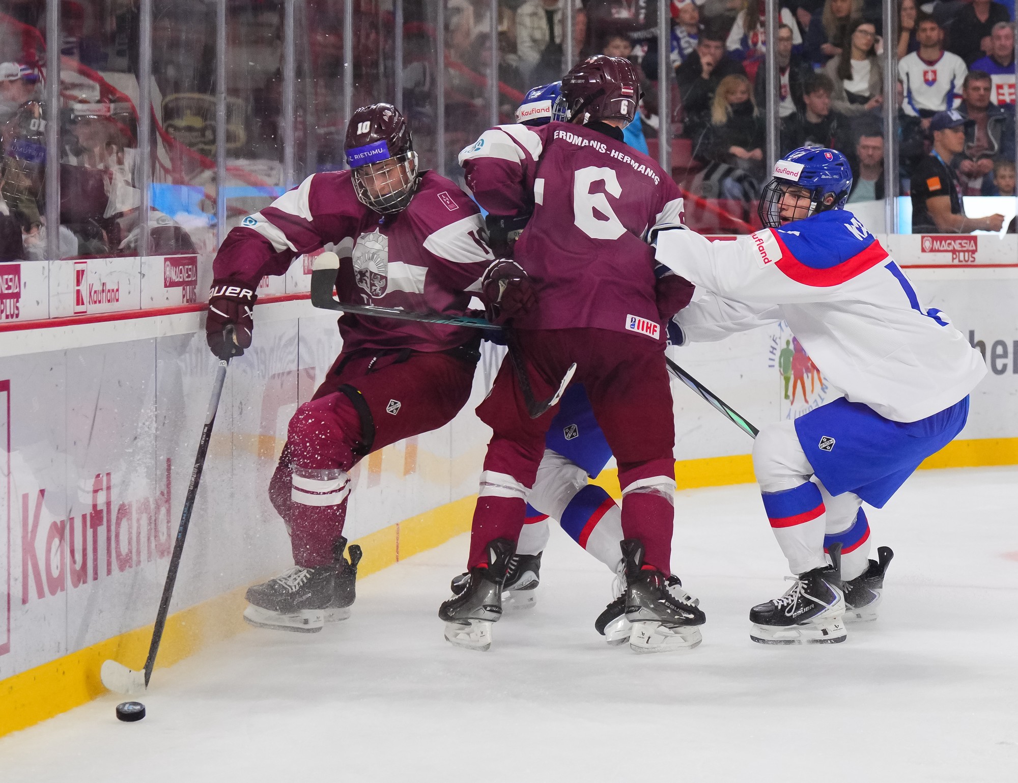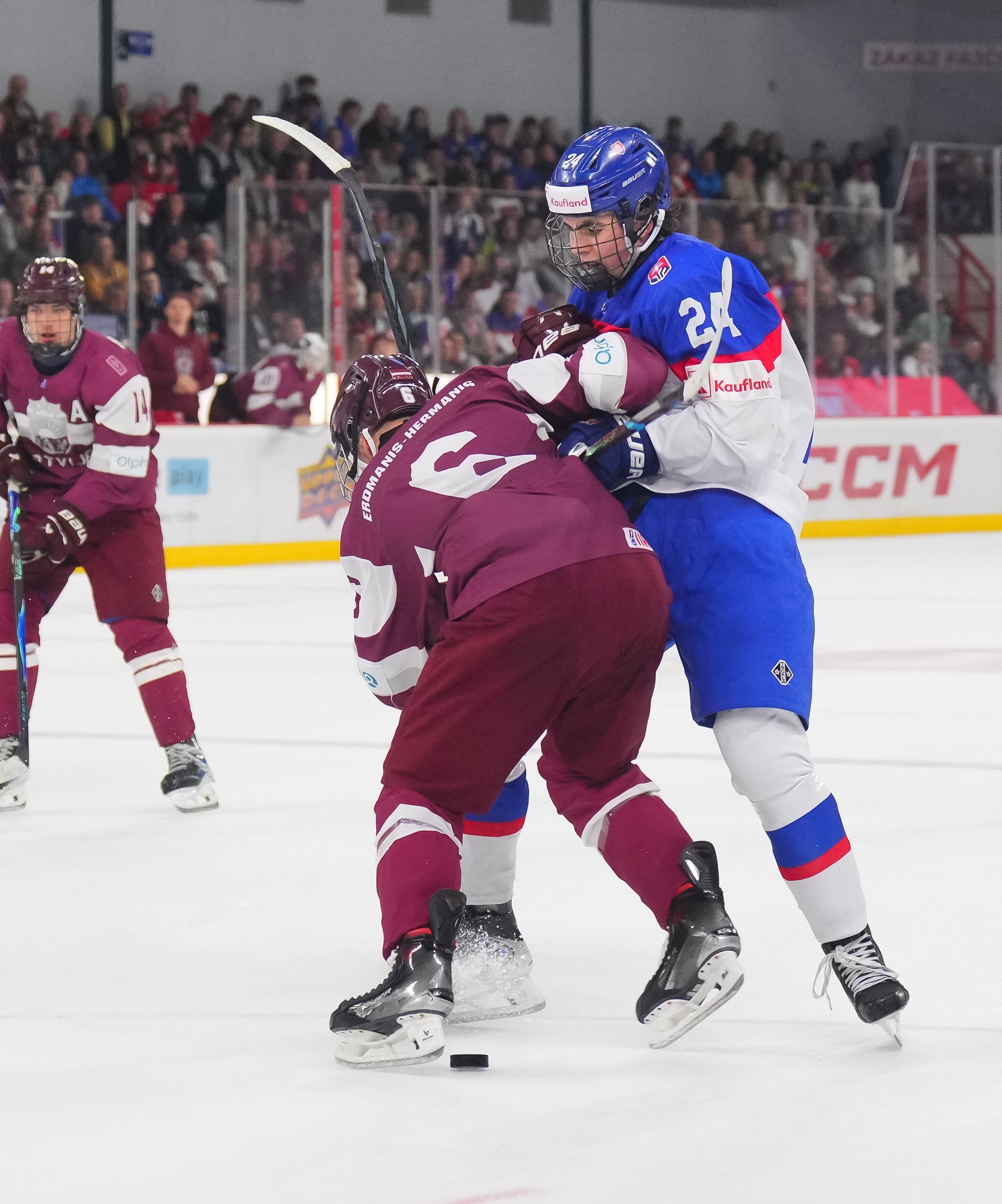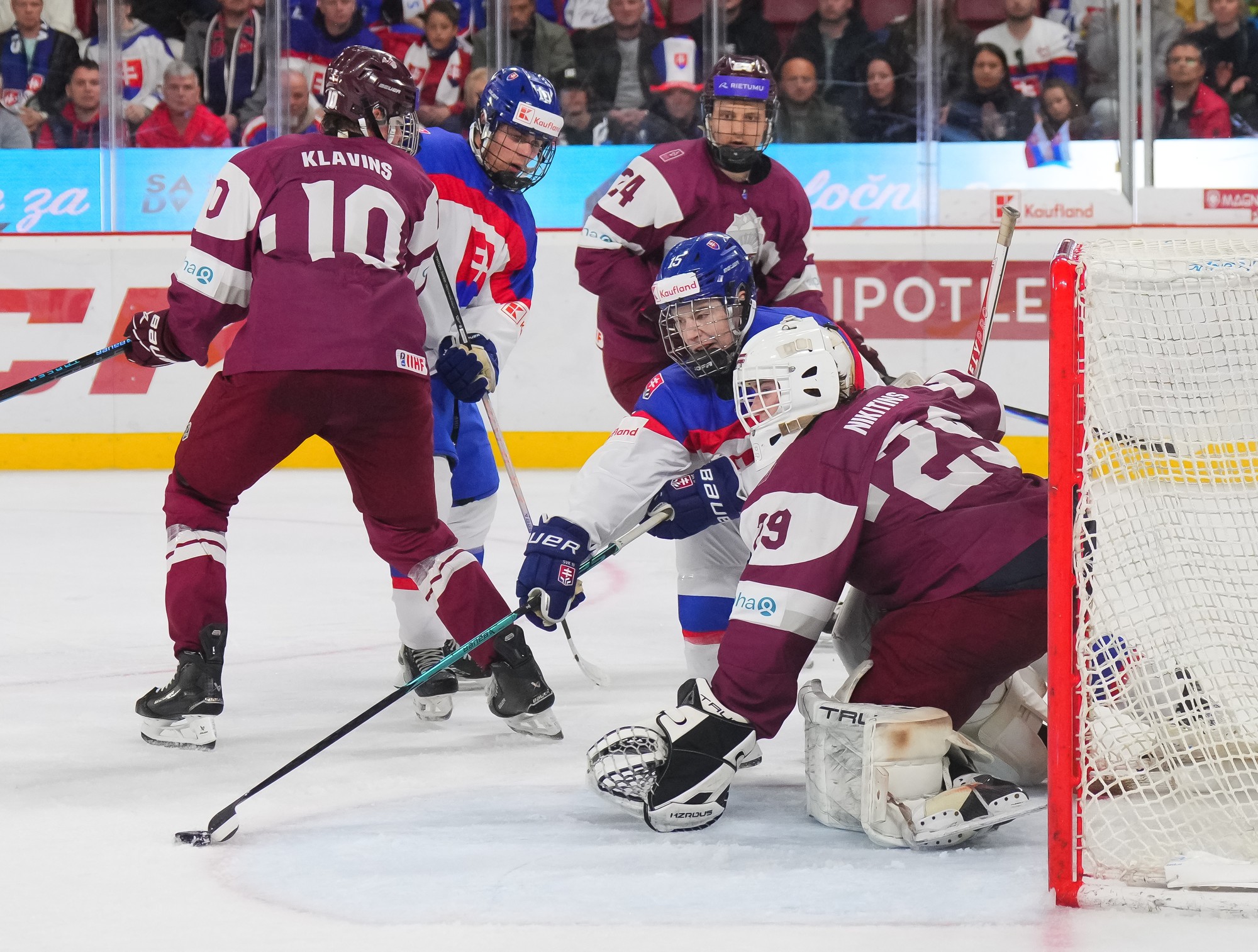 But Latvia got a huge lift with yesterday’s win over Norway – its biggest victory at the U18 Worlds – and wanted to maintain that momentum. Instead of folding, Olegs Sorokins’ team dug deep and began to test Slovak nerves.