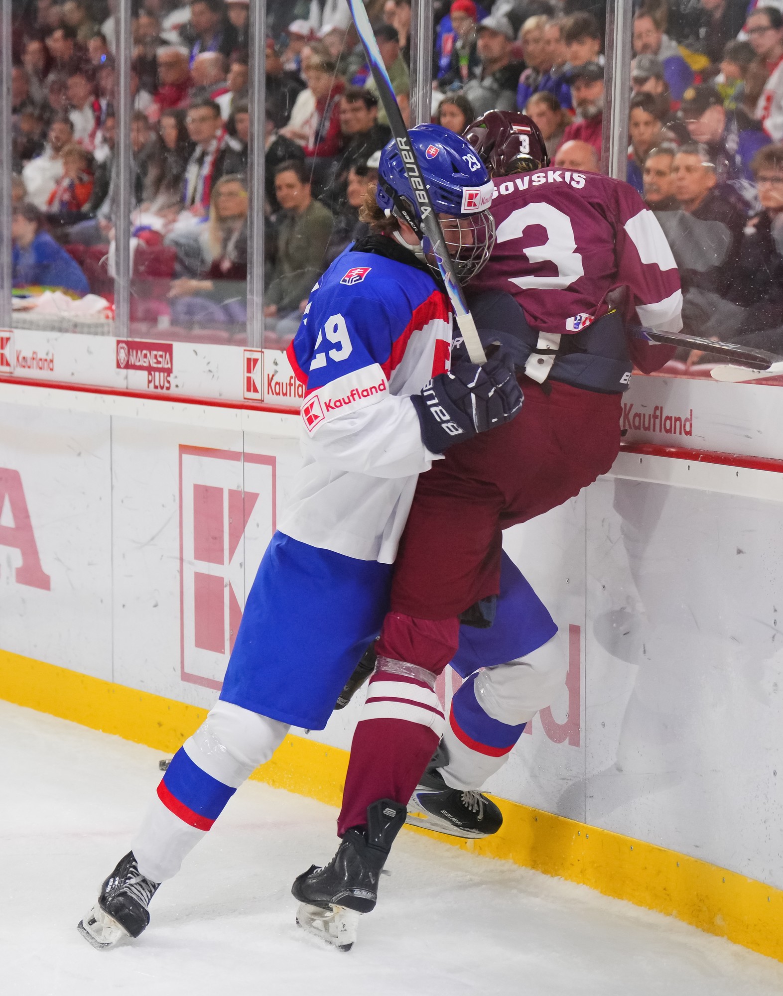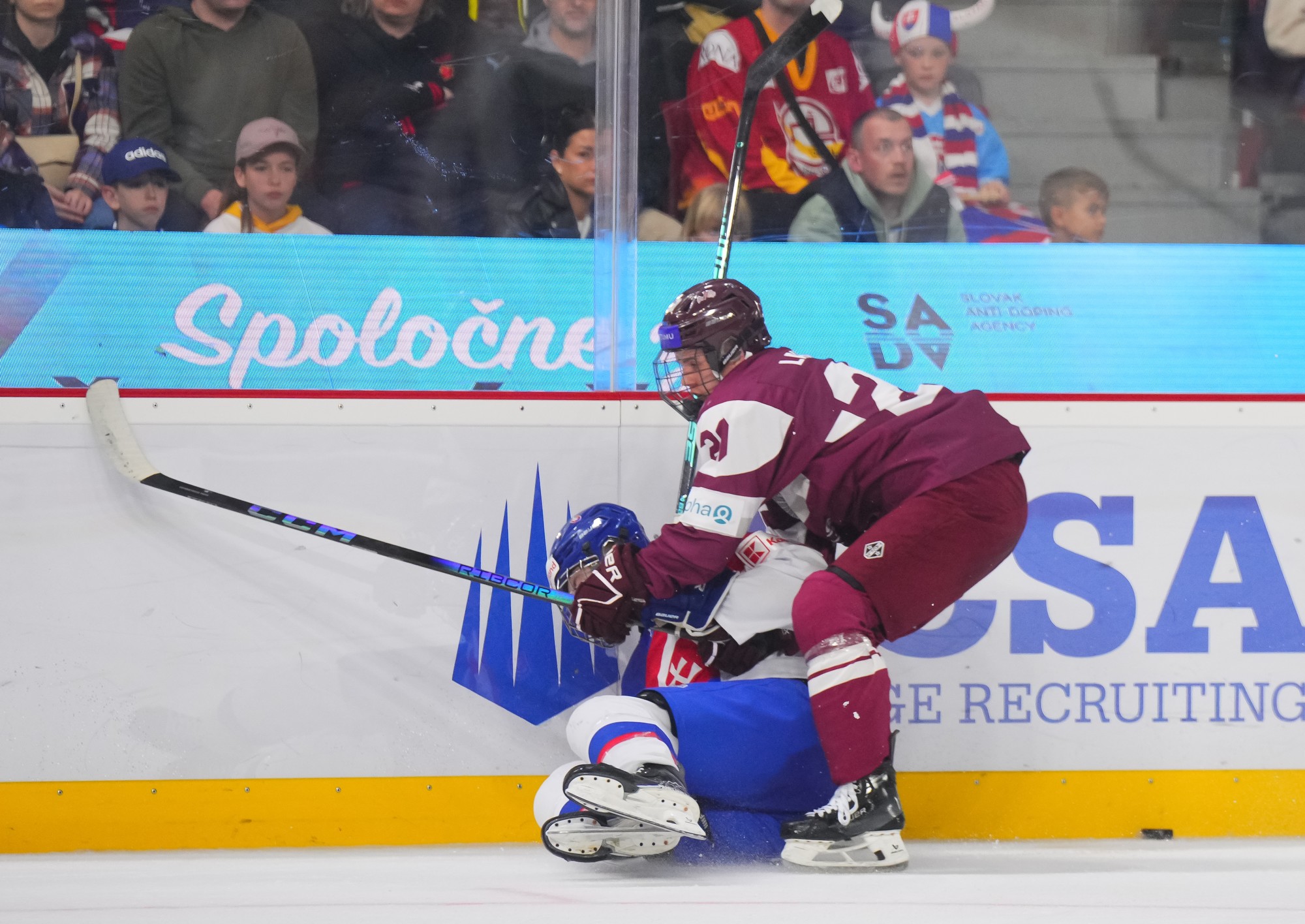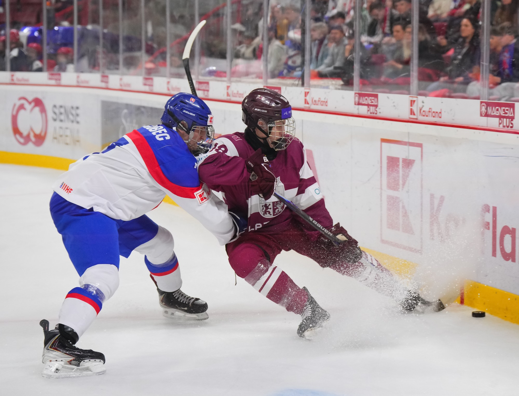 But Latvia got a huge lift with yesterday’s win over Norway – its biggest victory at the U18 Worlds – and wanted to maintain that momentum. Instead of folding, Olegs Sorokins’ team dug deep and began to test Slovak nerves.