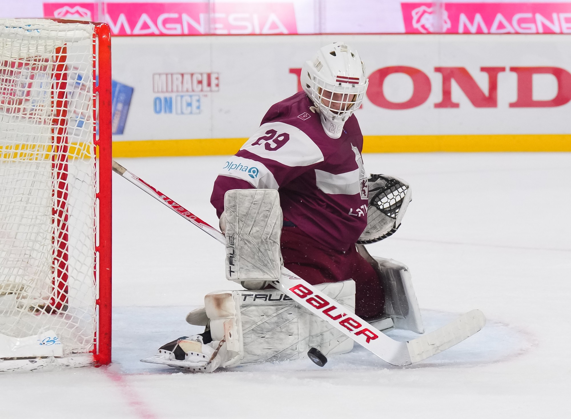 The home team survived some anxious moments in the middle frame, and came out for the third ready to settle the outcome. Kazda saw his shot hit the inside of the post and fly across the front of the net to relative safety. But Latvia could not clear its lines and the play returned to the point for Goljer to smash home his second of the game.