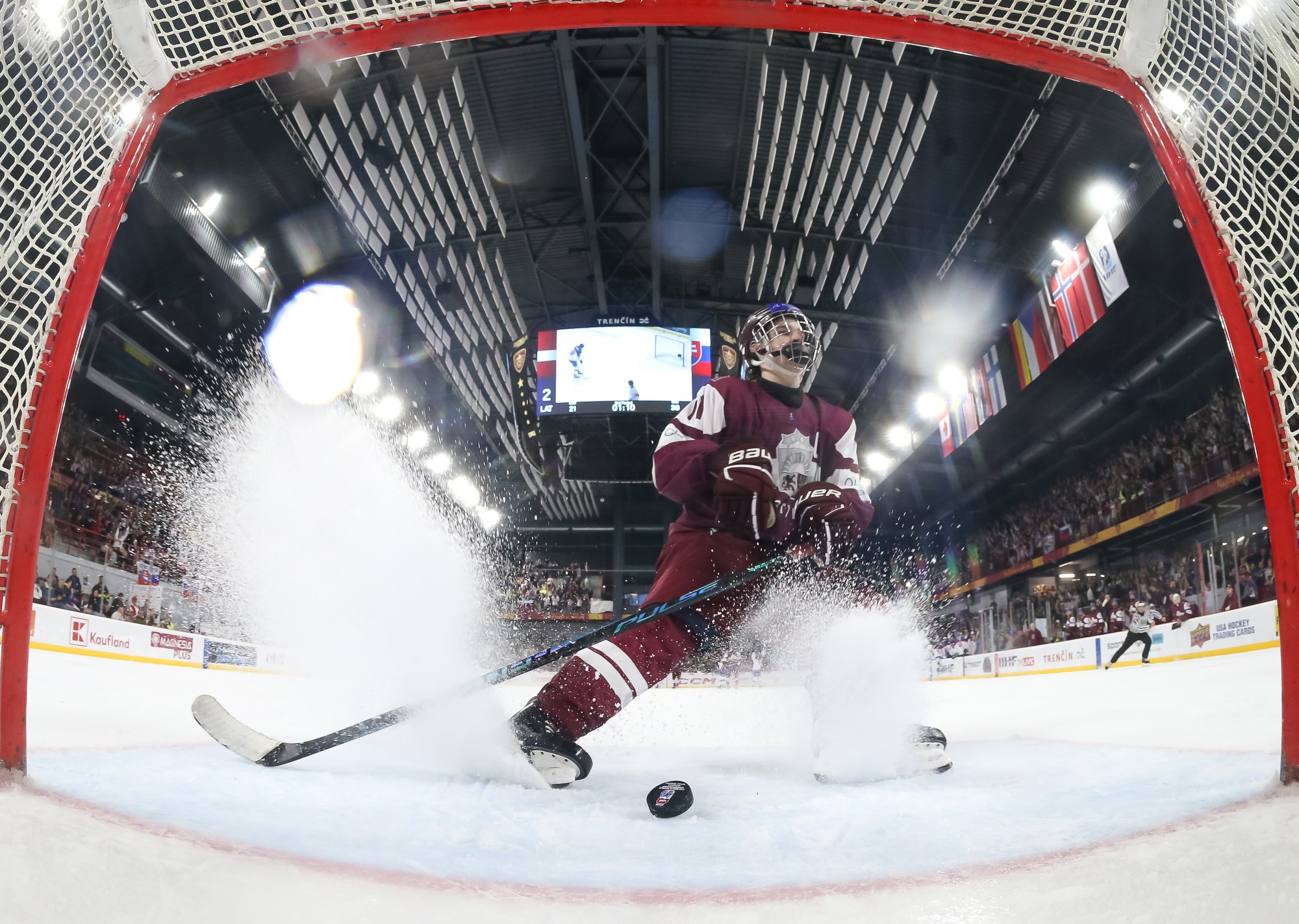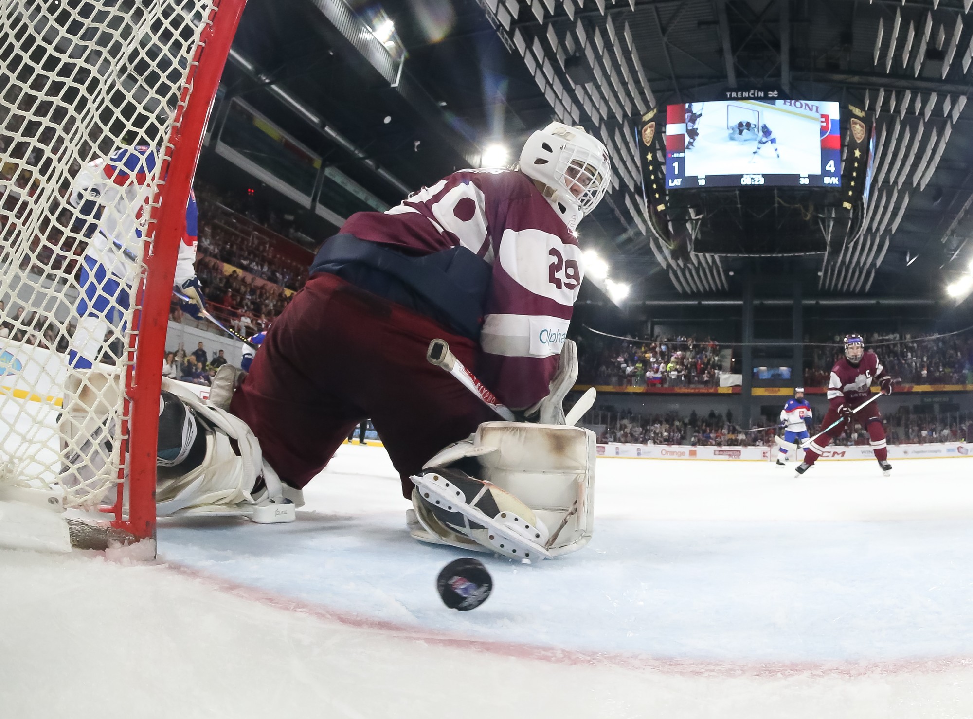 In the closing stages, Latvia killed a penalty for the first time in the game and even got a consolation goal from Stefans Rots with two to play. But an empty net goal from Sebastian Brath ensured there was no way back for the Baltic nation, which now travels to Bratislava to play Group B winner USA in the knock-out rounds.