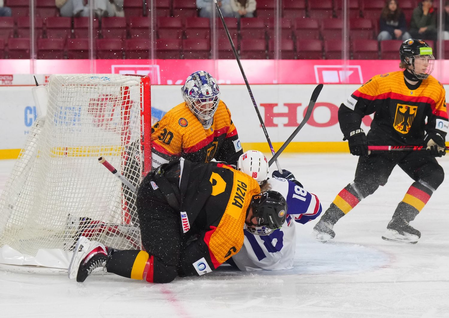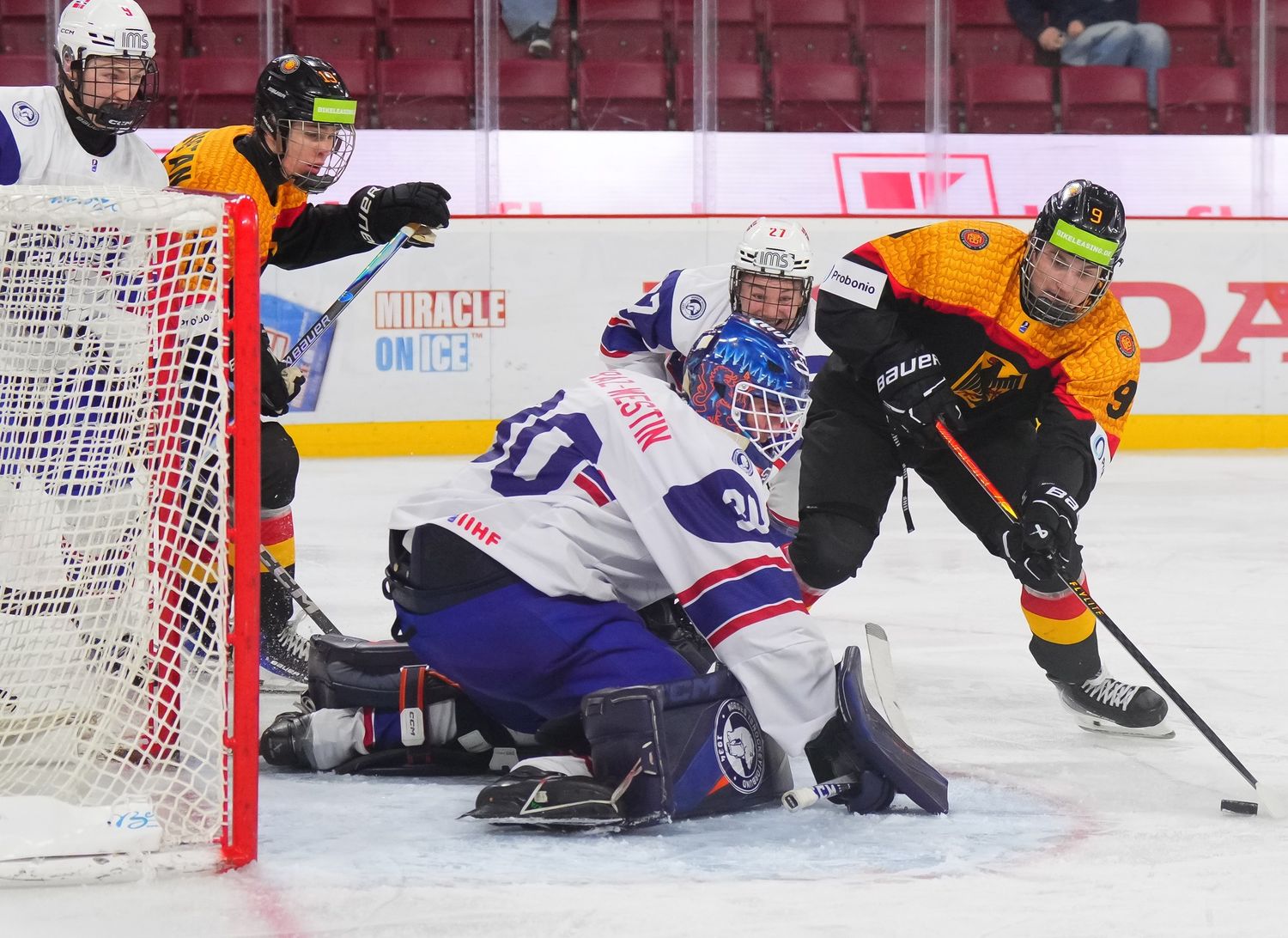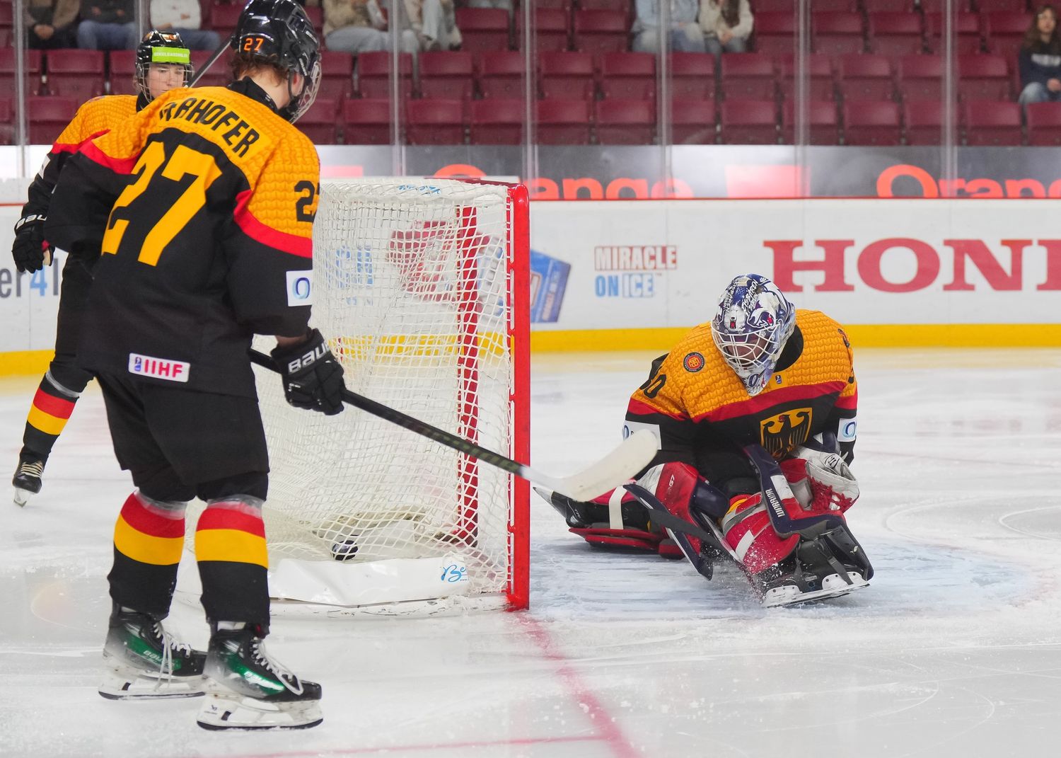 And Germany was close to tying it when a Jonas Schwarz shot hit the post. It bounced out across the crease, but no forward could get a stick to steer it into the open net.