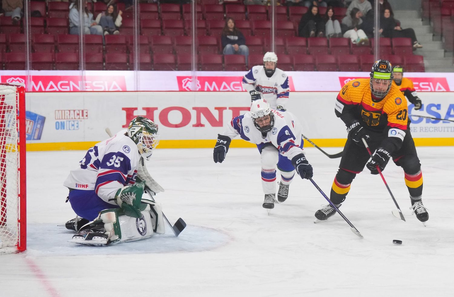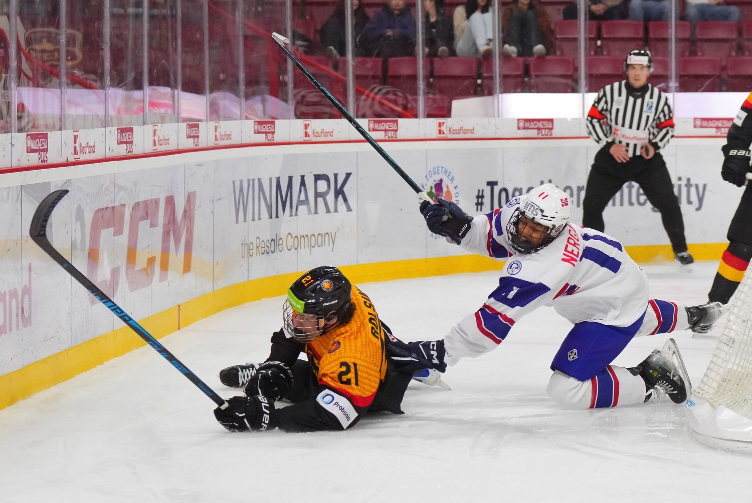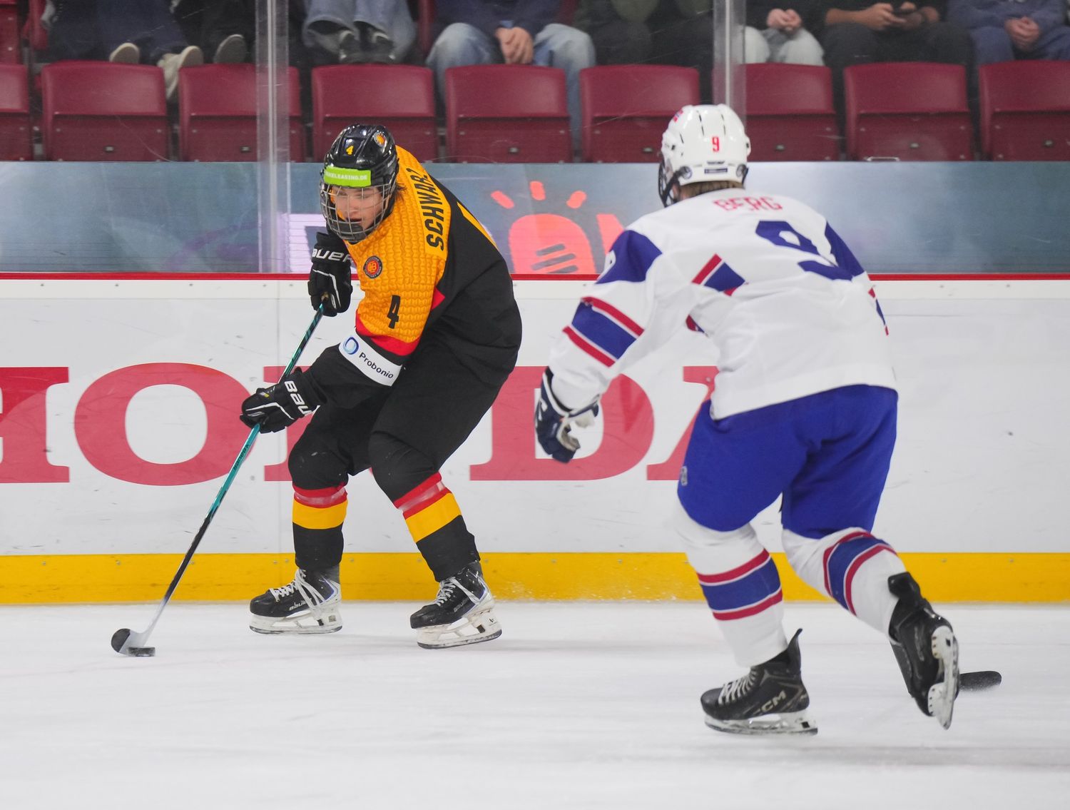 And Germany was close to tying it when a Jonas Schwarz shot hit the post. It bounced out across the crease, but no forward could get a stick to steer it into the open net.