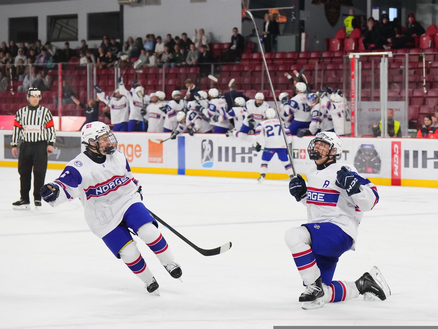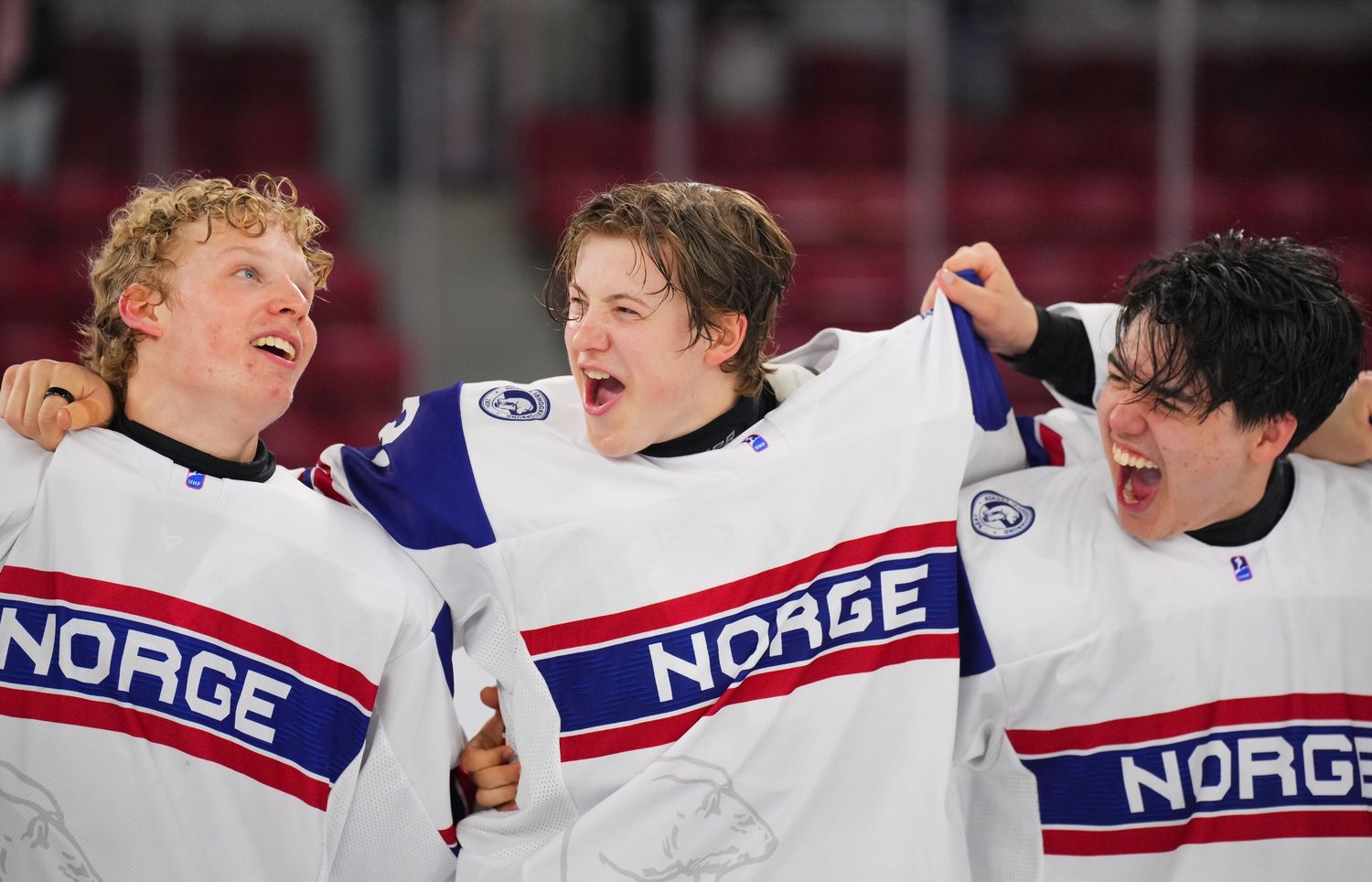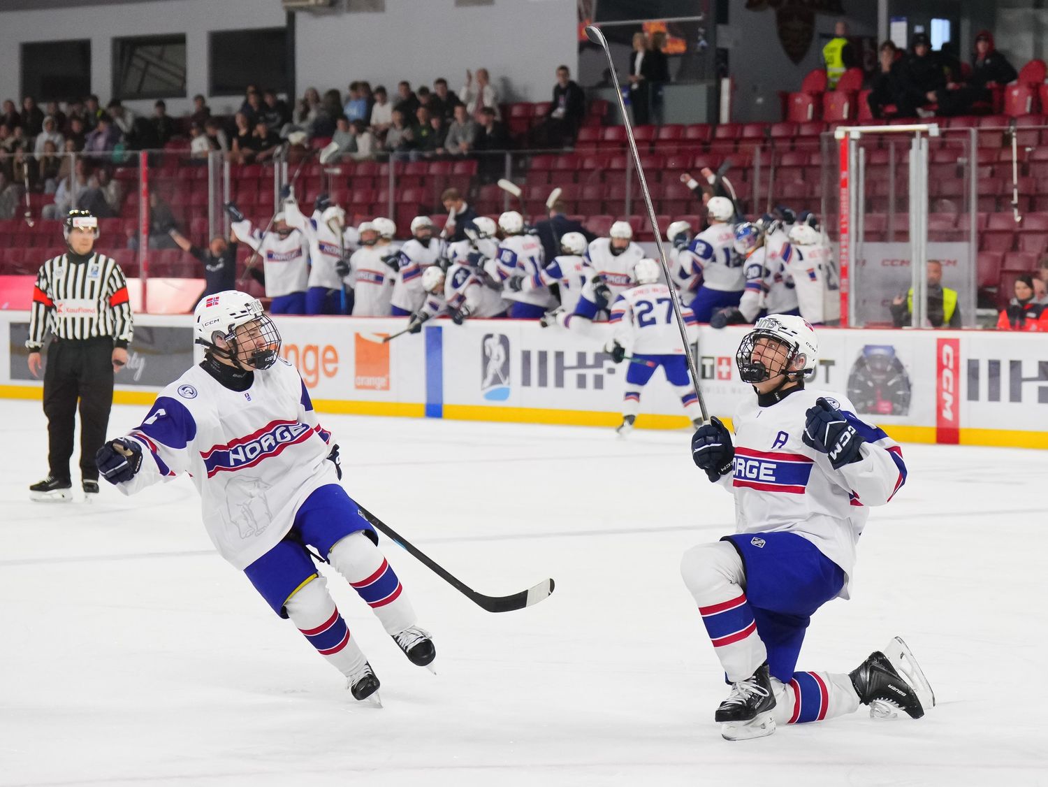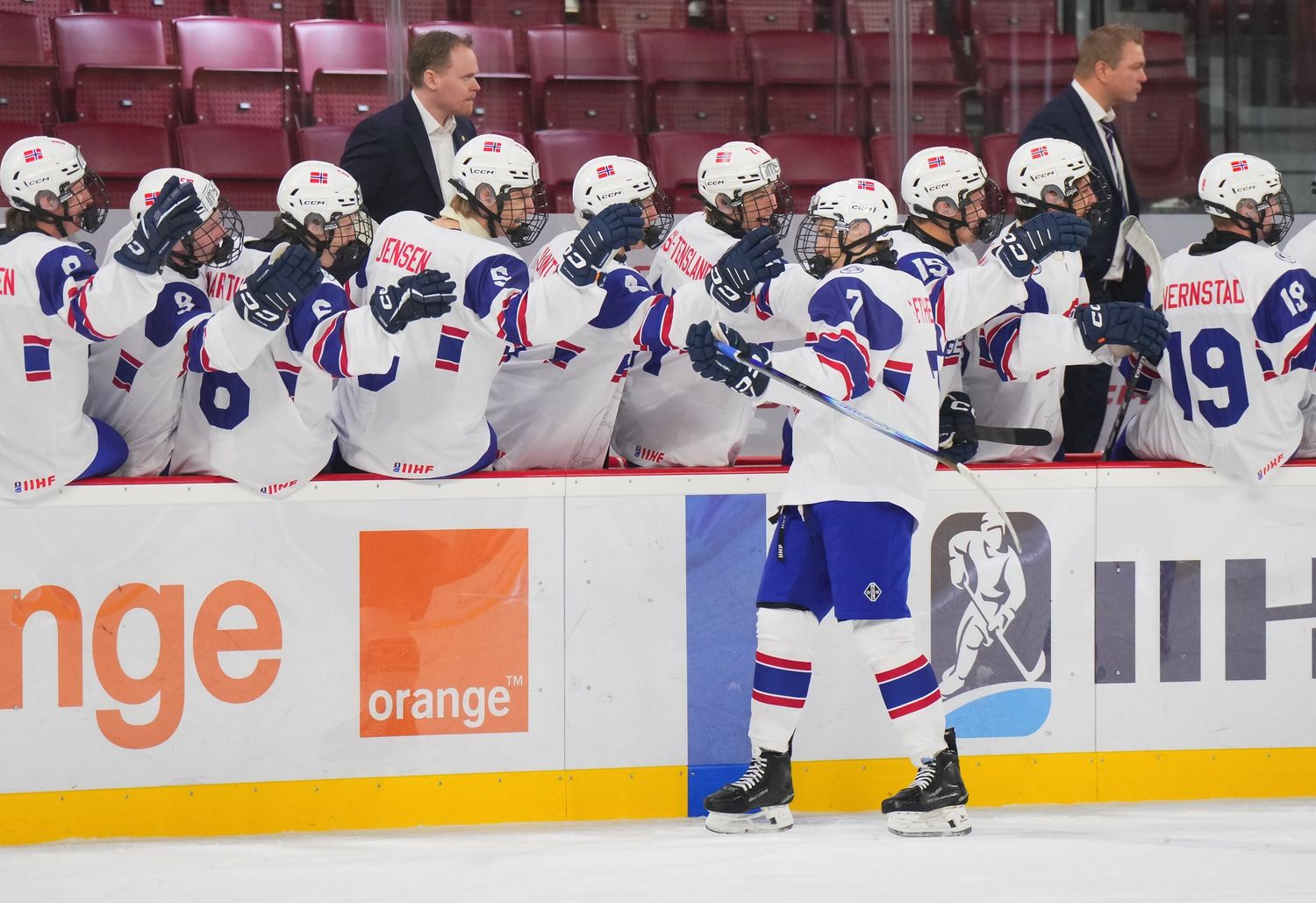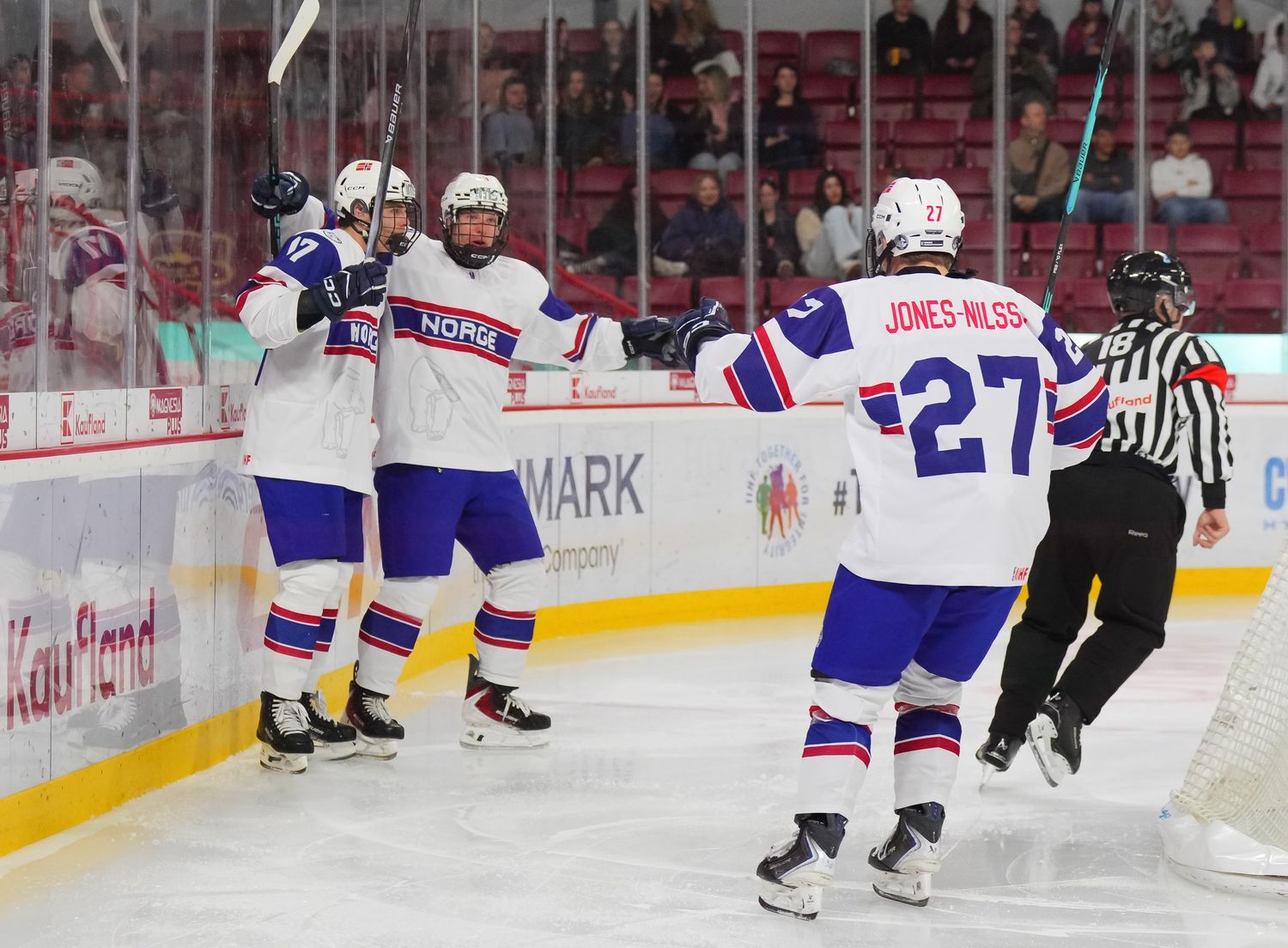 But those same Norwegians were celebrating 28 seconds after the restart as Aaram Olsen doubled the lead. The forward, playing his final game at this level after three U18 World Championships, found open ice on the edge of the circle and shot home Benjamin Haglund’s pass from behind the net.