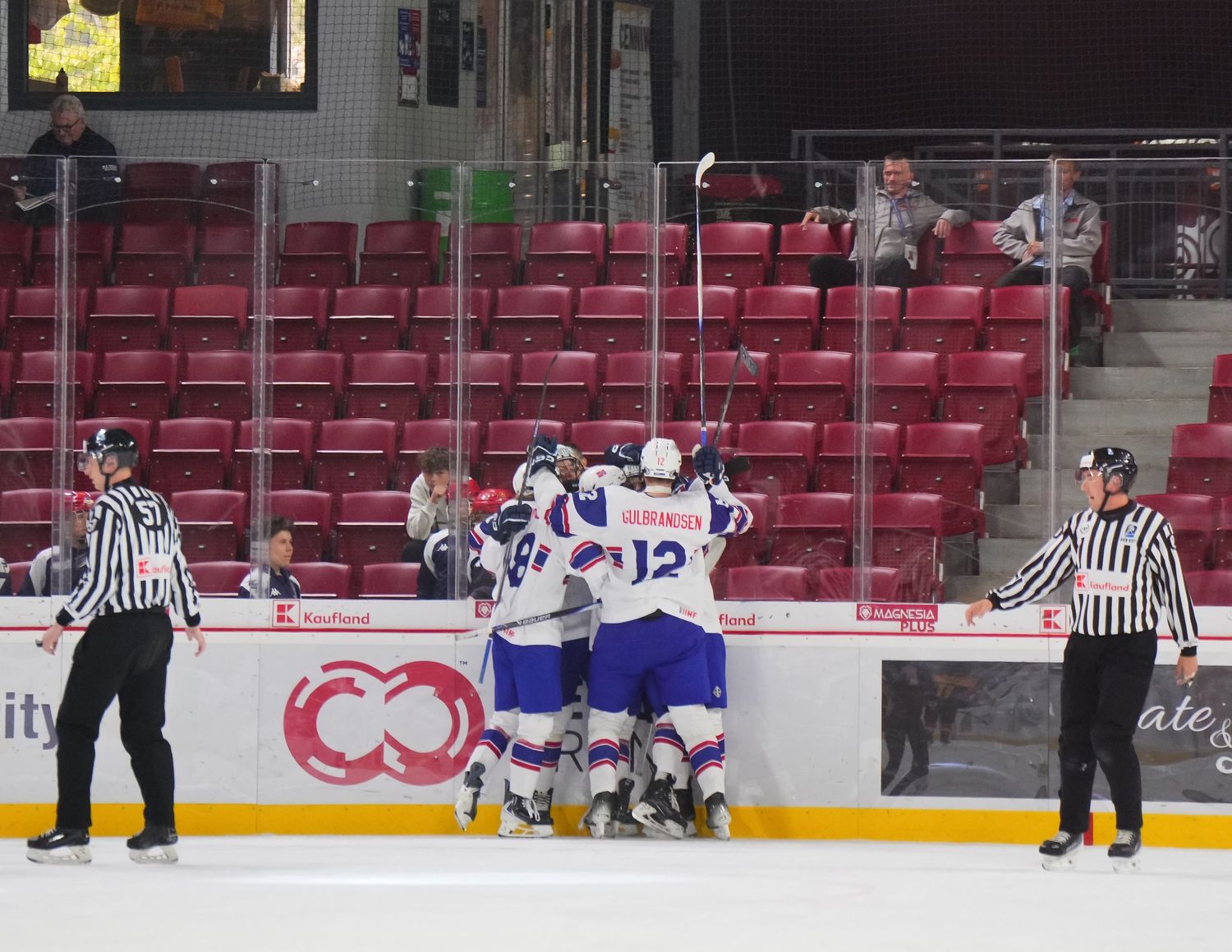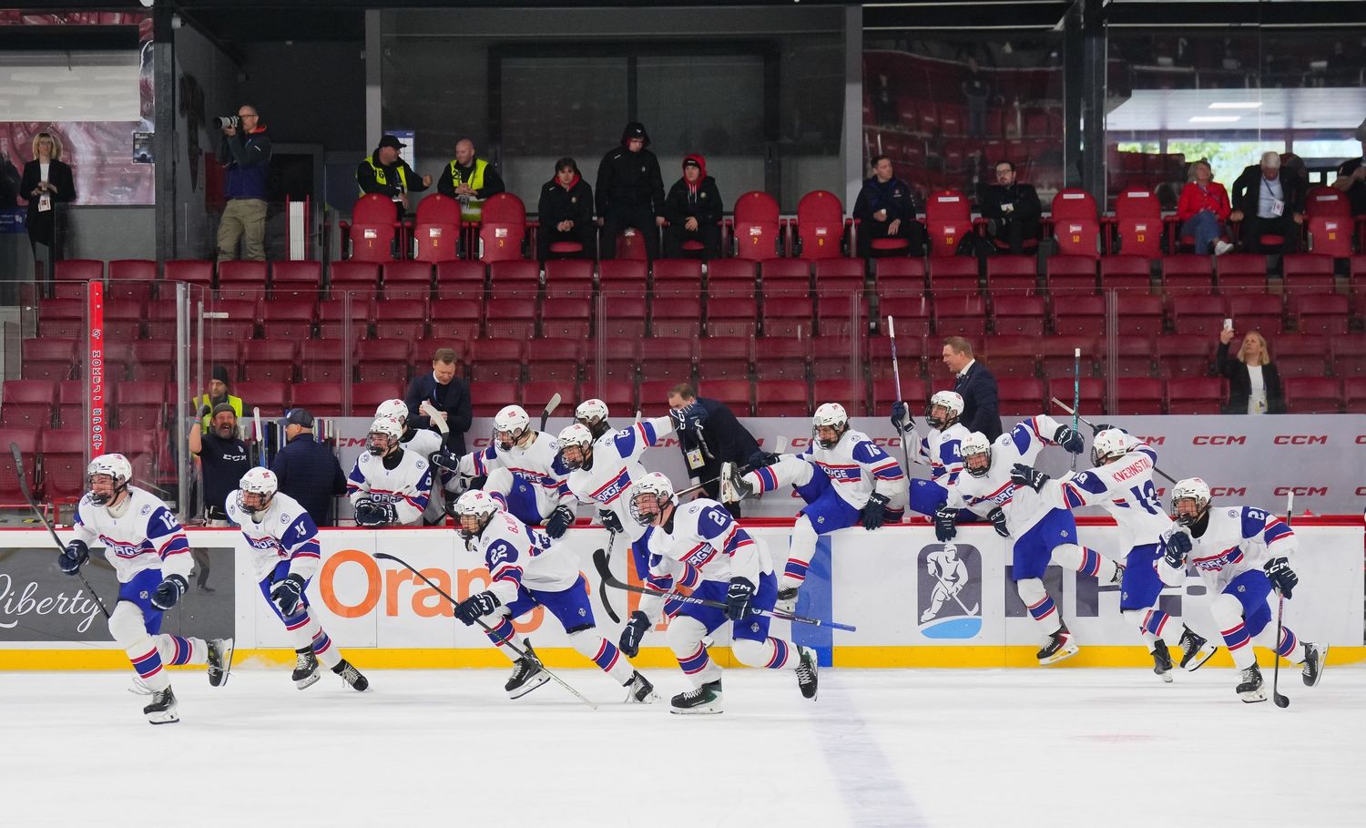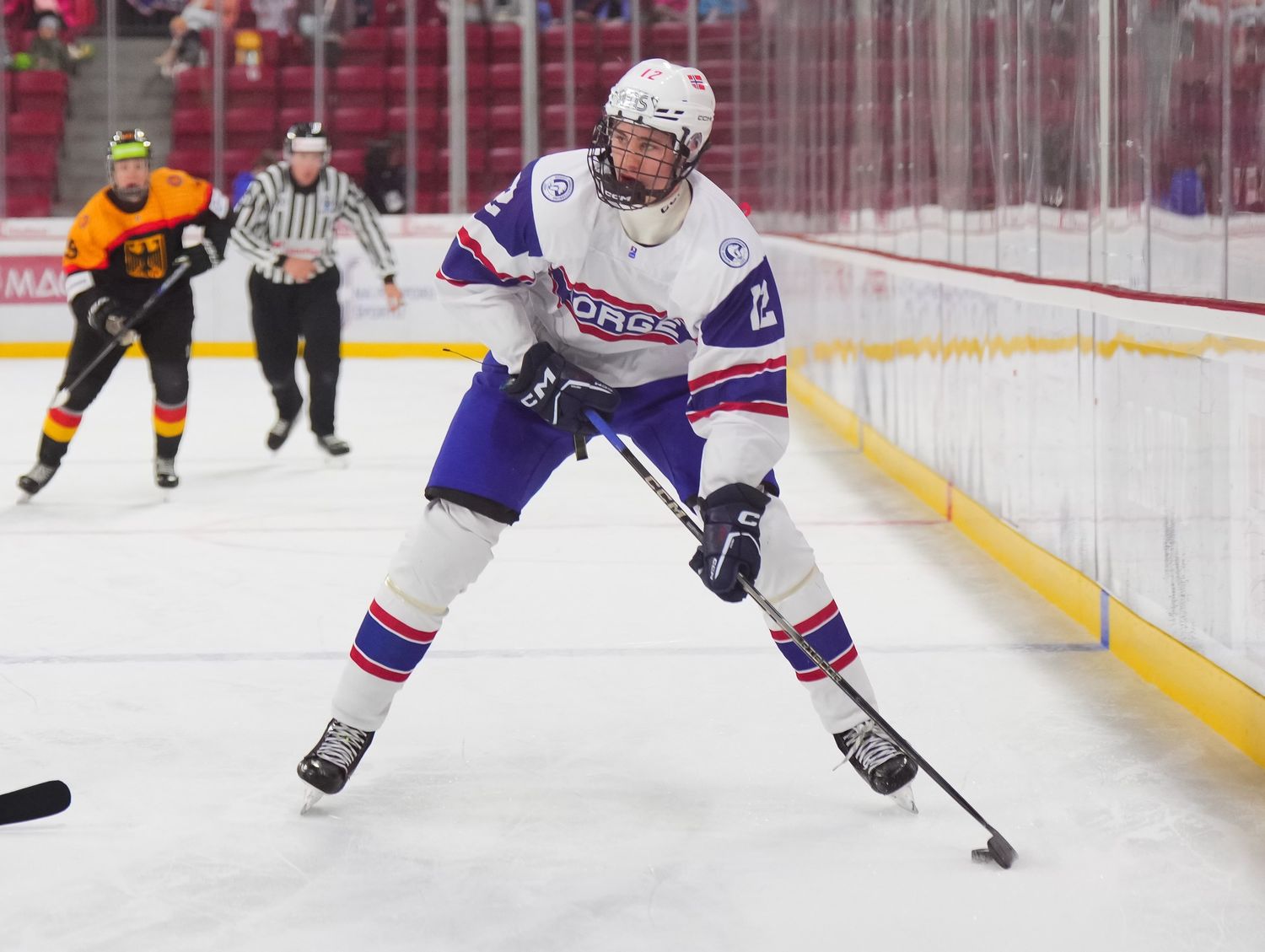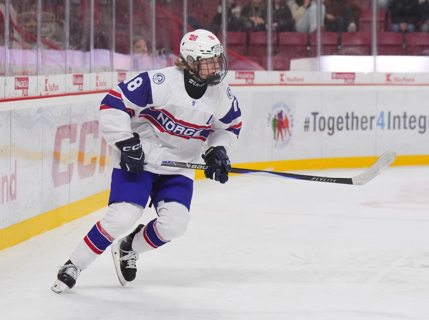 But those same Norwegians were celebrating 28 seconds after the restart as Aaram Olsen doubled the lead. The forward, playing his final game at this level after three U18 World Championships, found open ice on the edge of the circle and shot home Benjamin Haglund’s pass from behind the net.