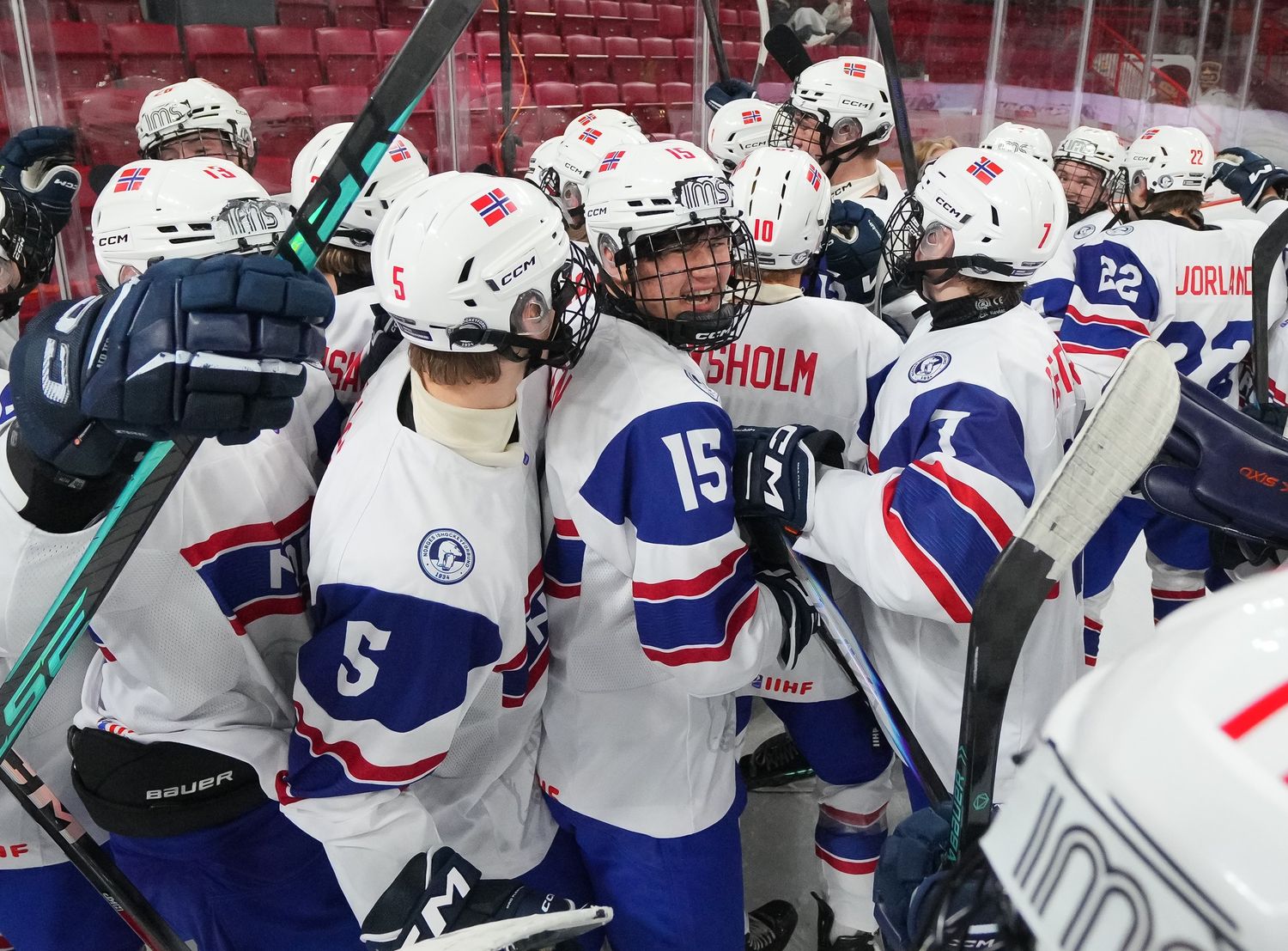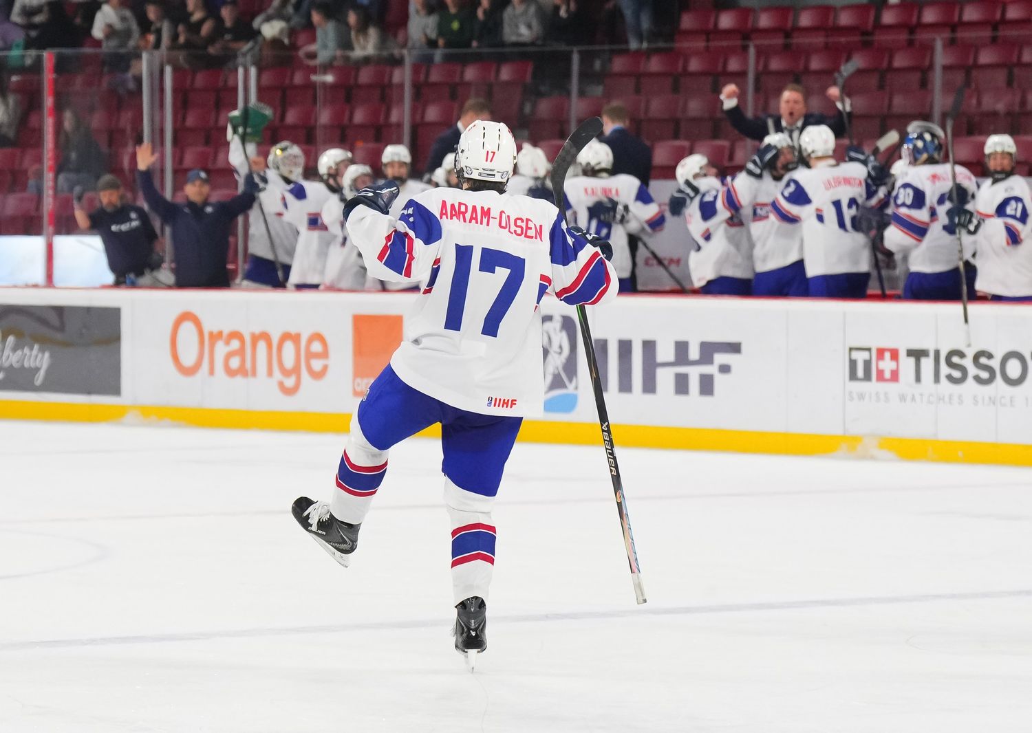 Two goals in the last 75 seconds from Niklas Aaram Olsen secured Norway’s place in the IIHF U18 Men’s World Championship top division in the most dramatic fashion.