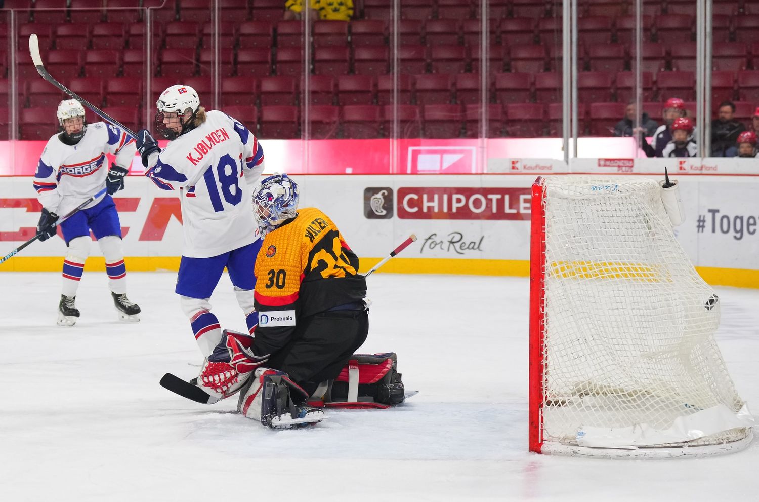 Timraz-Westin’s desperate stretch proved too much for him, and he left the game with Aas taking over in the Norwegian net. It wasn’t long before he was closing the door on the effervescent Calce as Germany scented survival.