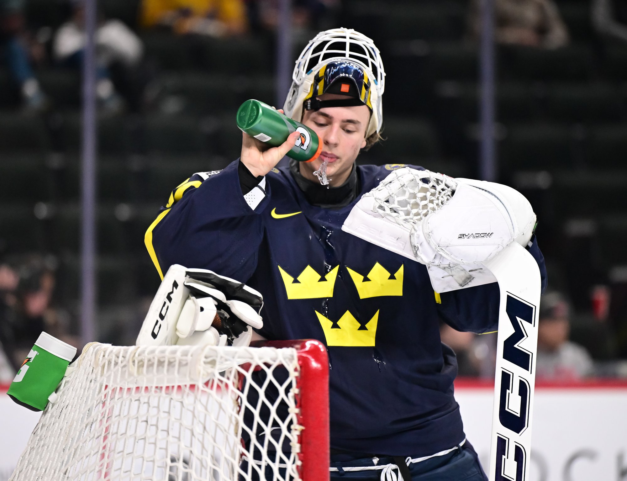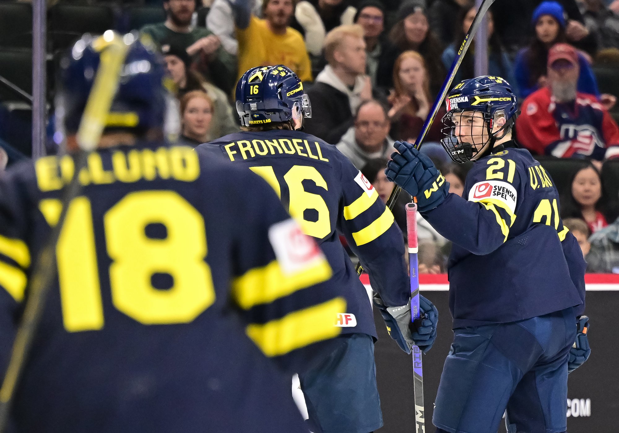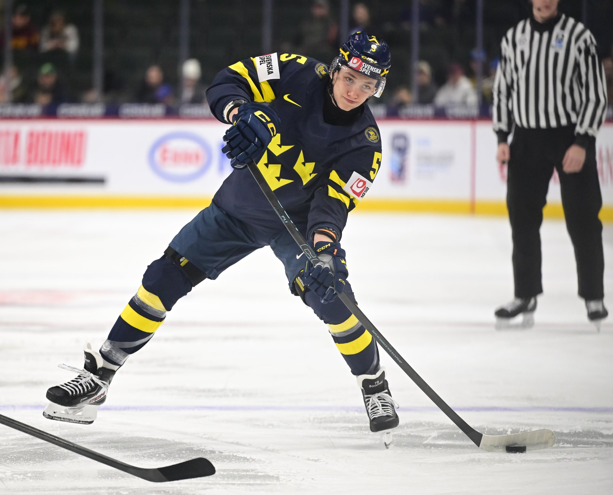 Sweden started the third on a power play and didn't waste any time tying the score. Viggo Bjorck's snap shot from the high slot at 57 seconds wasn't a power-play goal exactly, but Jonah Neuenschwander's penalty expired only one second previous, and he wasn't back in the play by the time Bjorck took his shot.