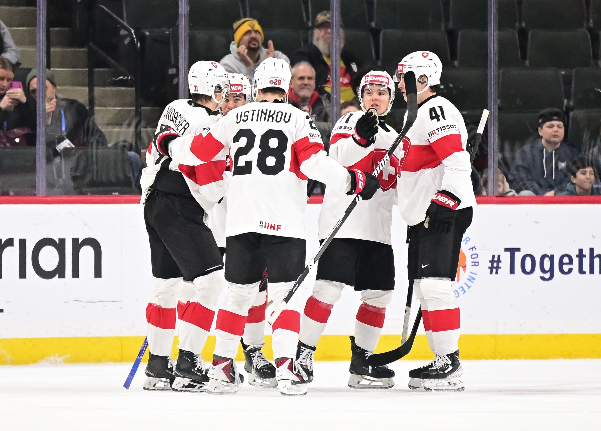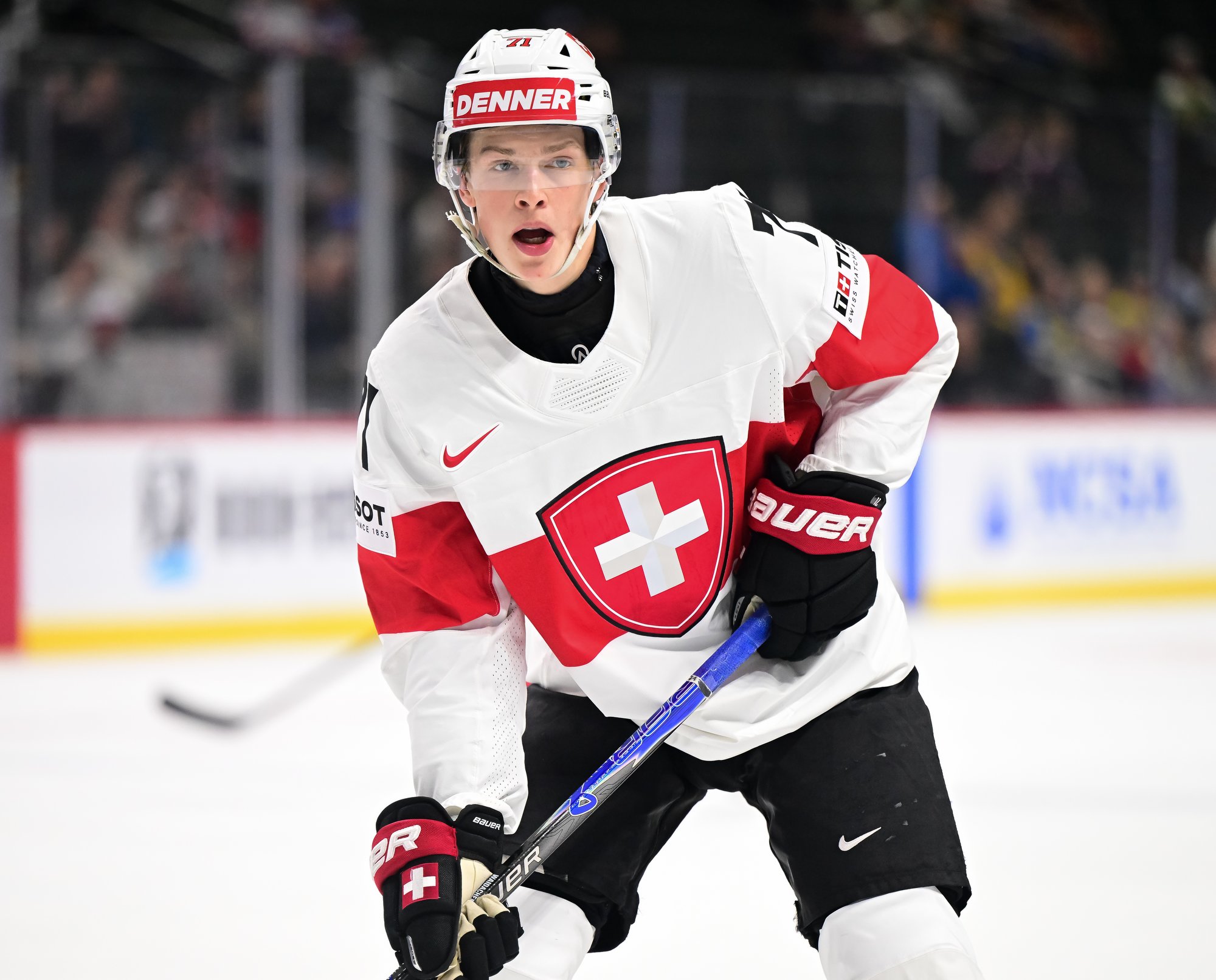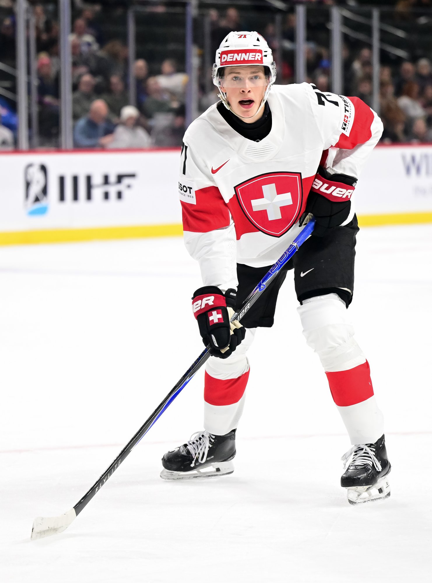 The Swiss recovered from this lapse and played their opponents evenly the rest of the period. They were rewarded at 14:27 when Waidacher’s low shot went all the way through a tangle of bodies and skates, making it a 1-1 game.