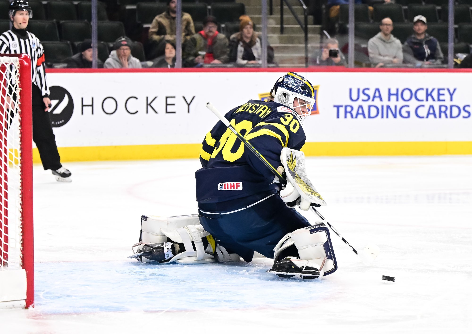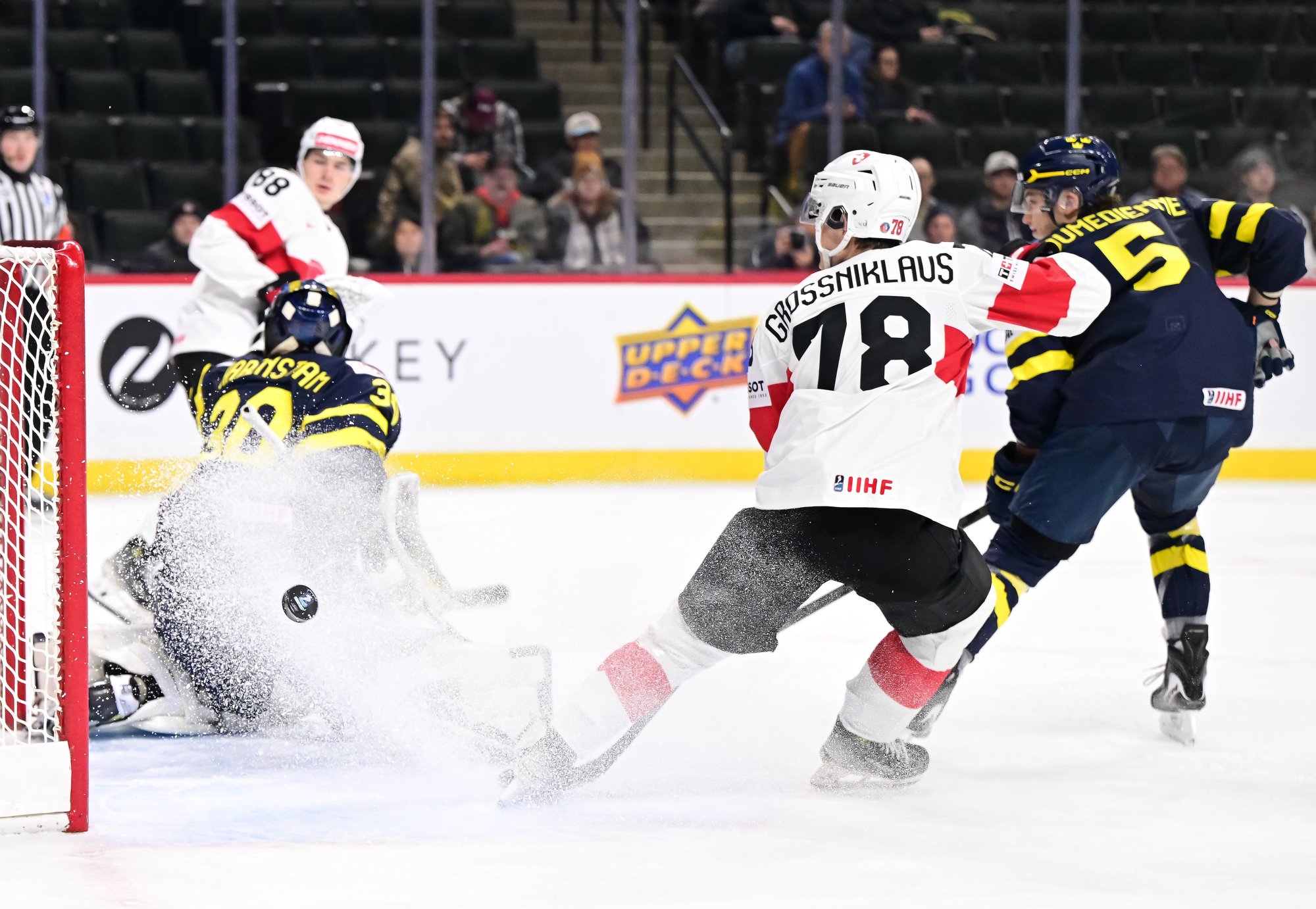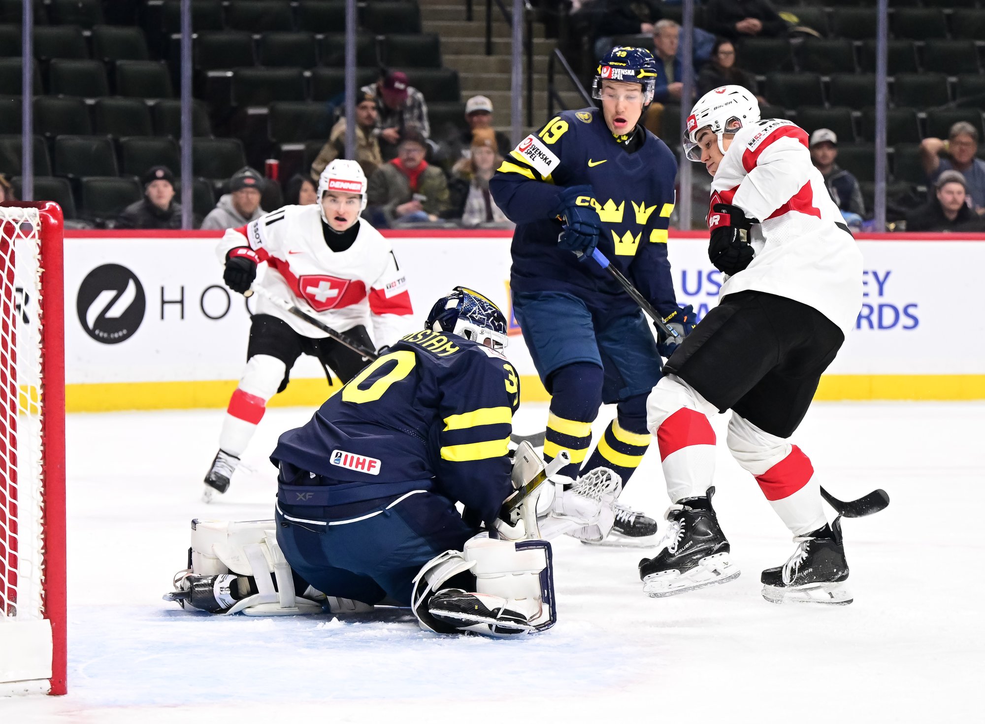 Sometimes the details make all the difference, and the start of this game was a case in point. On his first shift, captain Leon Muggli rattled a low shot off the post past Love Harenstam, but the puck stayed out. Moments later, it was the Swedes who opened the scoring.