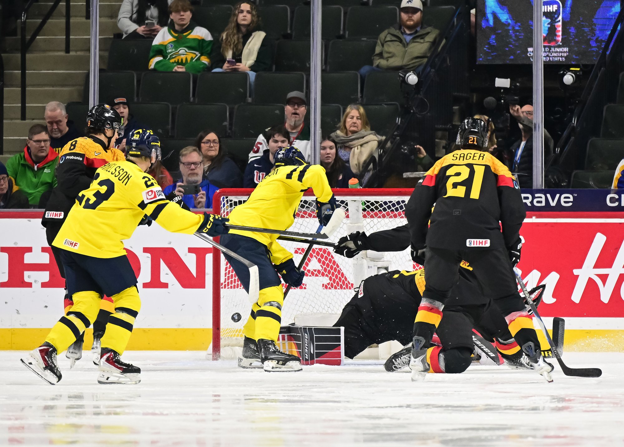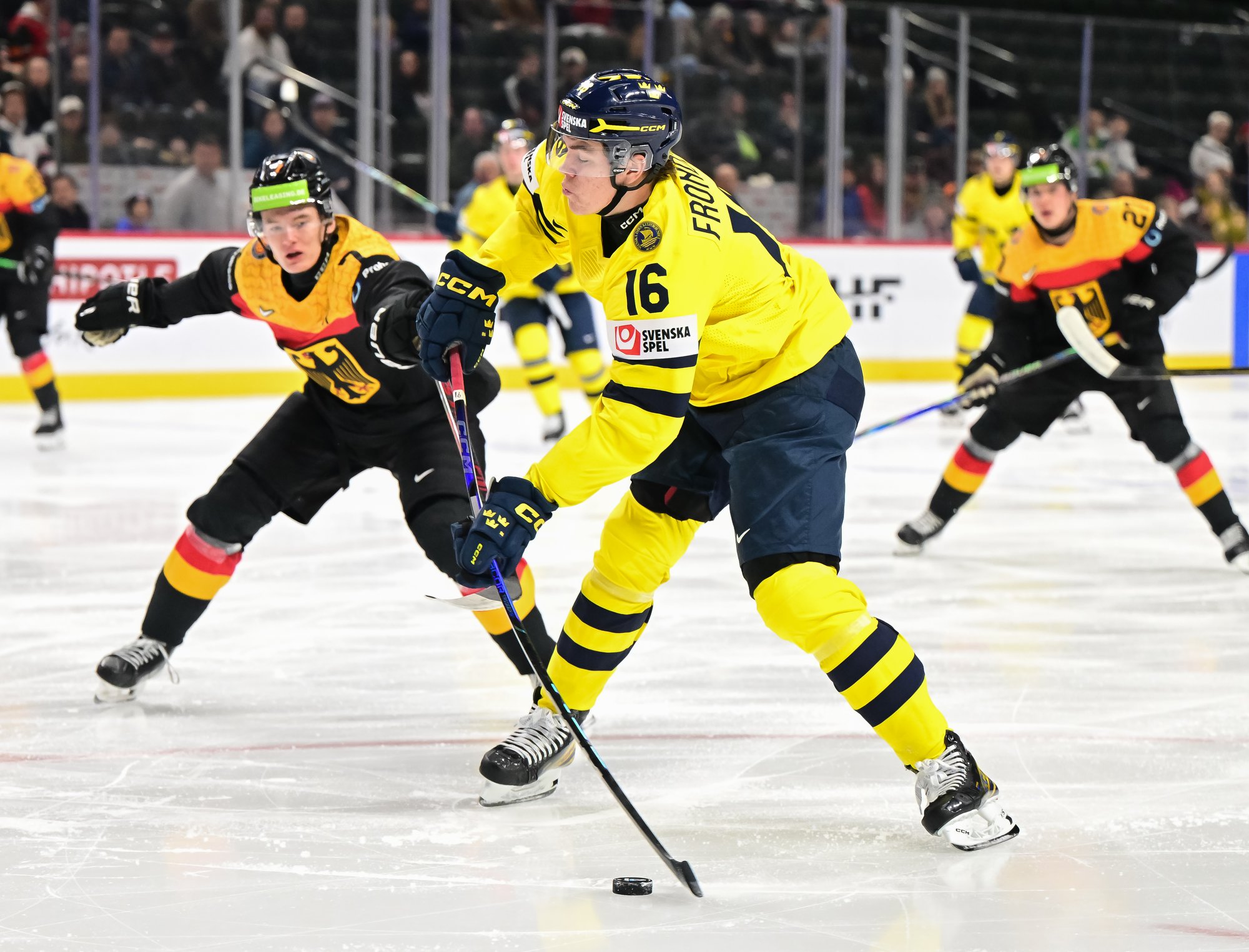 Final shots favoured Sweden 44-17. Swedish goalie Herman Liv made 16 saves for a winning World Junior debut. Germany's Linus Vieillard was replaced by Lukas Stuhrmann after giving up five goals through two periods.