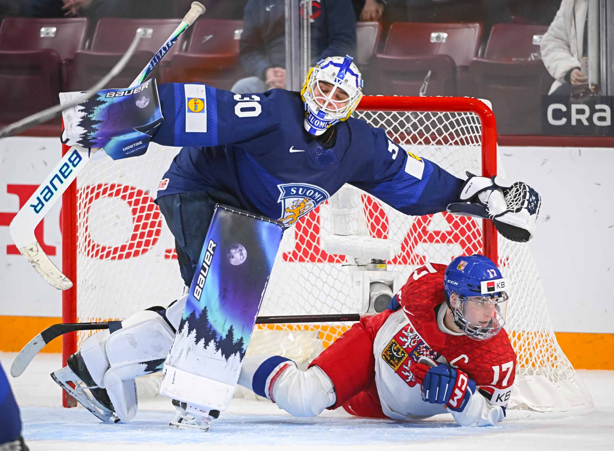 The game got off in a bad way for the Finns. Just 66 seconds after the opening faceoff, Veeti Vaisanen was assessed a major penalty and game misconduct, putting his team in a hole right away.