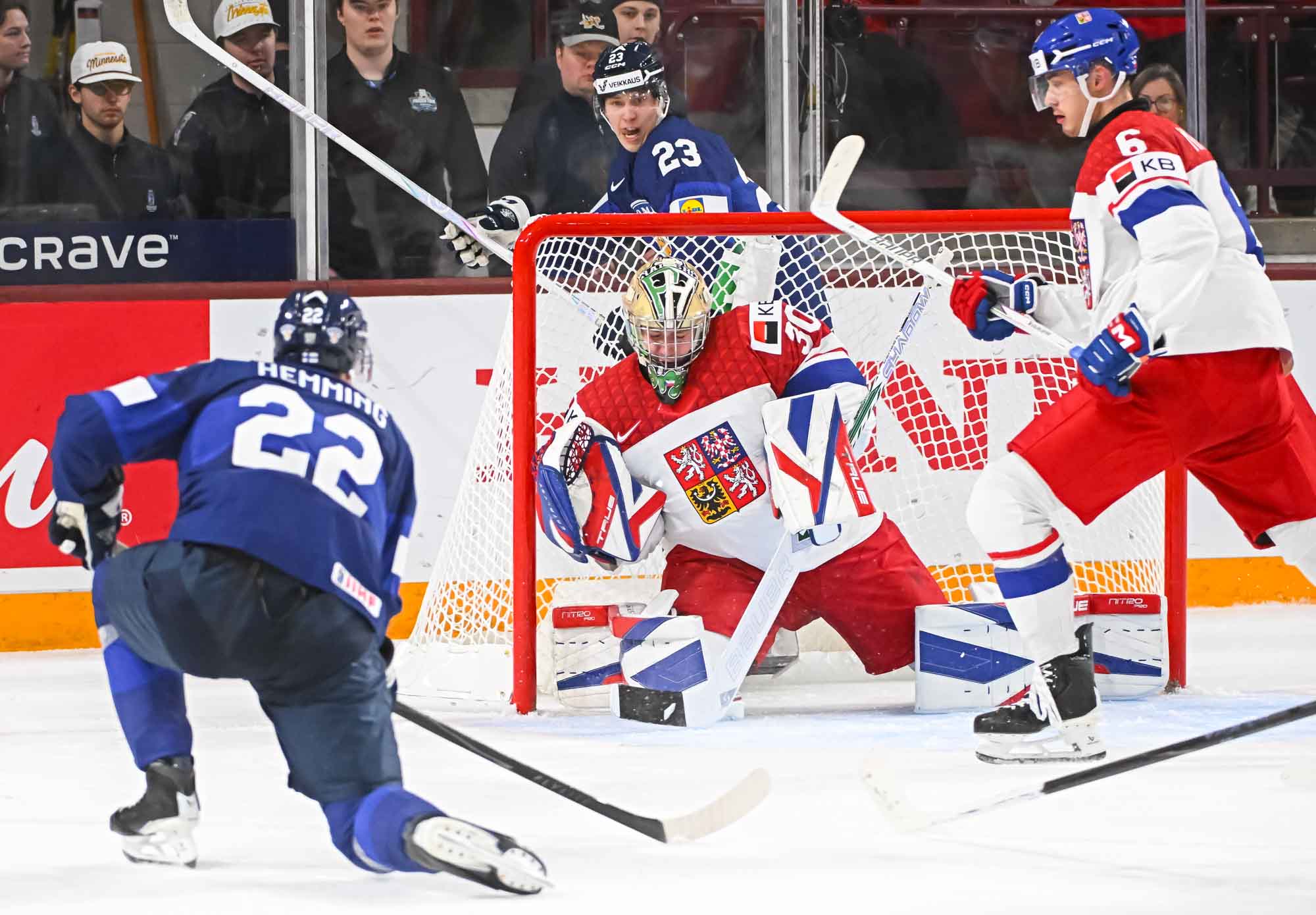Leo Tuuva got to a loose puck first behind the Czech net and found Hemming in front, and Hemming made no mistake with a quick snap shot and only 19.3 seconds remaining in regulation.