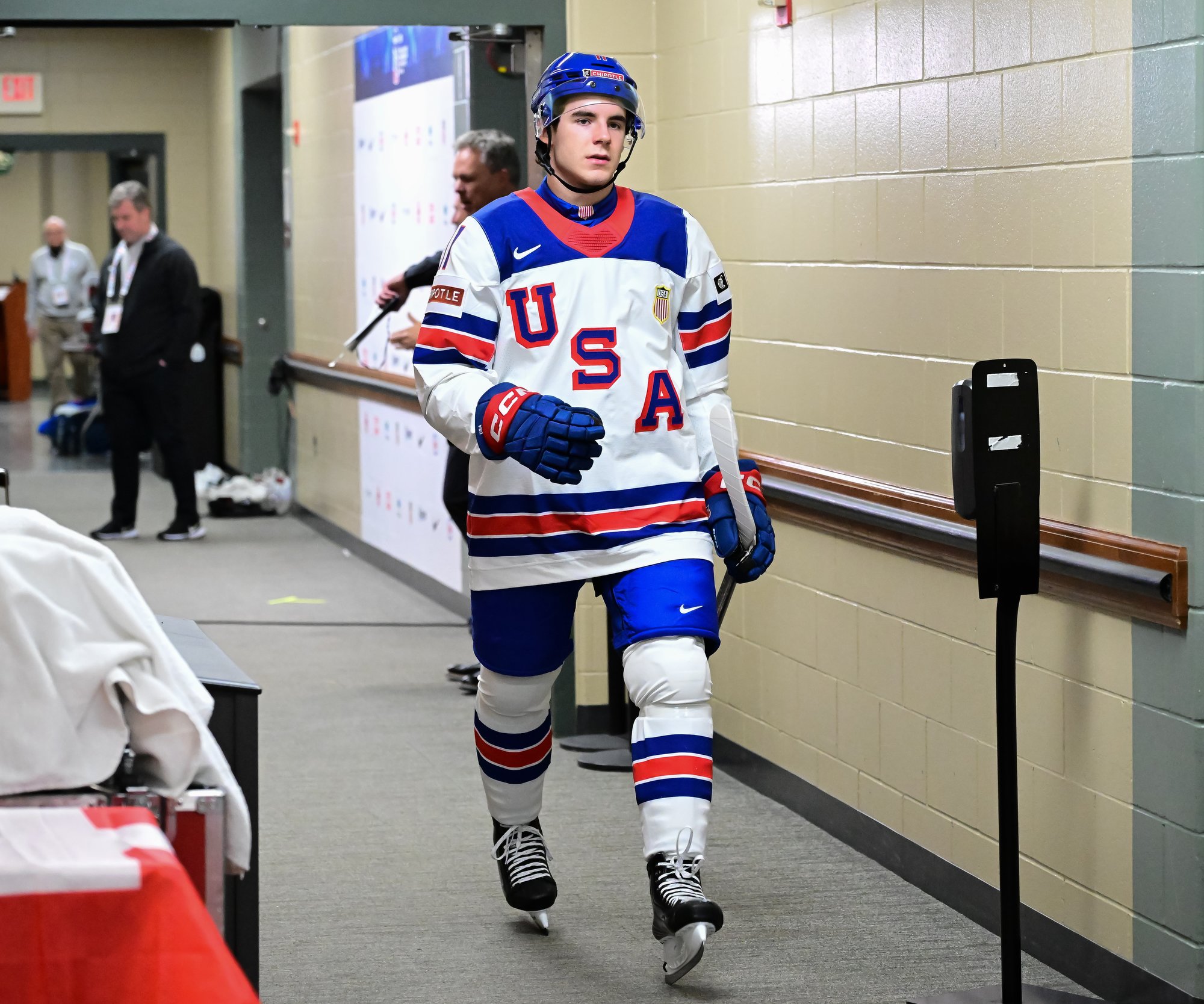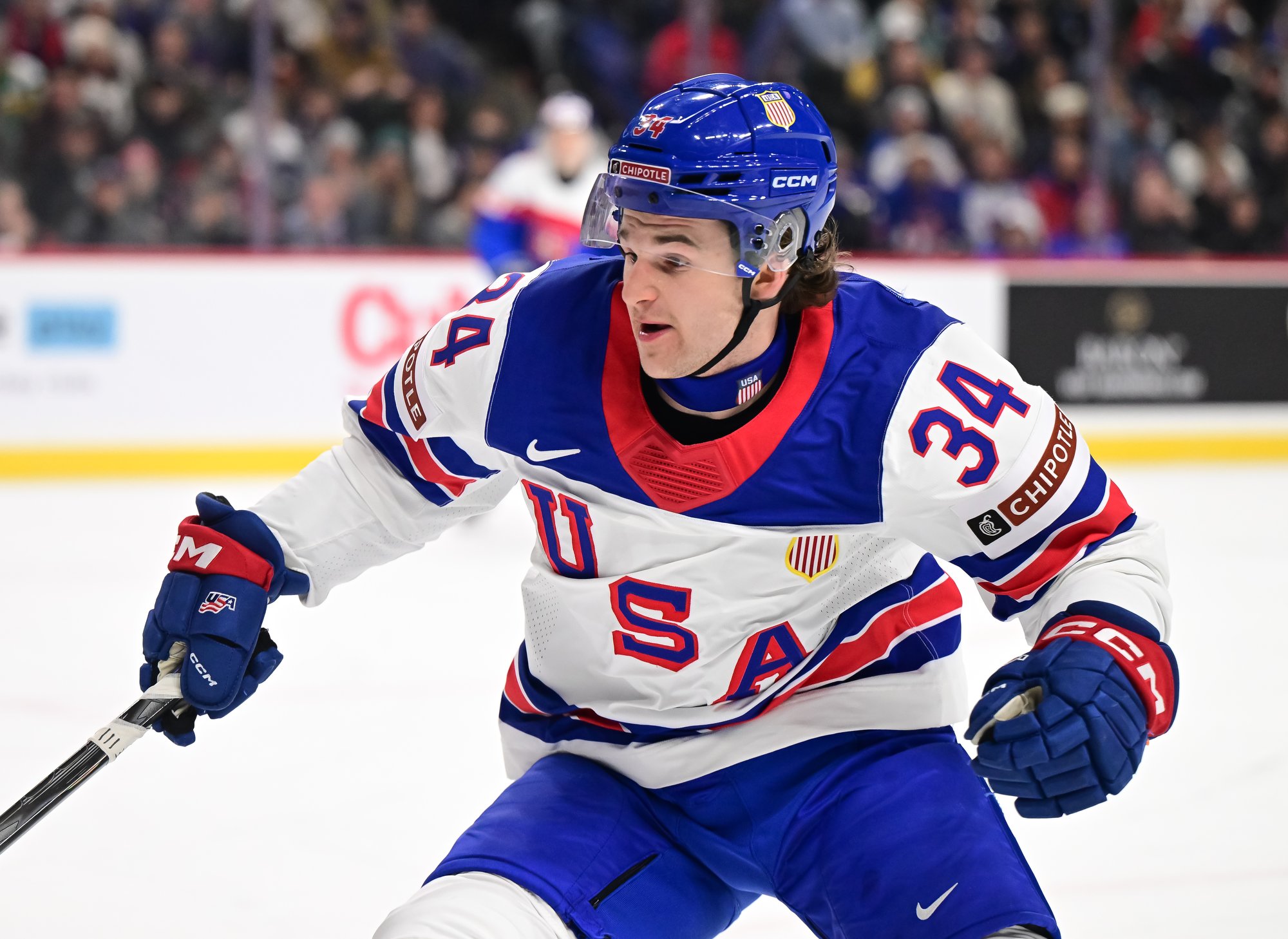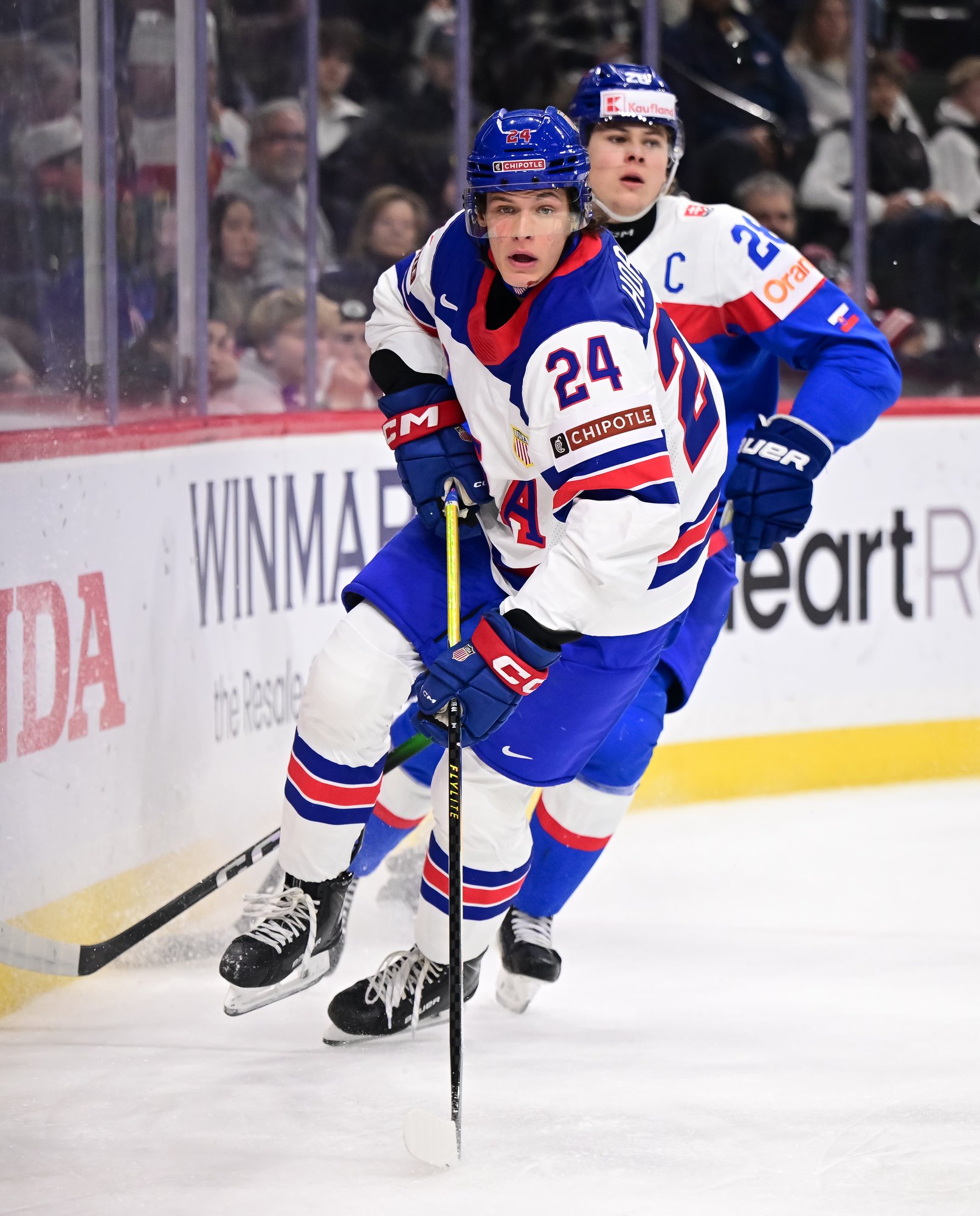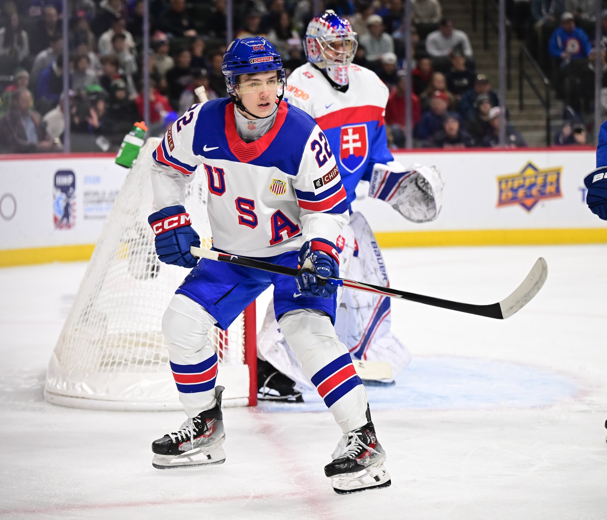 The U.S. played without top defender Cole Hutson, who led the 2025 tournament with 11 points. The Boston University star left the 2-1 win over Switzerland after being struck by a rising shot. In Hutson’s place, Dakoda Rheaume-Mullen slotted back into the lineup, having previously appeared in the 6-3 victory over Germany on Day One, and Hagens wore an “A.” Hutson's absence affected the U.S.'s breakouts and transition game.