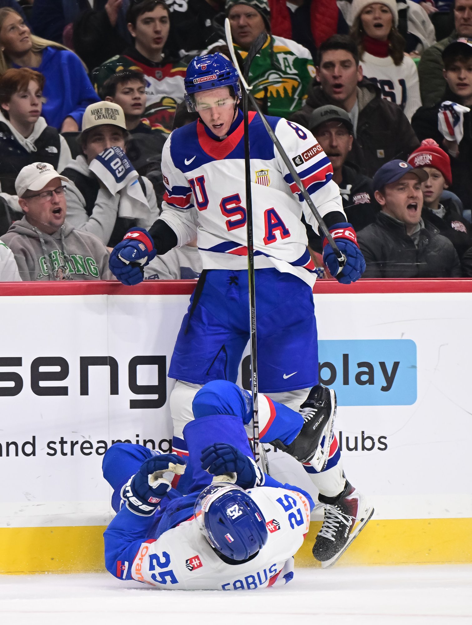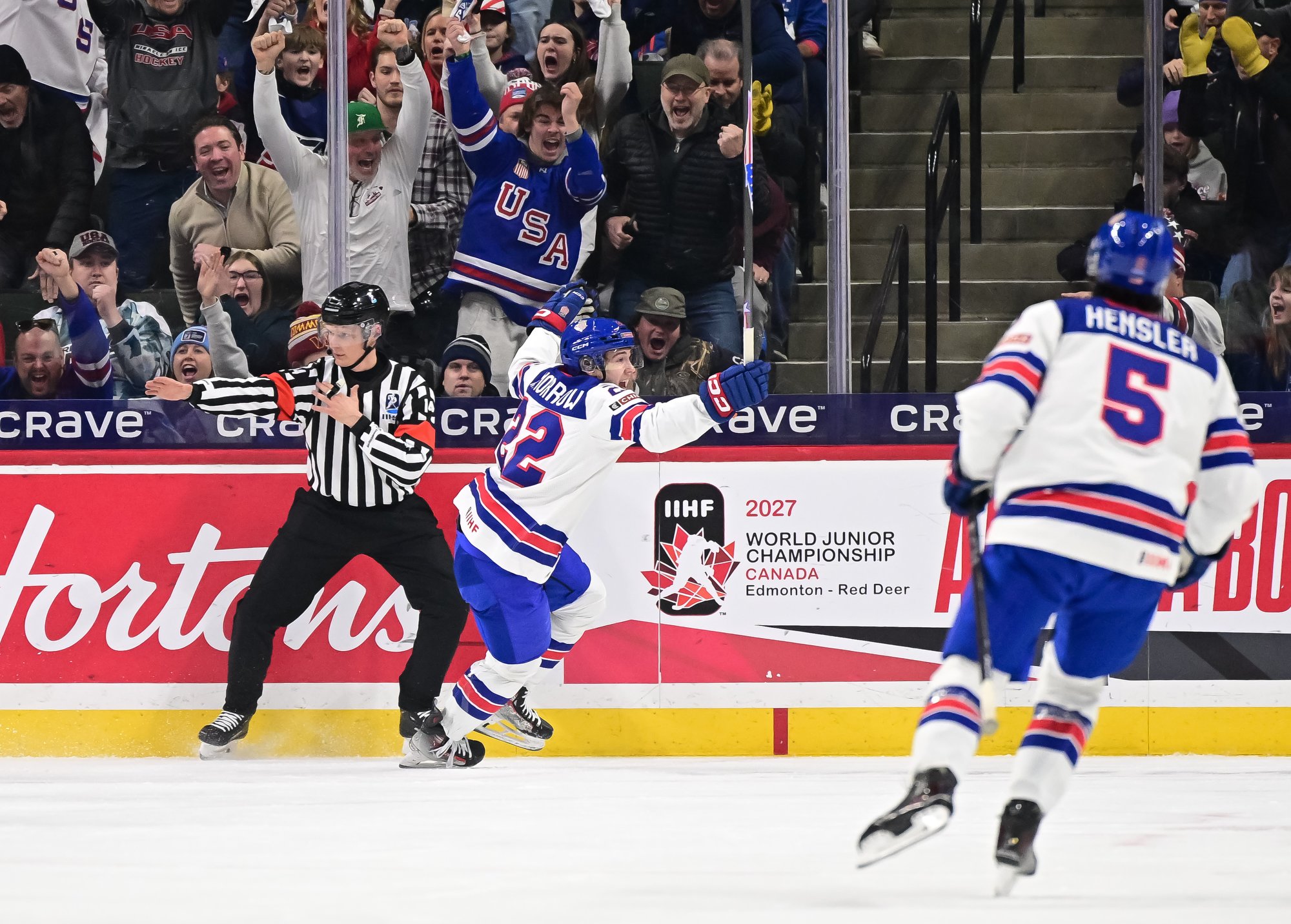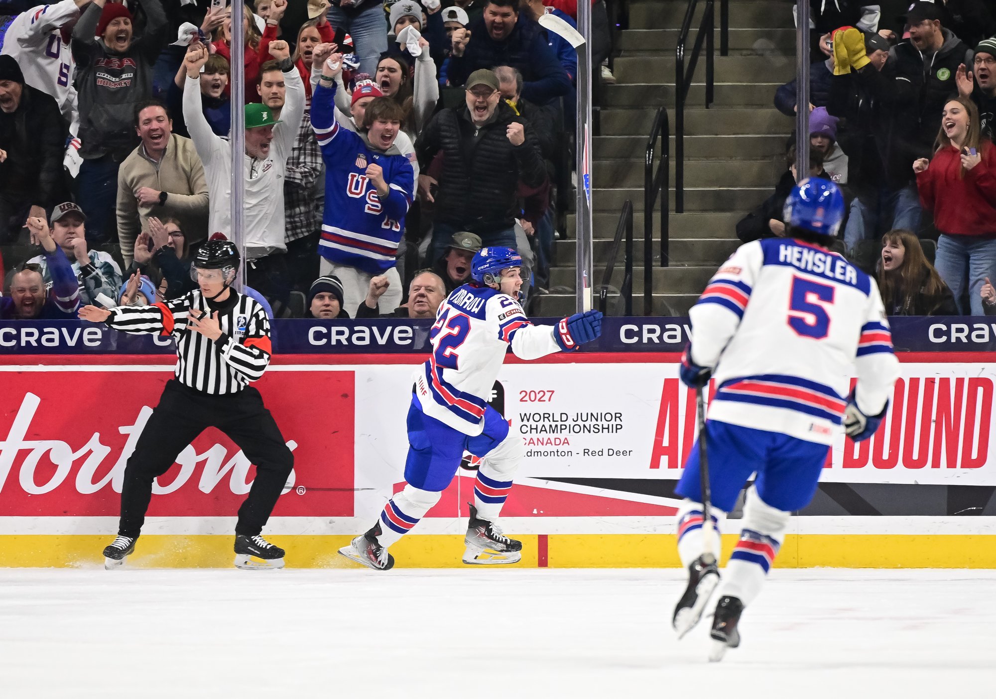 Talk about a thrill a minute. Star forward James Hagens led the way with two goals as the host U.S. fought back to defeat Slovakia 6-5 on Monday. Will Zellers had the eventual winner in the third period – his third of this IIHF World Junior Championship.