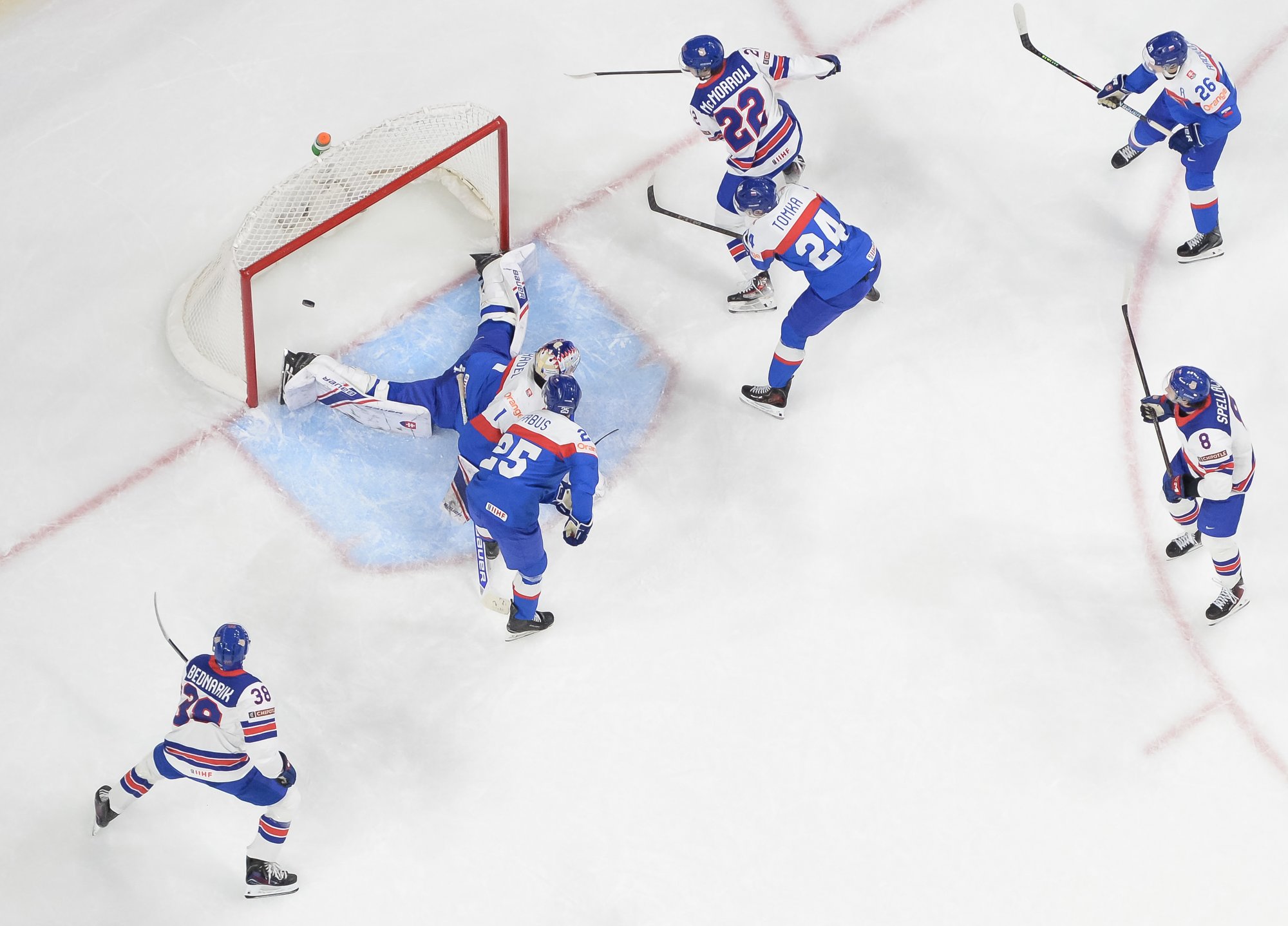 The Slovaks were incensed after Spellacy threw a high hit on Andrej Fabus in the Slovak zone. But they couldn't convert on the ensuing power play. They pulled their goalie and got within one goal courtesy of Chrenko at 18:06, but no closer.
