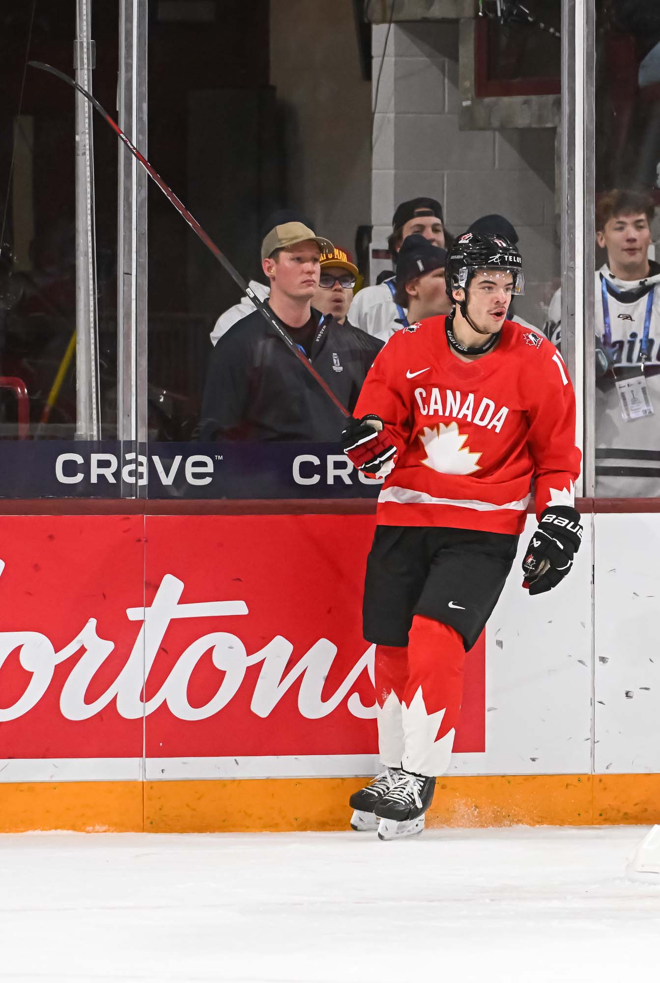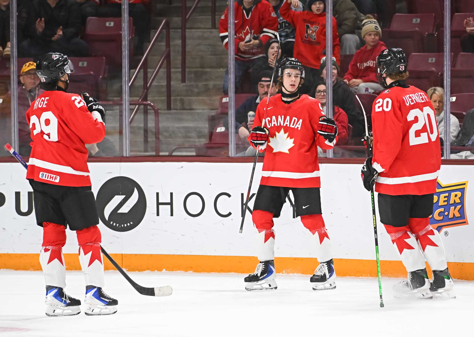 Shots favoured Canada, 49-13. The winners got a hat trick from Gavin McKenna and three assists from Brady Martin. In all, 14 skaters had at least one point.