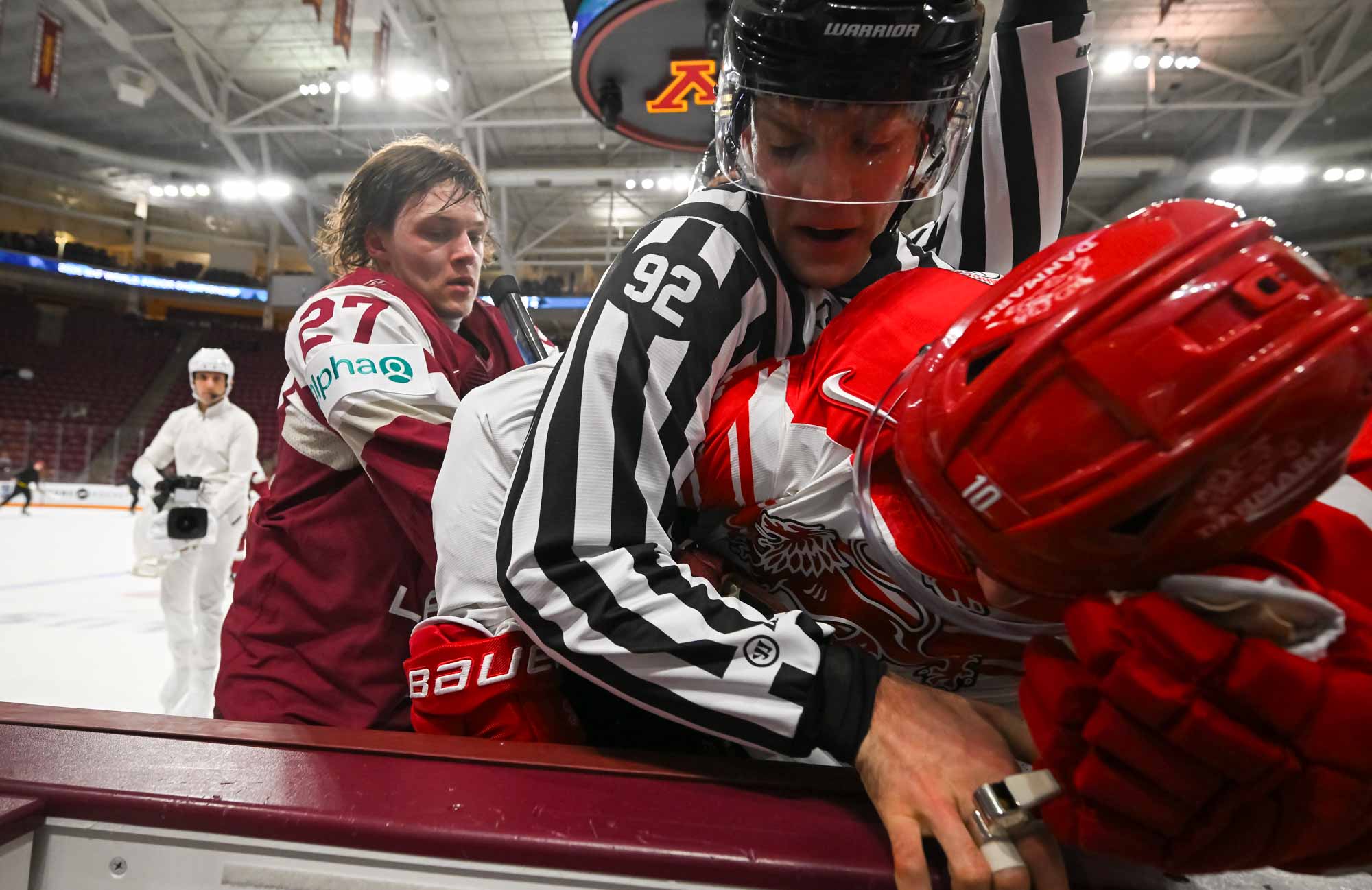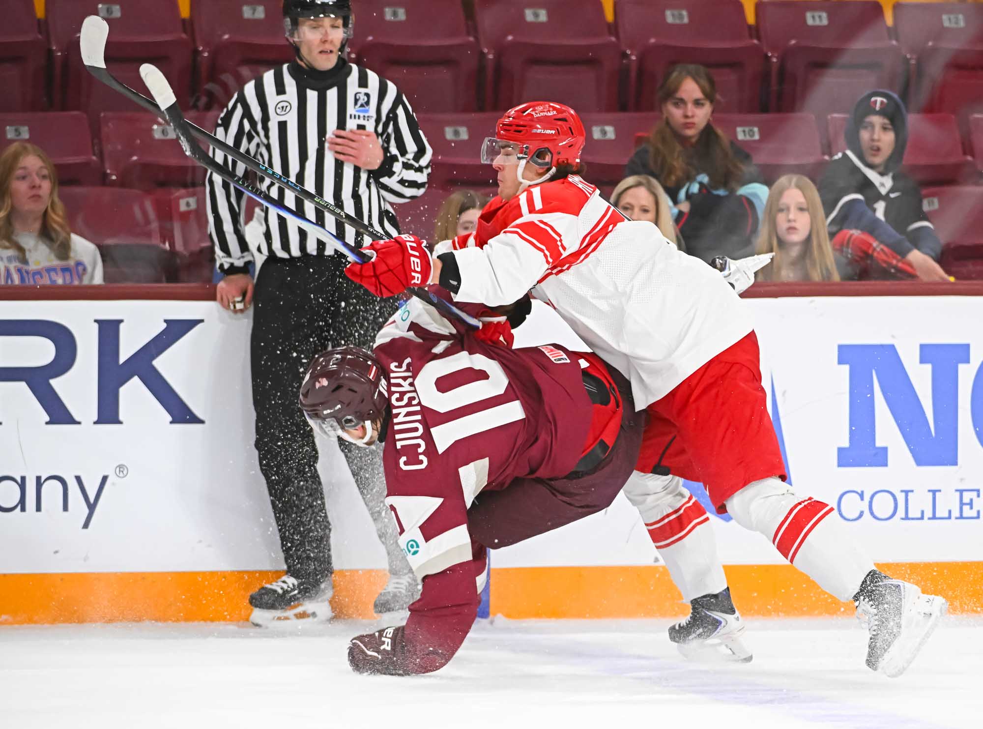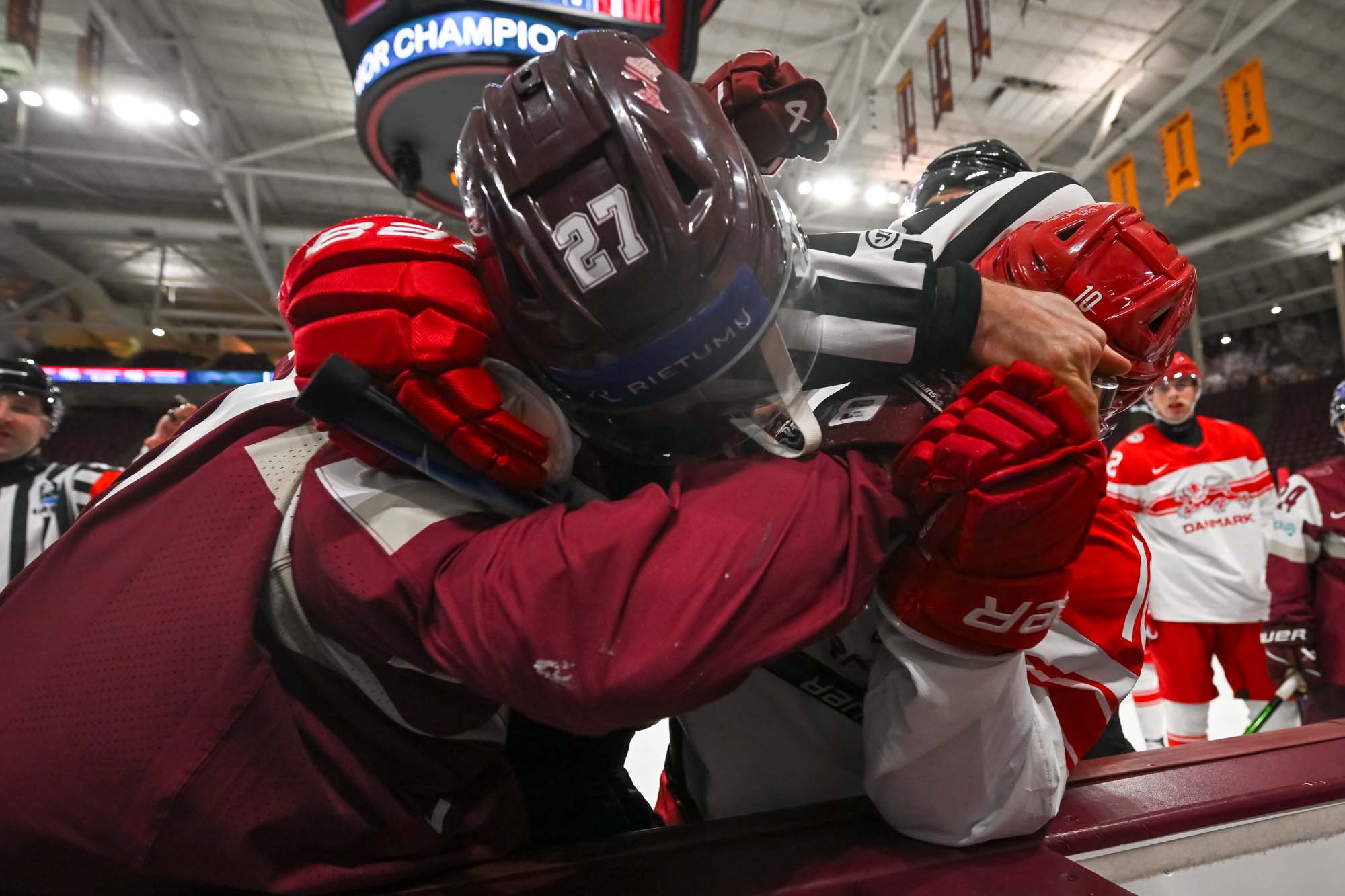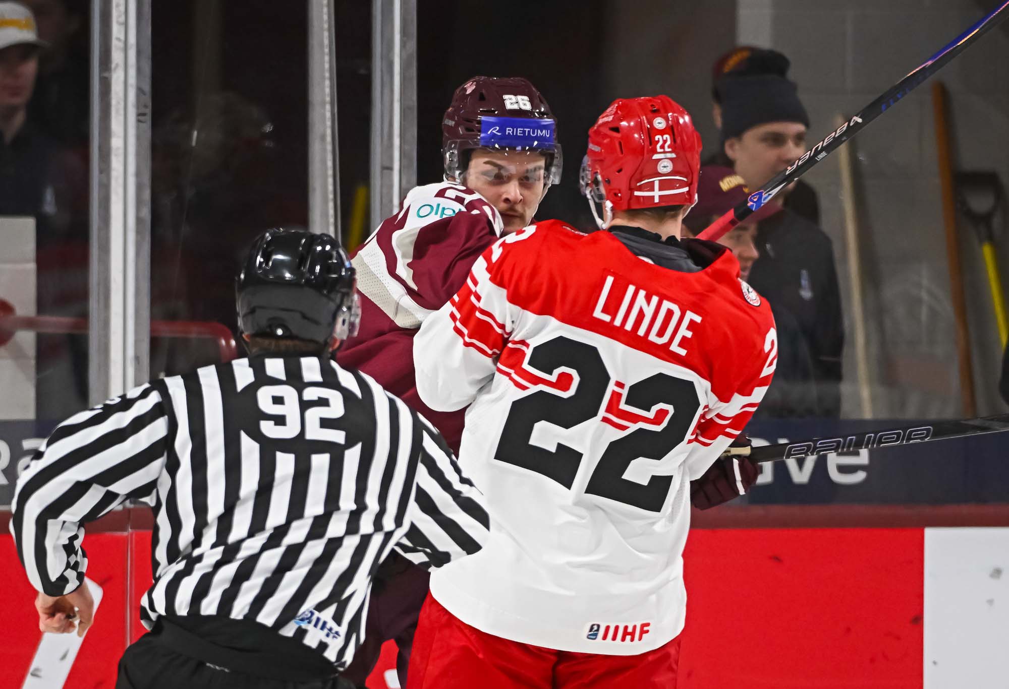 Coach Martin Struzinski pulled Wilde with plenty of time remaining, and the Danes got one goal with the extra attacker on a slapshot from captain Anton Linde at 18:43. However, Kristers Ansons scored an empty netter with just 0.3 seconds remaining to close out the scoring.