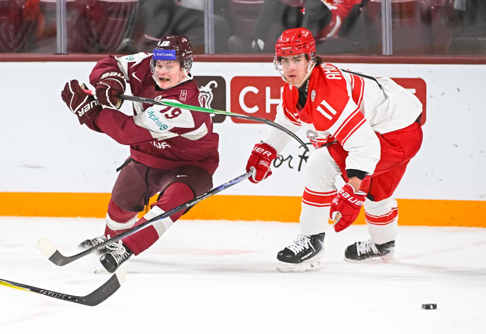Kristers Ansons had a goal and three assists for Latvia while William Bundgaard had a goal and two assists for the Danes, who were outshot 42-12.