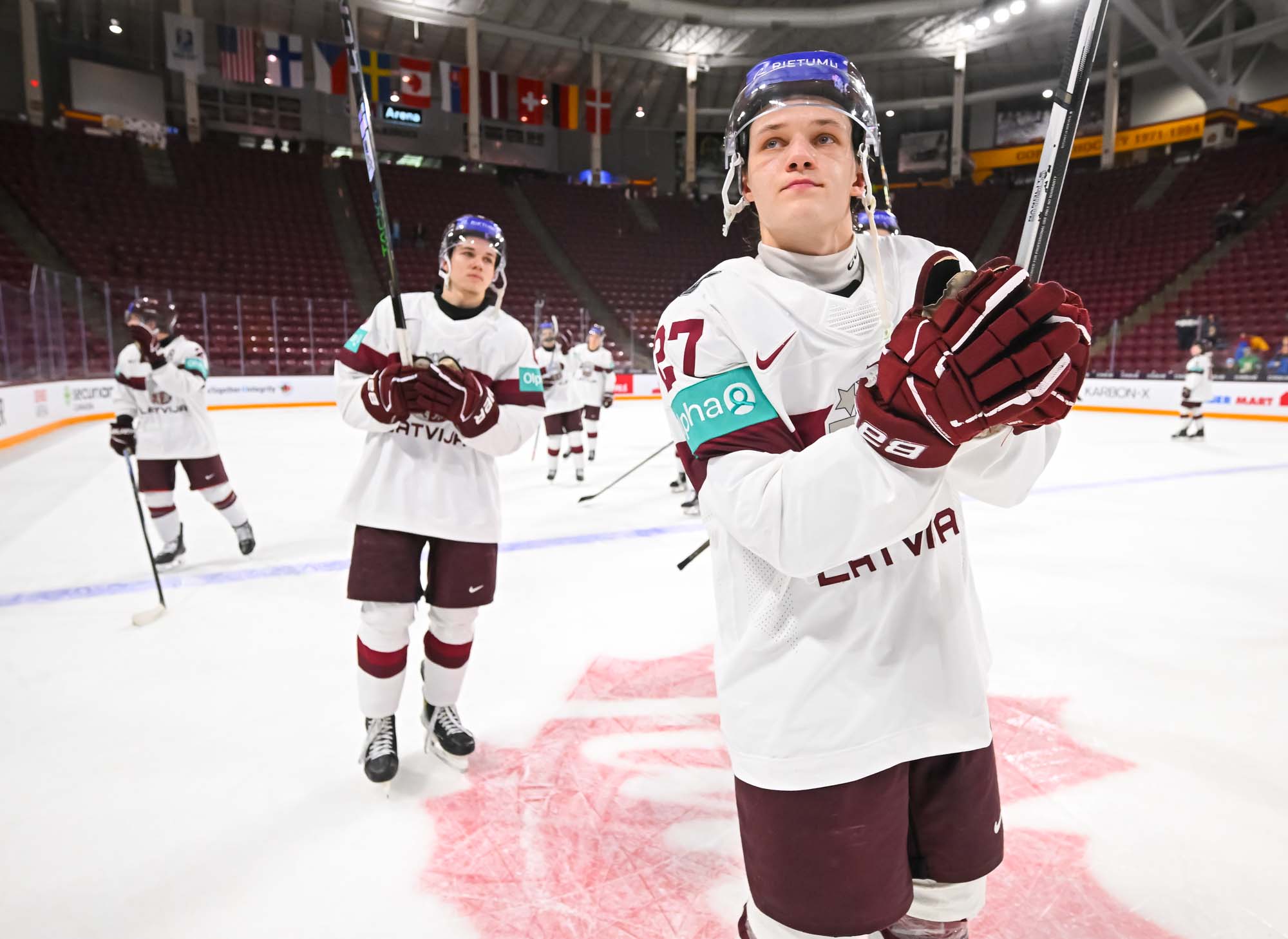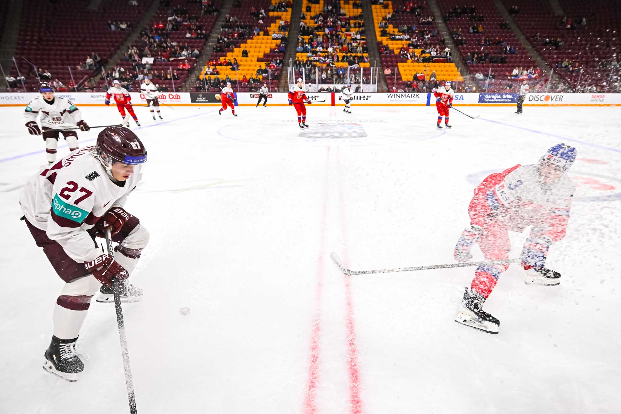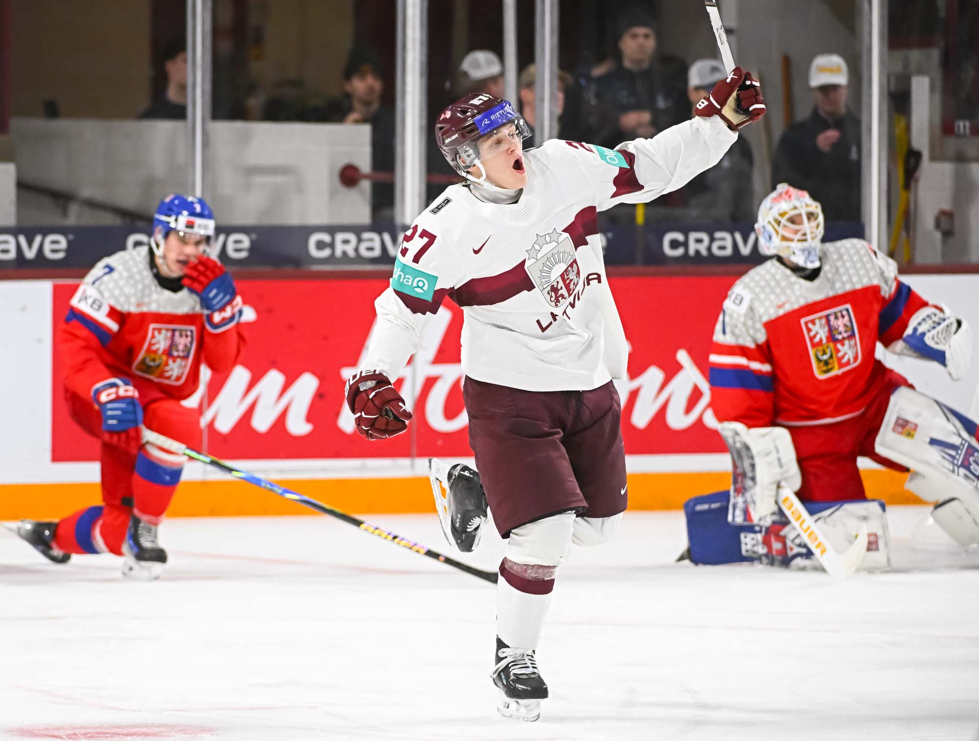 Like Drancak, Latvia’s Martins Klaucans had the goalie beaten moments later but hit the post. Maurins held down the fort at the other end during a late-period Czech push.
