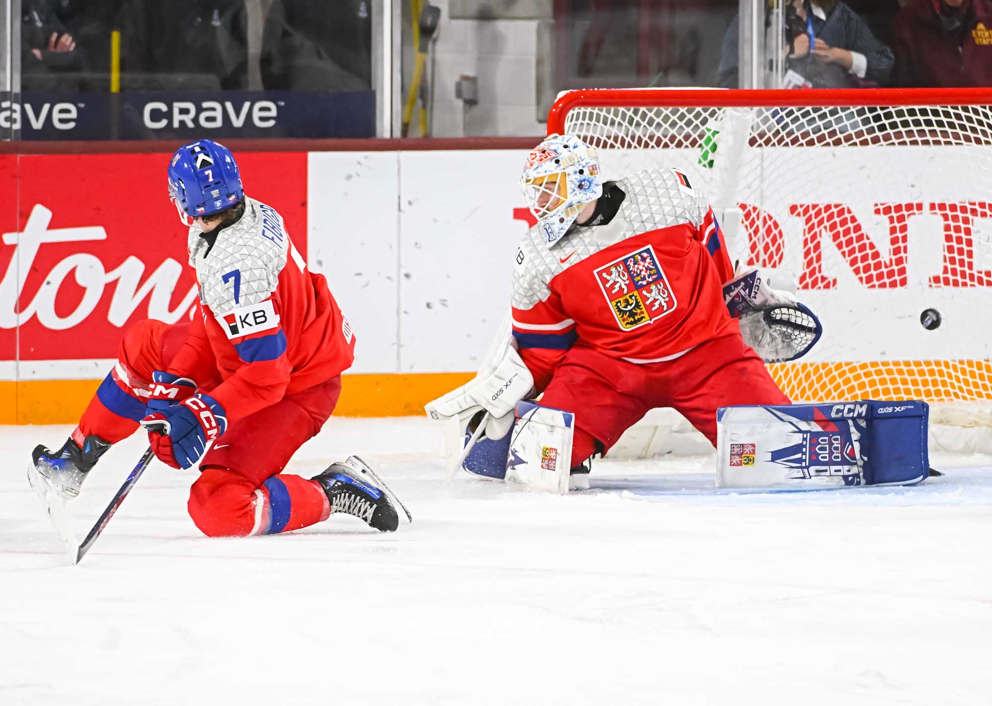 Seconds later, forward Samuel Drancak – newly inserted into the Czech lineup – almost tied it up, but his shot off the rush rang off the post.