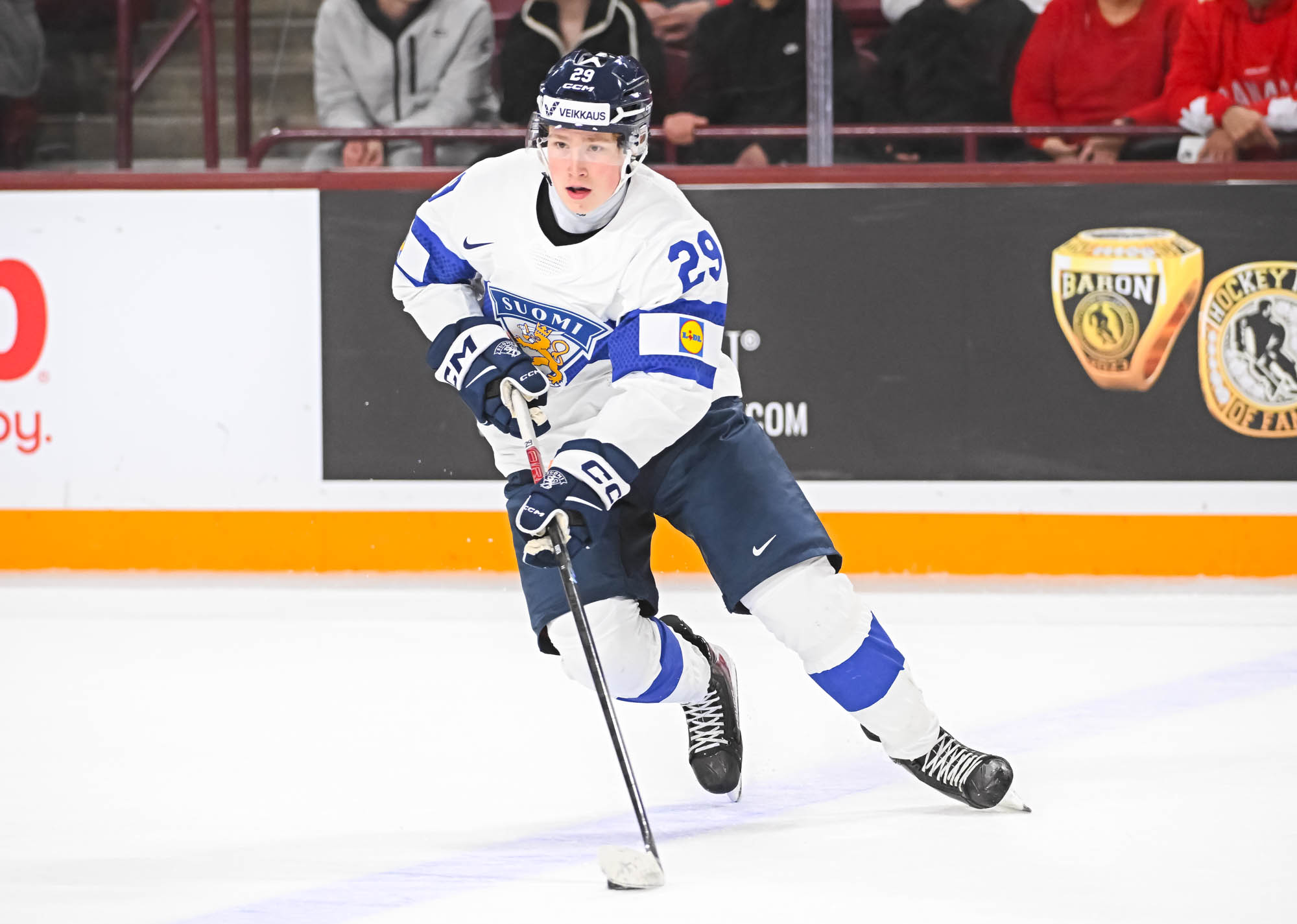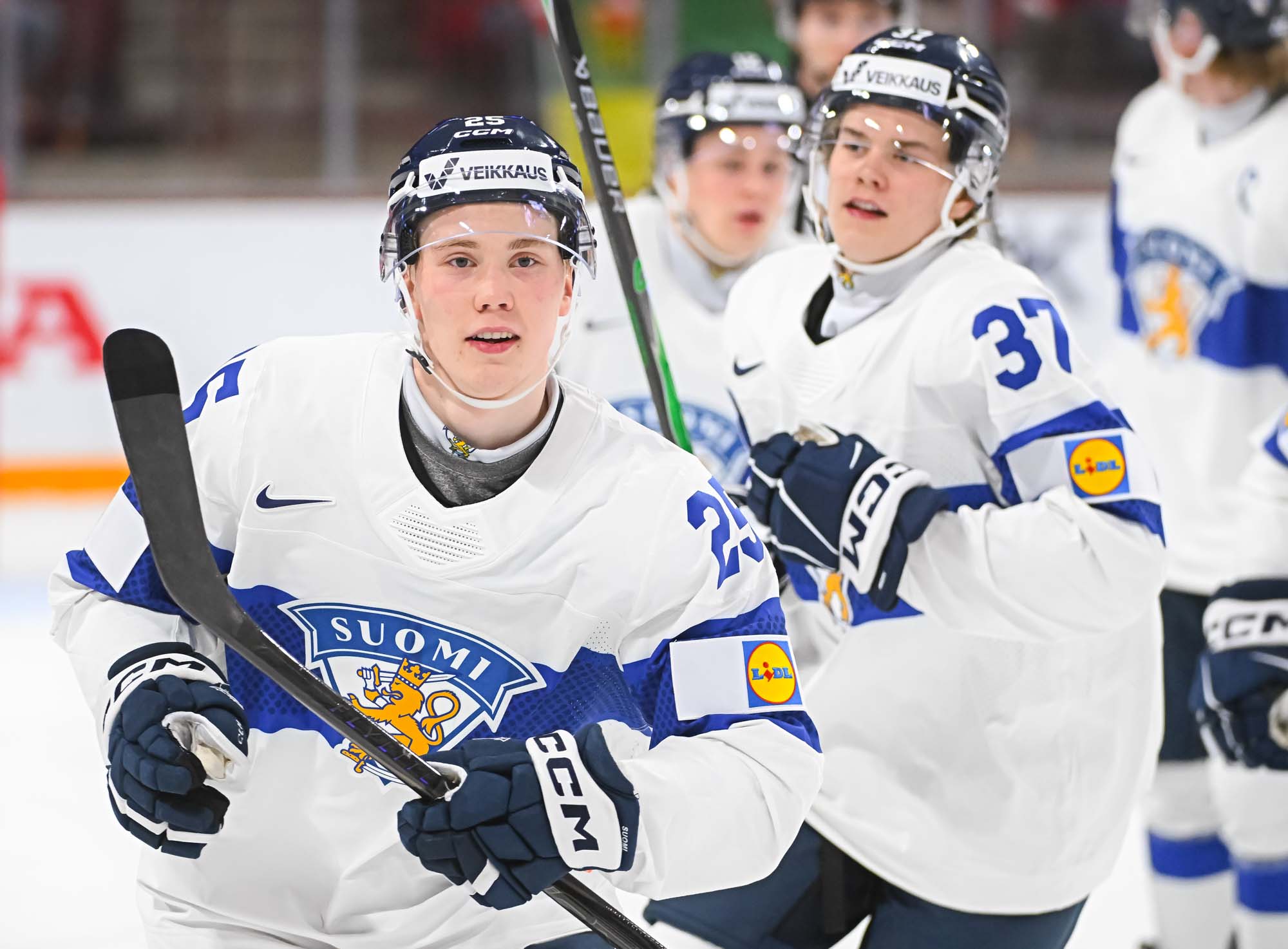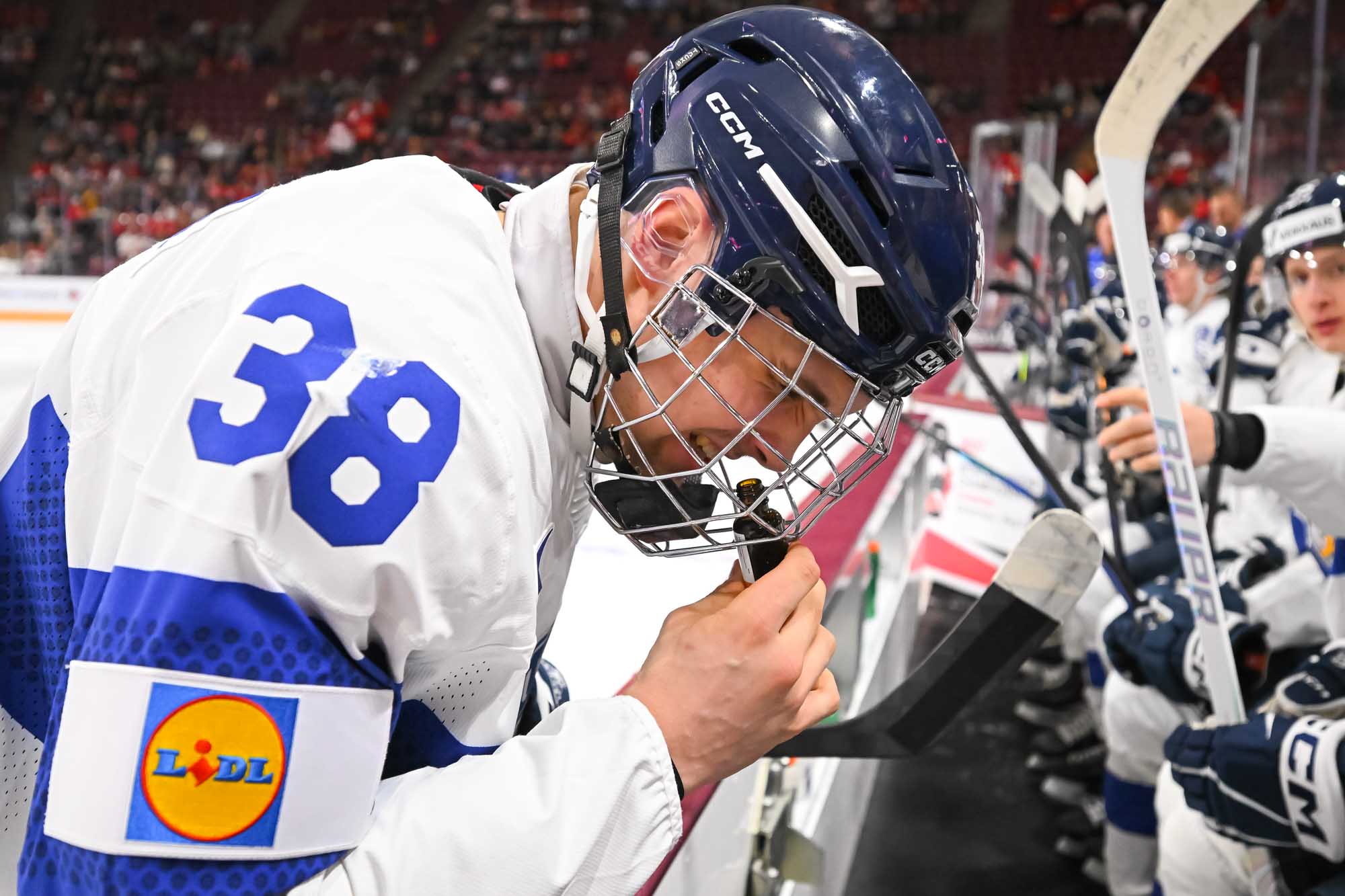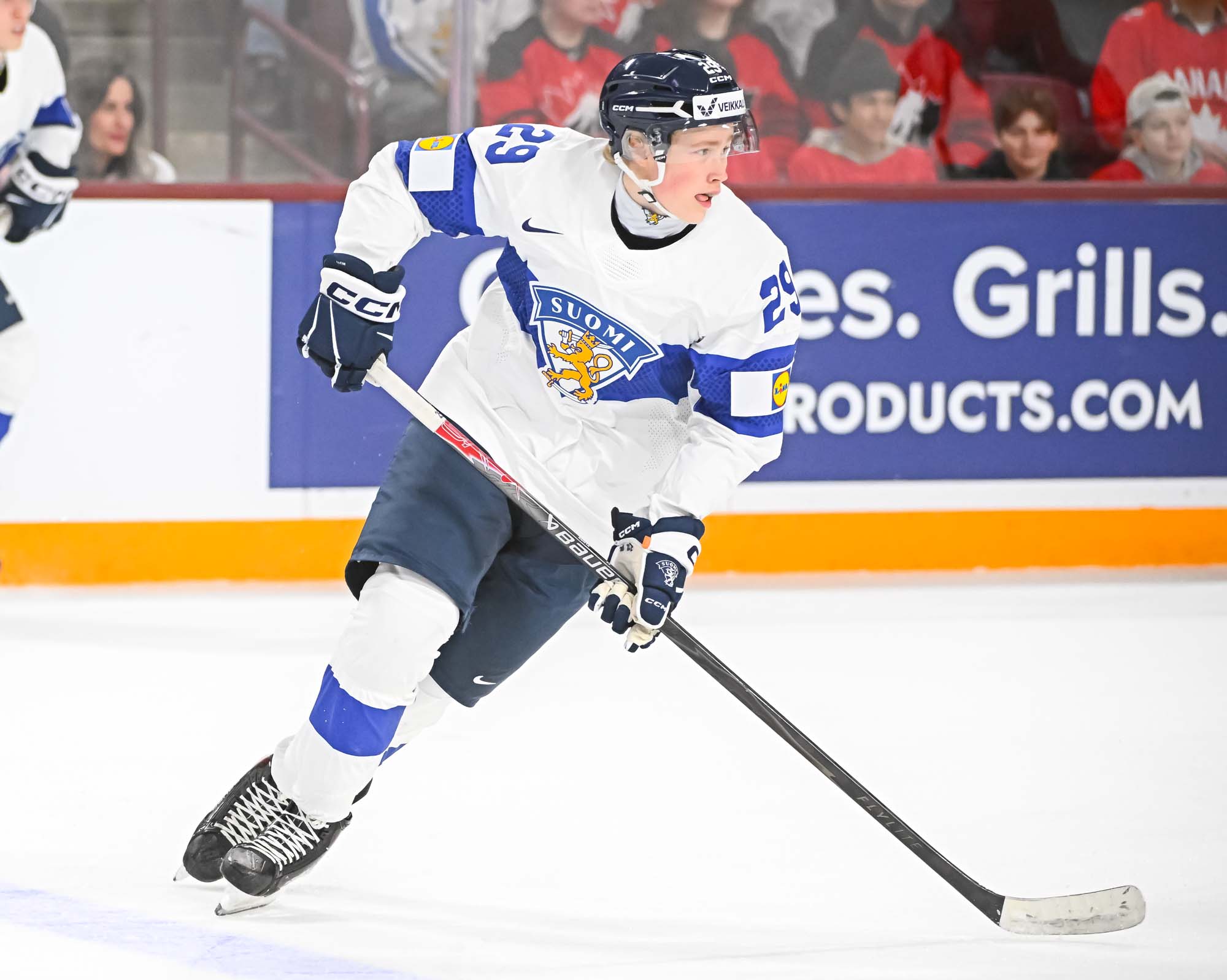 Julius Miettinen – wearing Finland’s “C” with regular captain Aron Kiviharju out (although expected to return versus the U.S.) – answered back at 3:54. He skated to the net and accepted a slick pass from Vanhanen, his partner in crime with the WHL’s Everett Silvertips, before roofing the puck home.