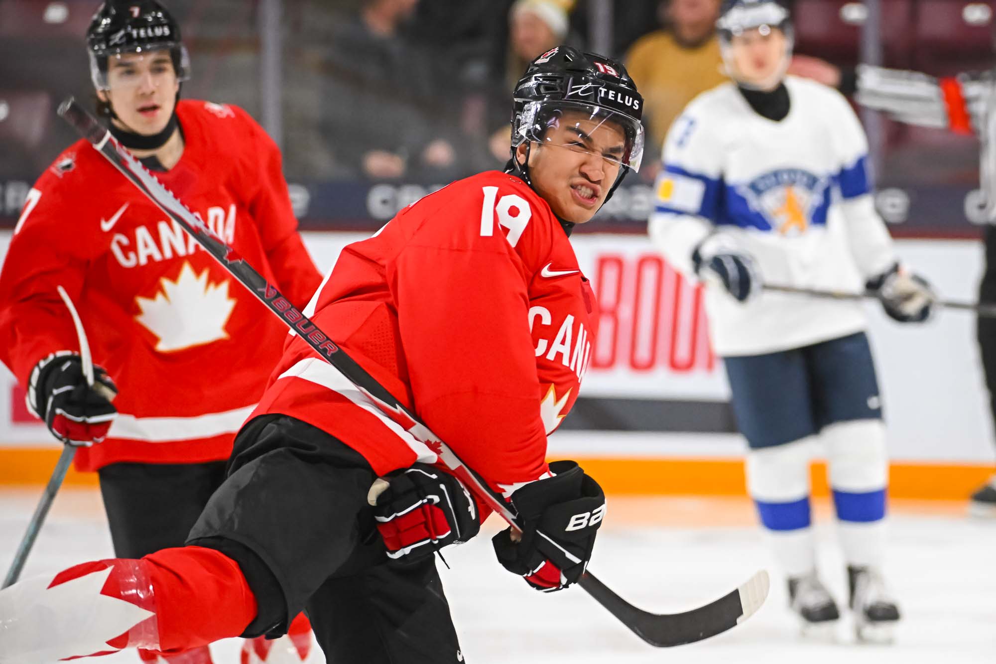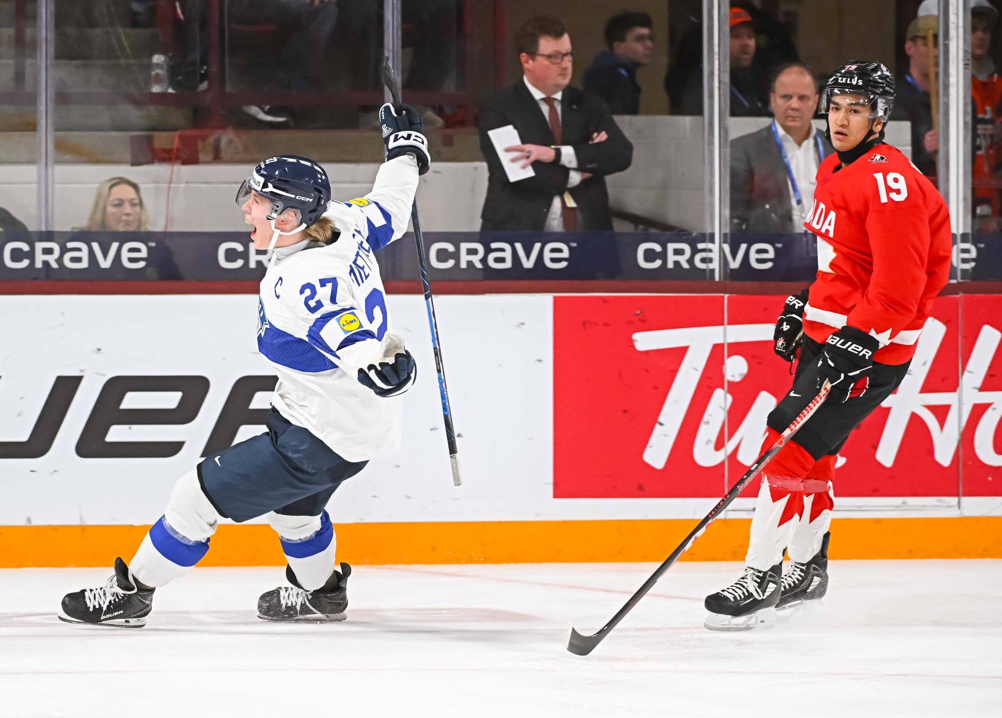 Things settled down a bit in the middle frame. Canada had the better of the play as the Finns wasted time in the sin bin. On the first Canadian power play, Hage dinged one off the post. But during the second one, Tij Iginla scored on a breakaway at 9:35 to make it 4-3.