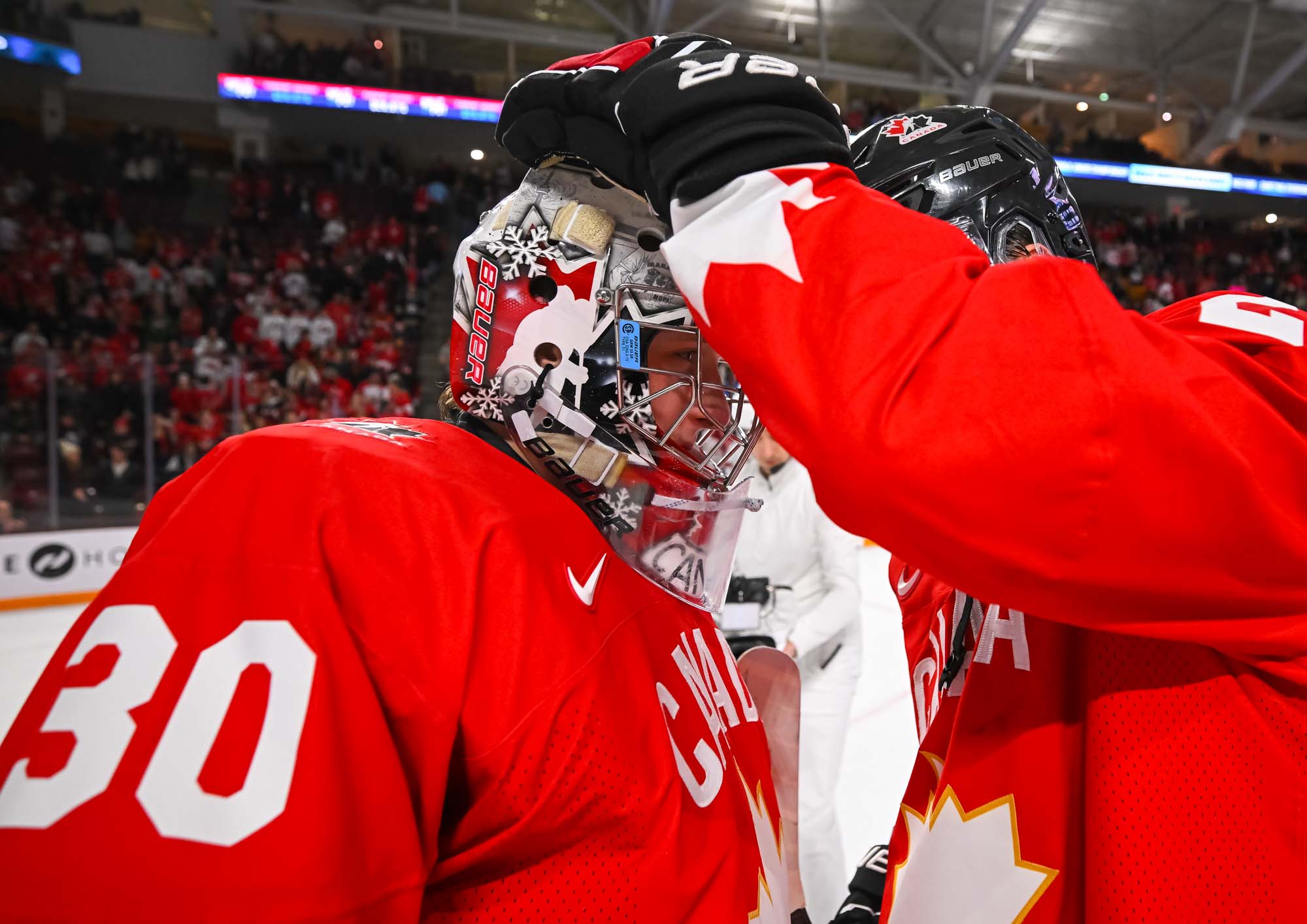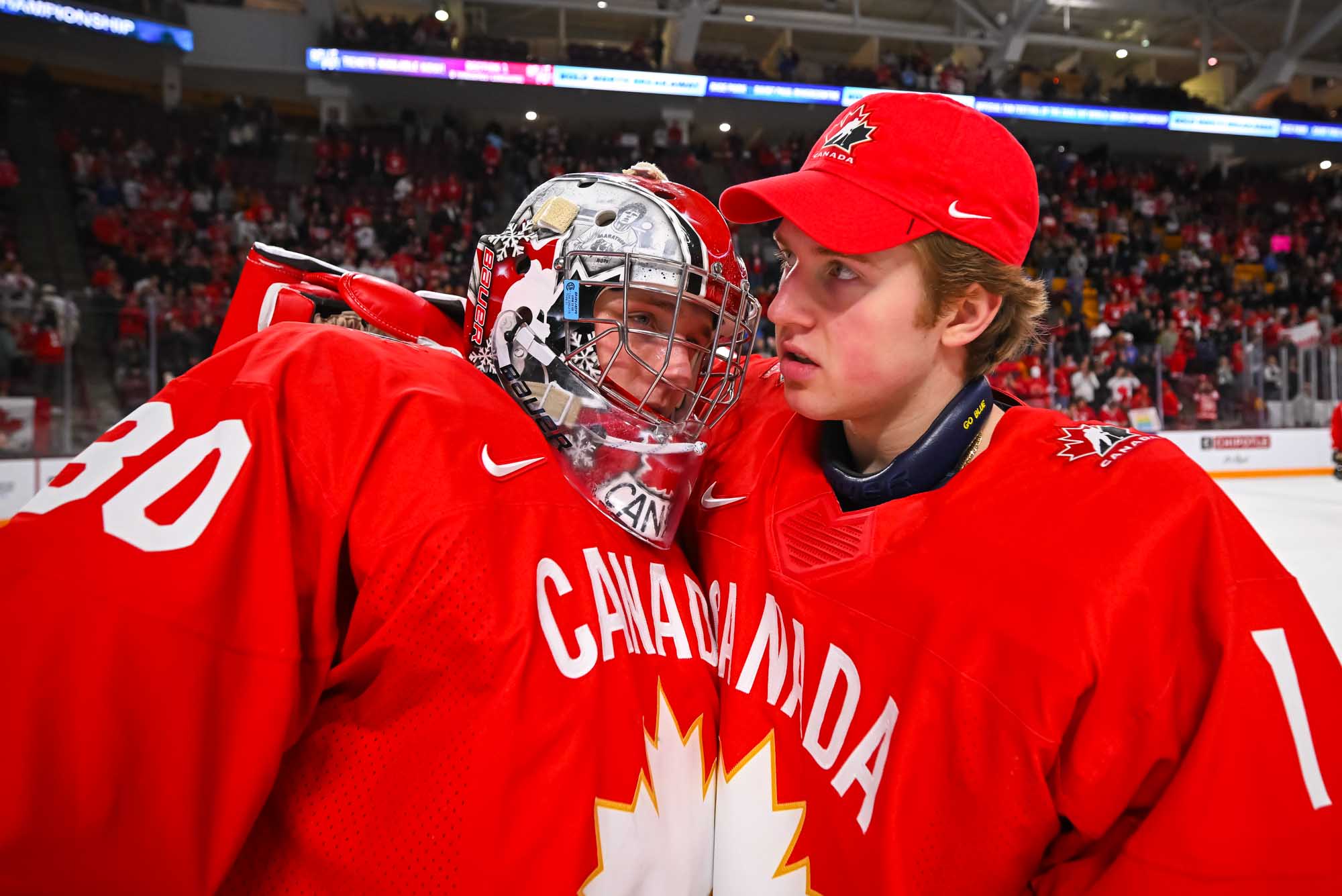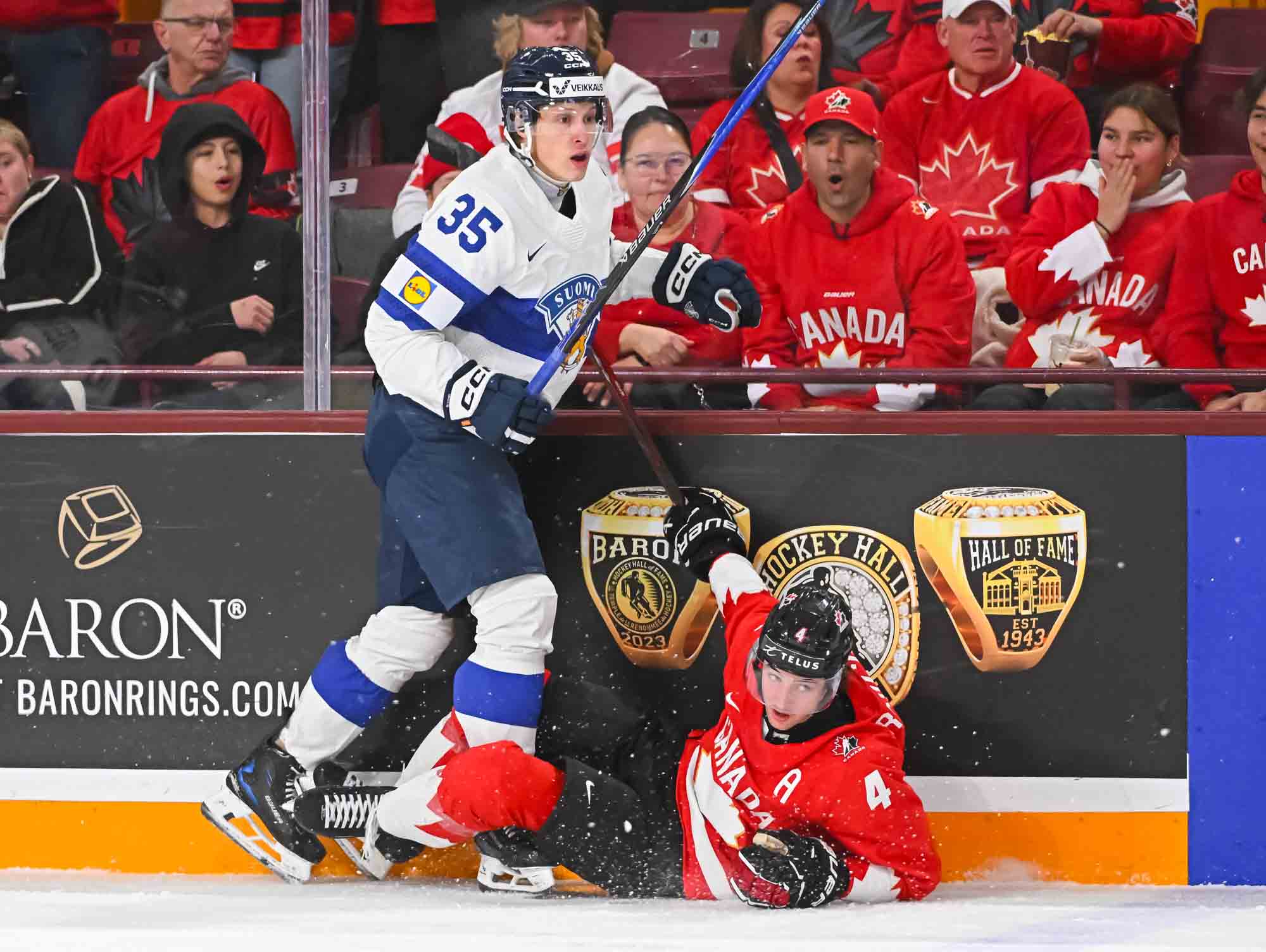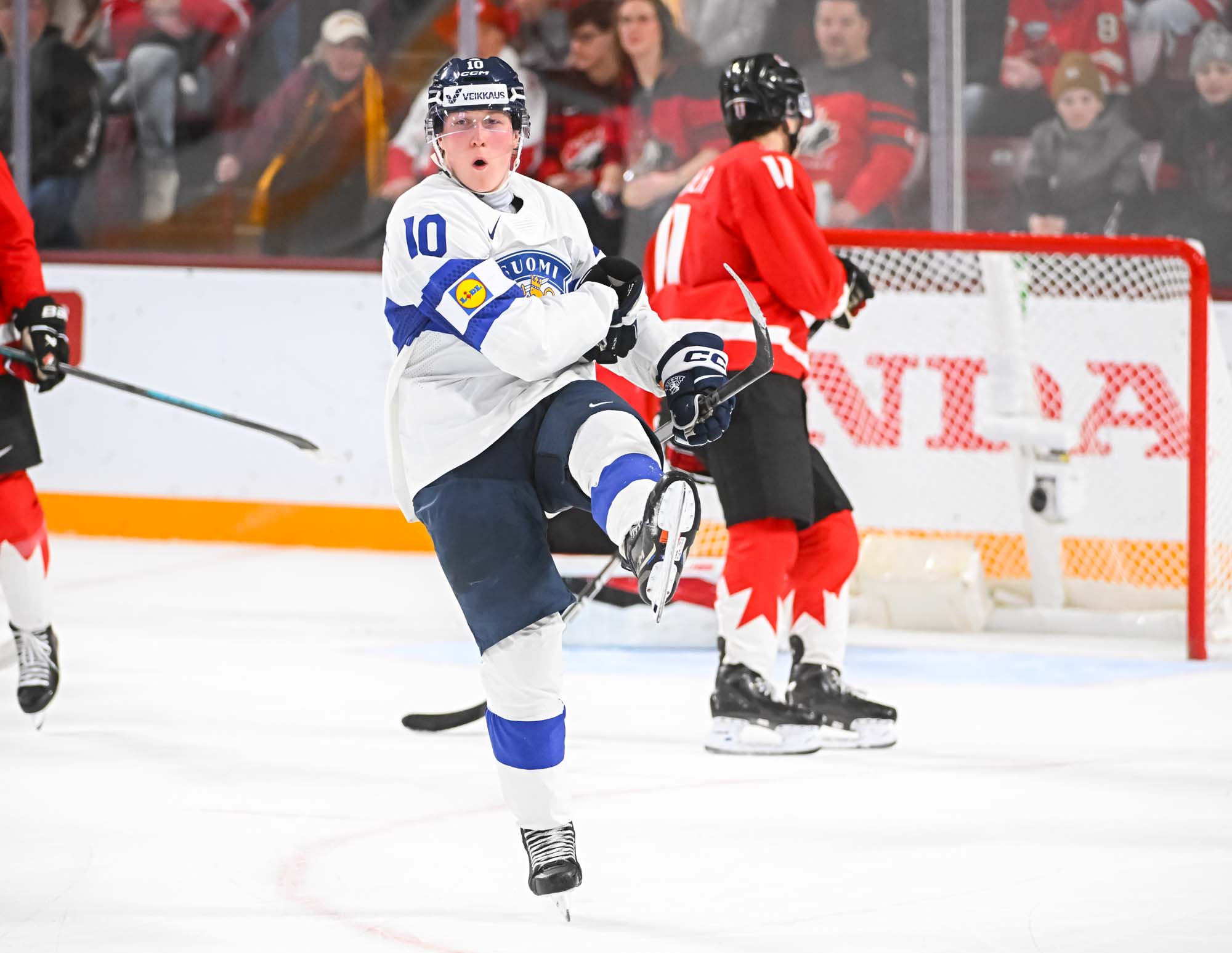 It felt hard to believe that this was a showdown between Finland’s Petteri Rimpinen – last year’s Best Goalie en route to the silver medal – and Canada’s Carter George, who led the 2025 tournament with two shutouts. Why? The game started off with virtually every shot going in. It was relentless goal-trading.