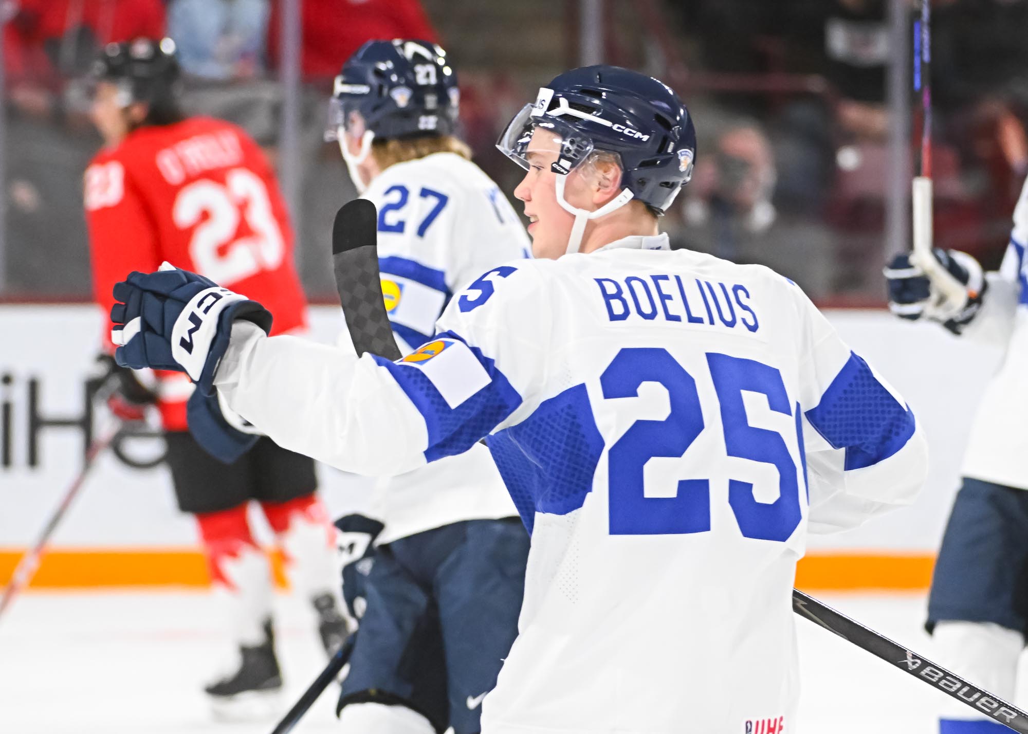 Once again, Finland had an answer. On a 5-on-4, Lasse Boelius’s centre point blast sailed past George to make it 3-3 at 12:59. Hunter challenged the play for goaltender interference, but the play stood upon review.