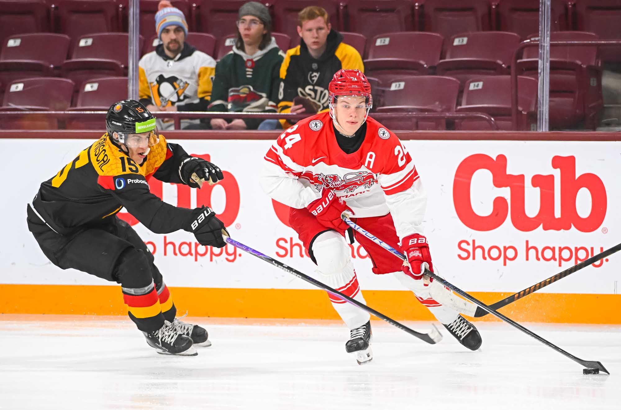 That all changed early in the third when the Danes ran into penalty trouble. Germany had a 5-on-3 for 1:27 and took advantage, making it a two-goal game again at 5:04.Willhoft circled the slot, cut in, and roofed a nice shot over Wilde's glove.