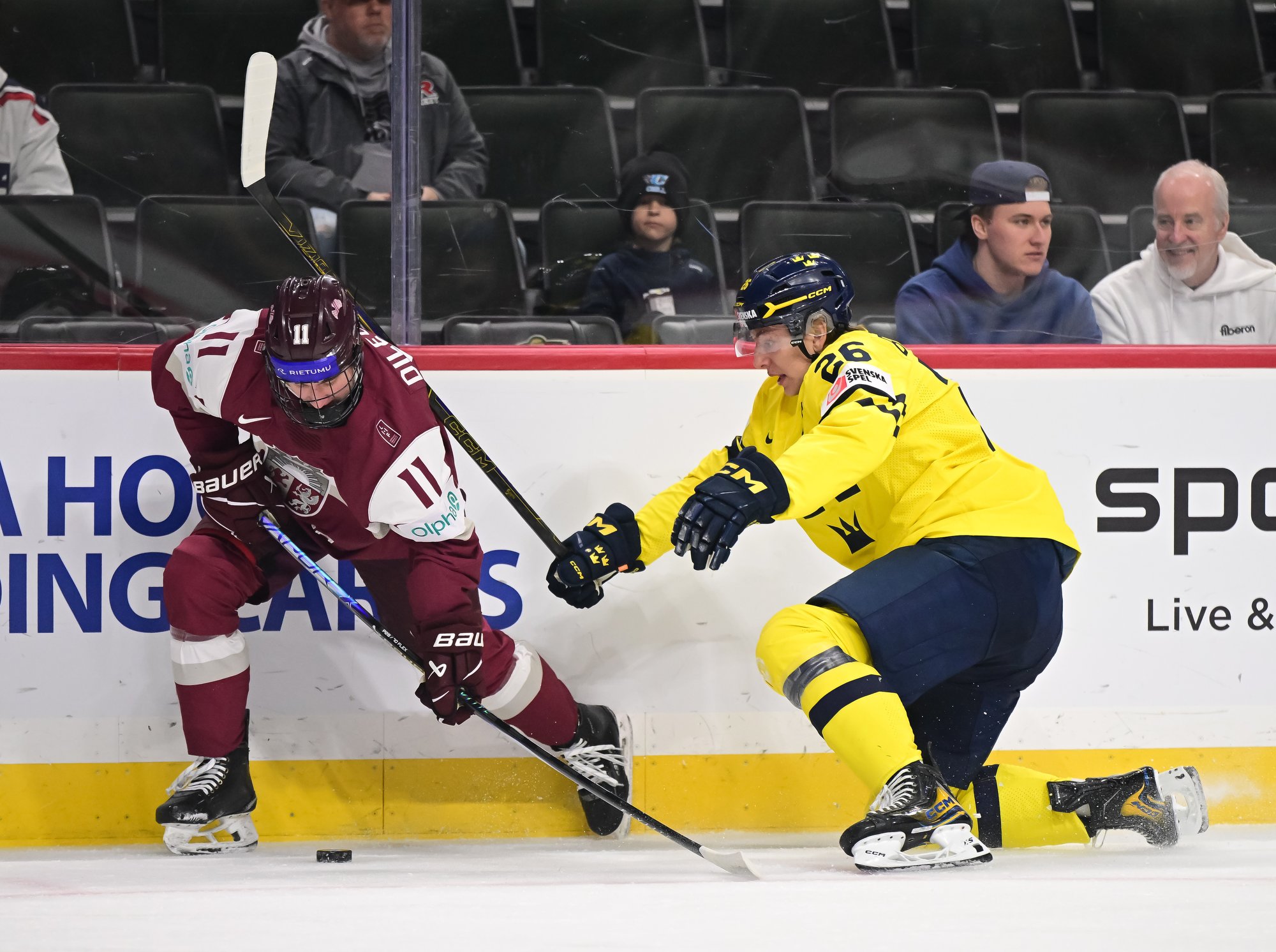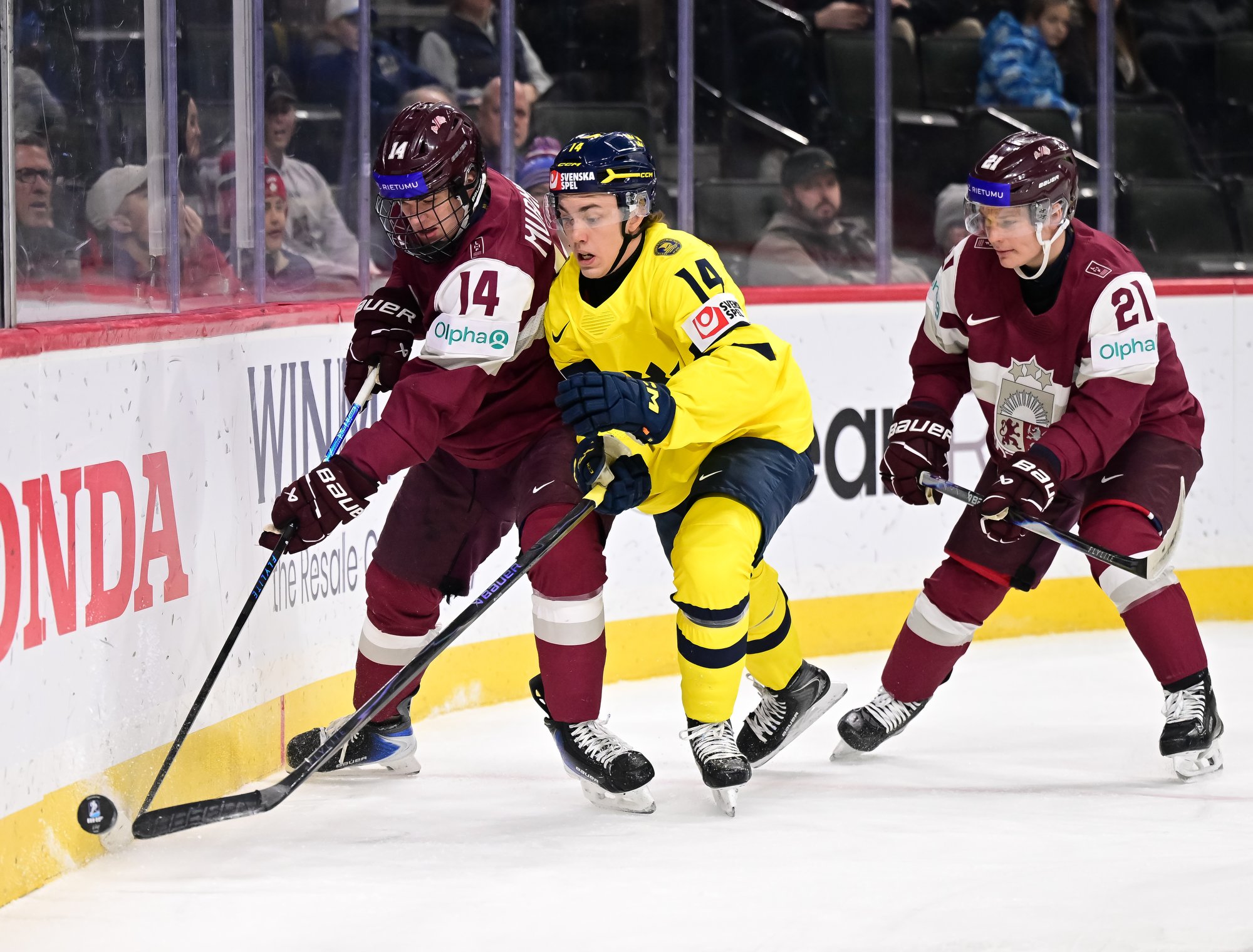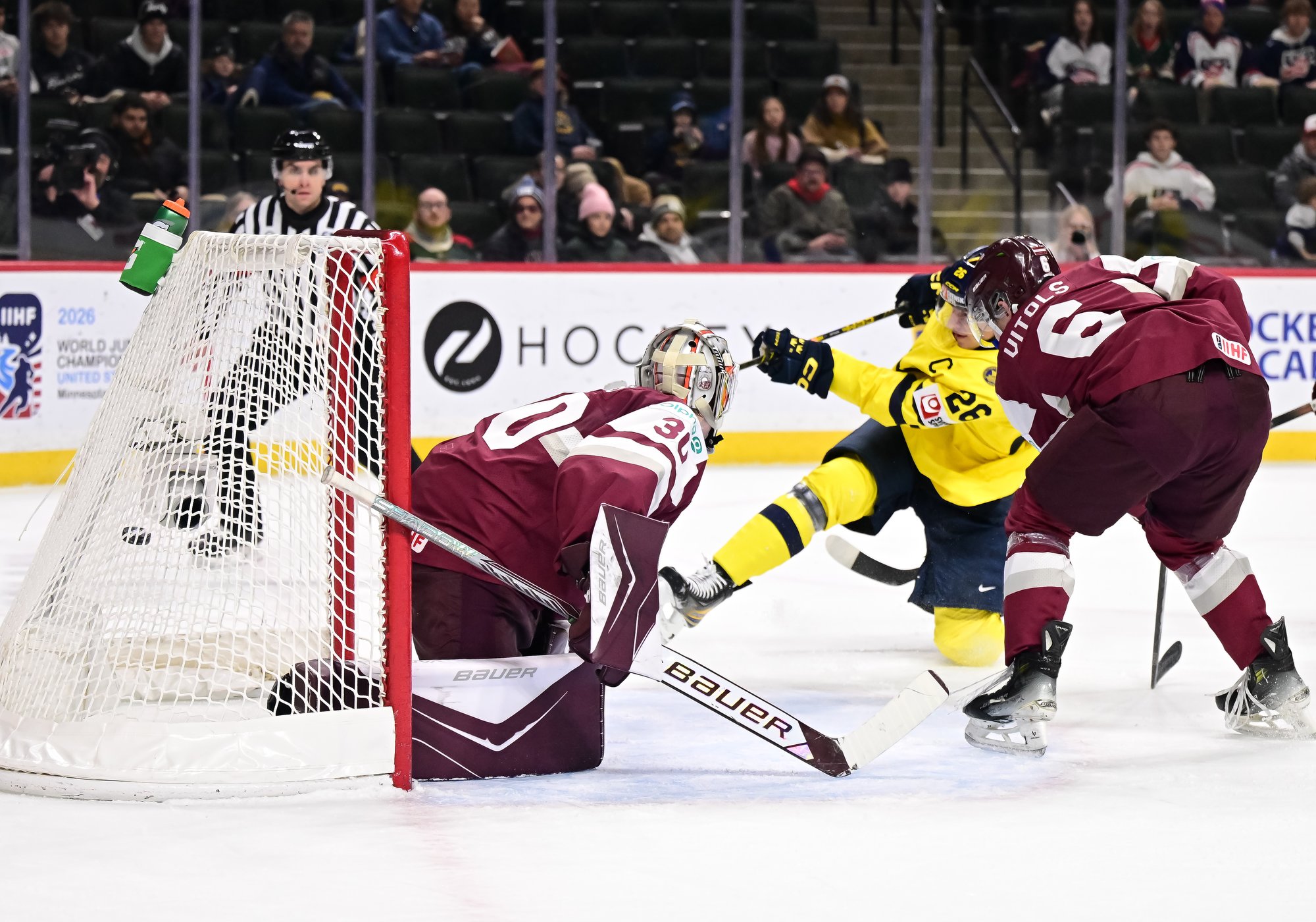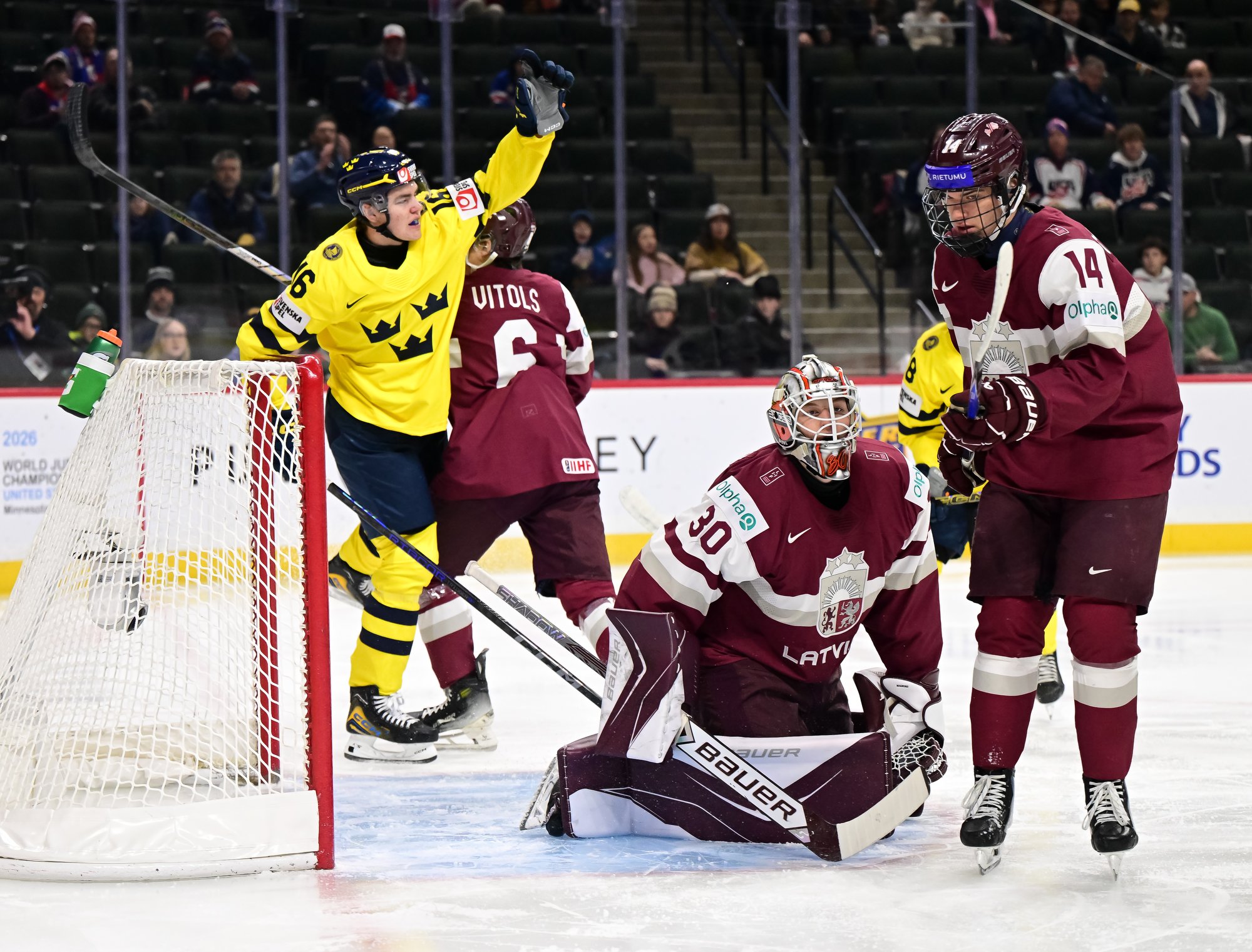It was business as usual. Undefeated Sweden employed a balanced attack to down Latvia 6-3 in the first quarter-final of the 2026 IIHF World Junior Championship on Friday.