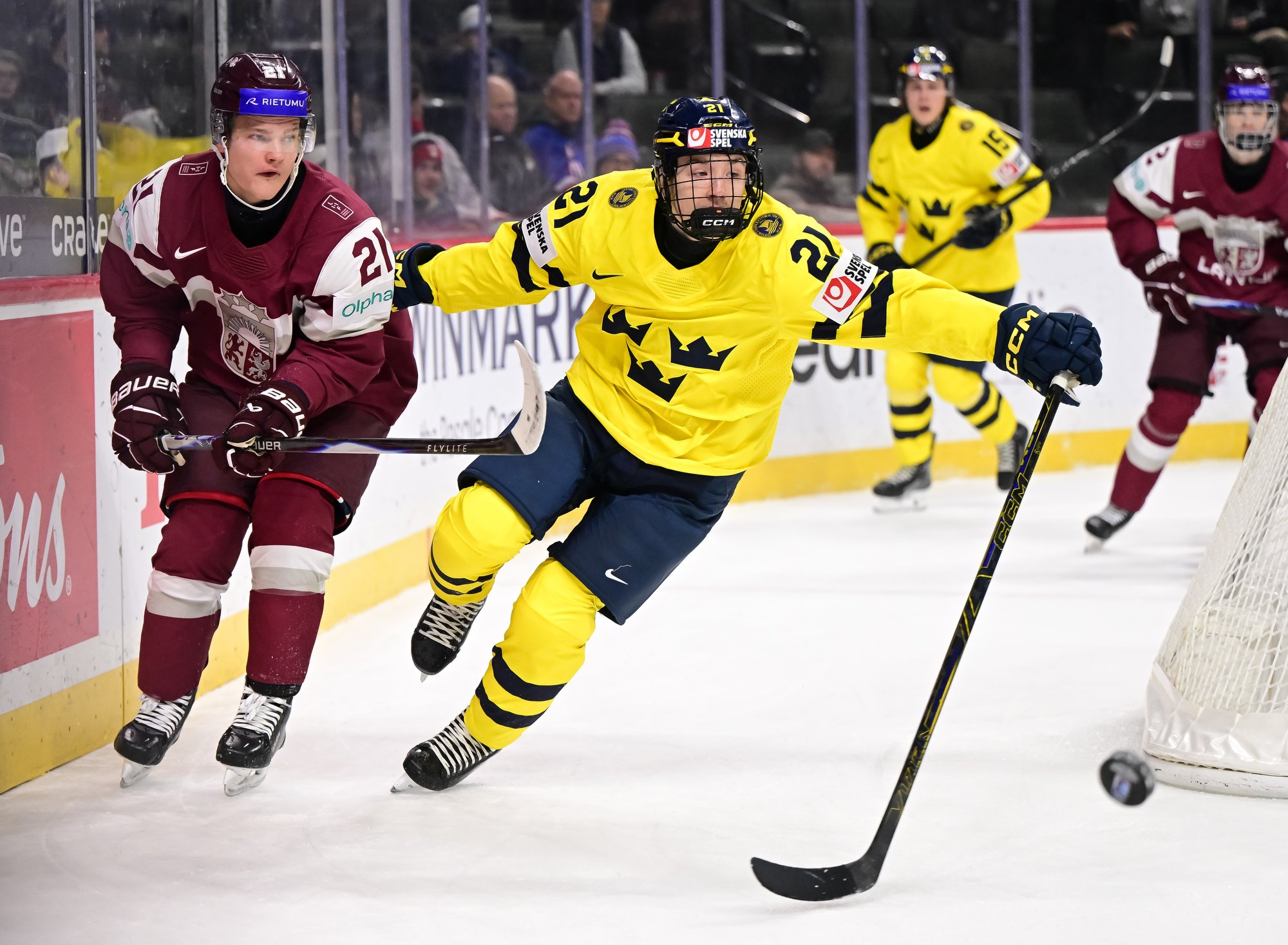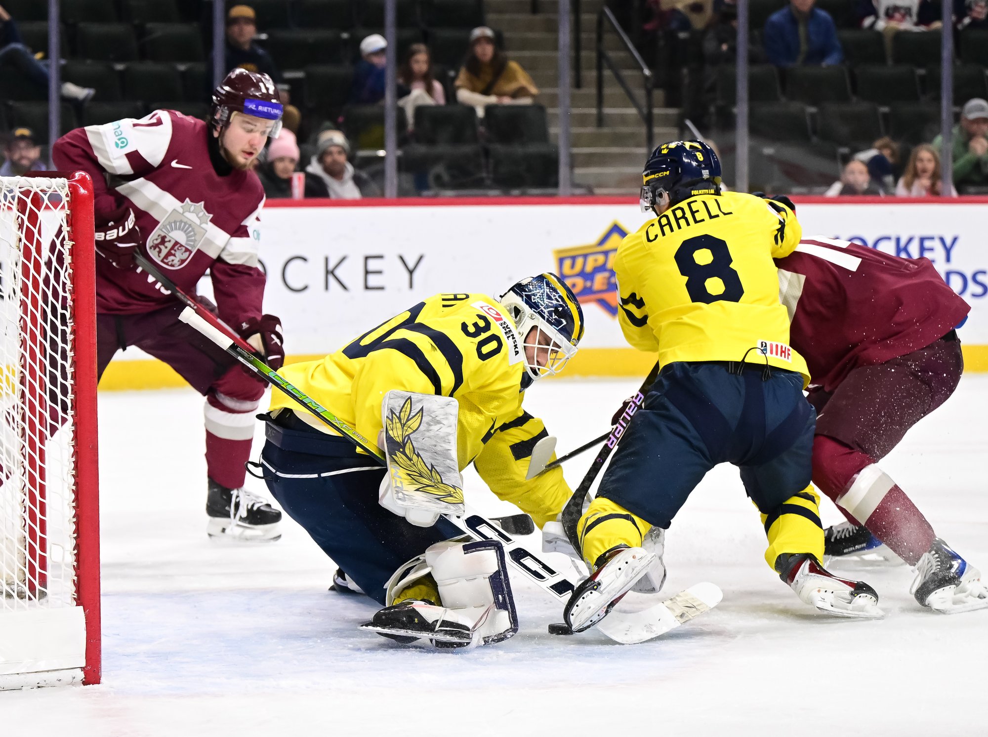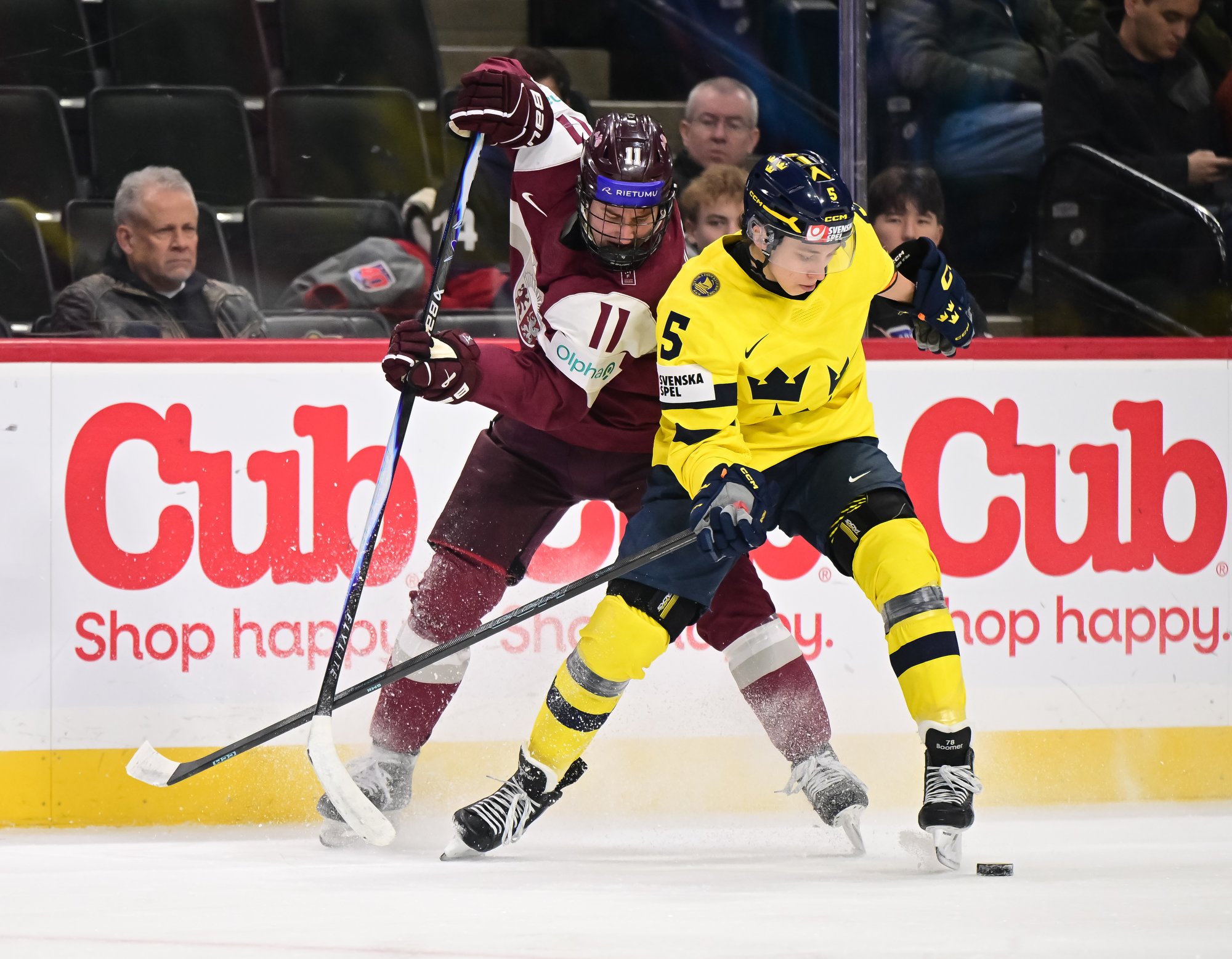 It was business as usual. Undefeated Sweden employed a balanced attack to down Latvia 6-3 in the first quarter-final of the 2026 IIHF World Junior Championship on Friday.