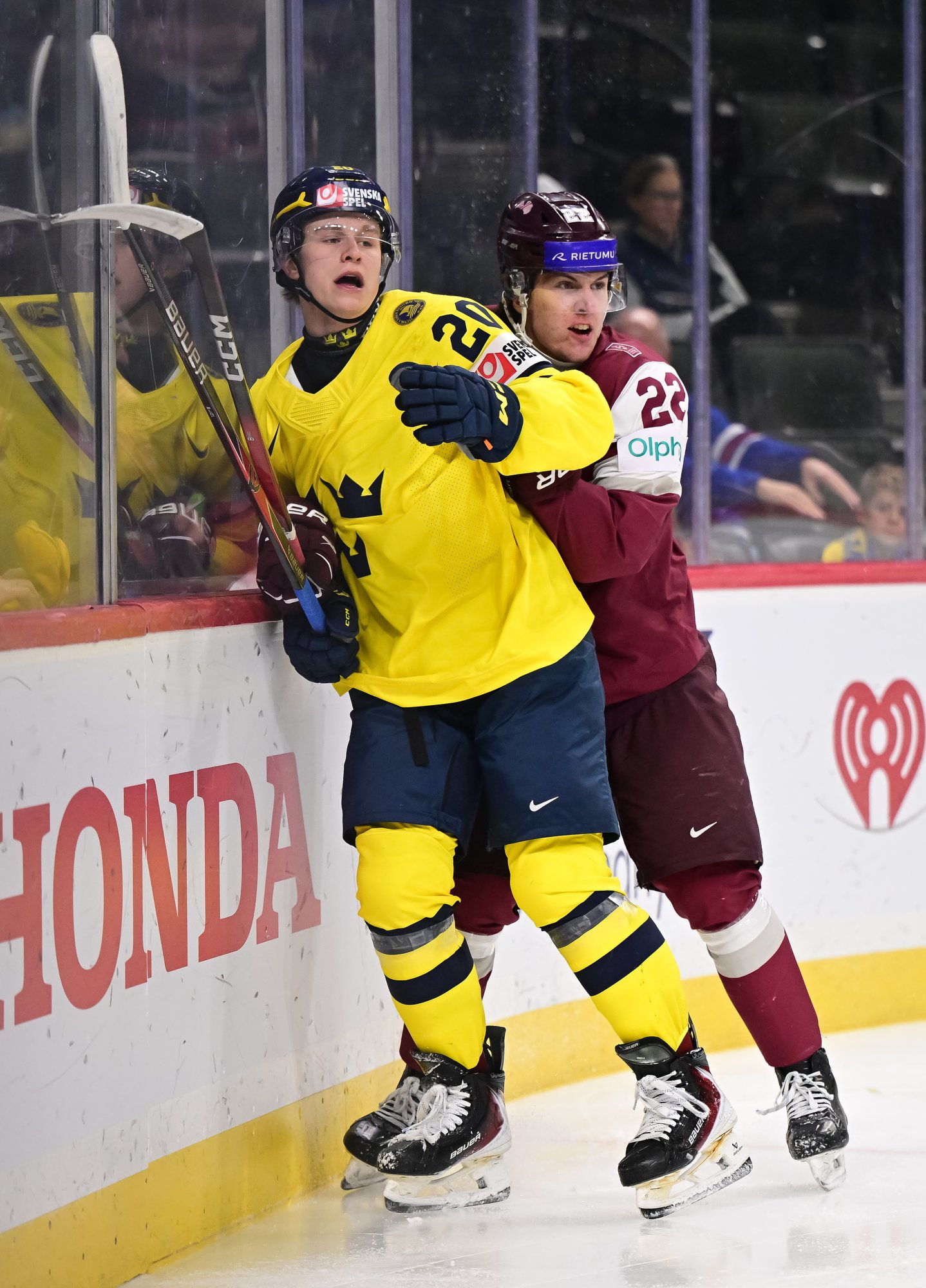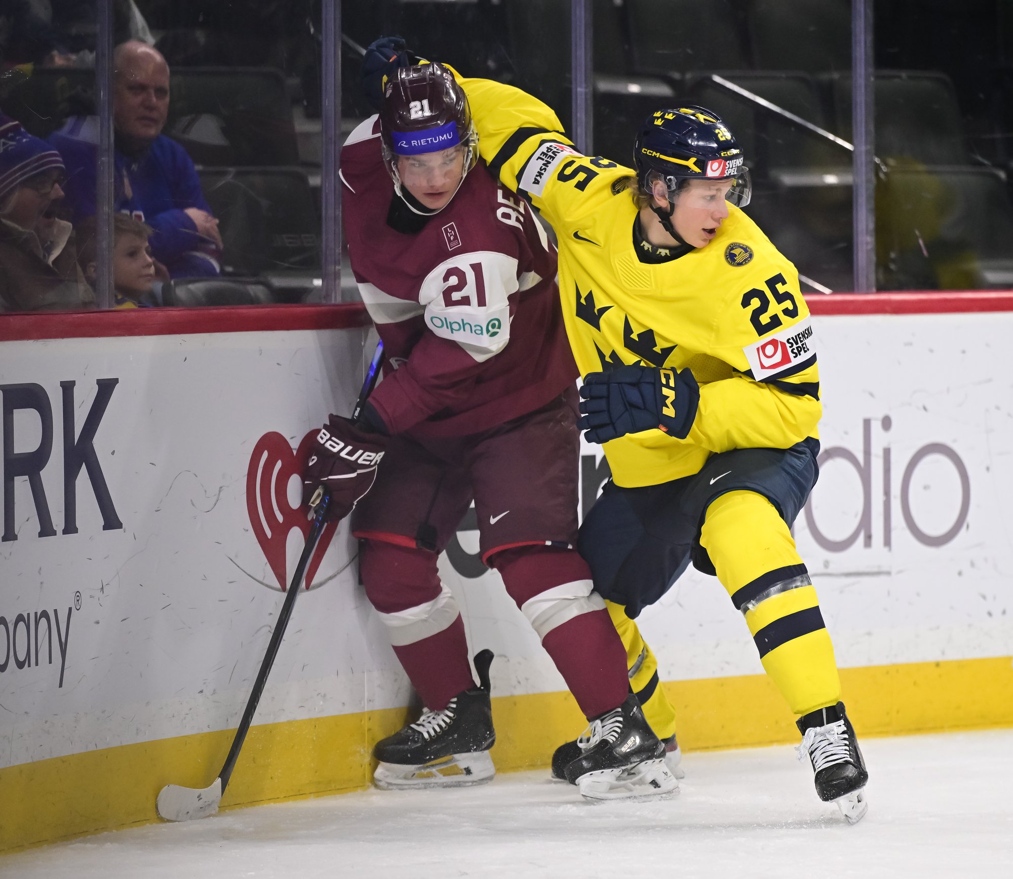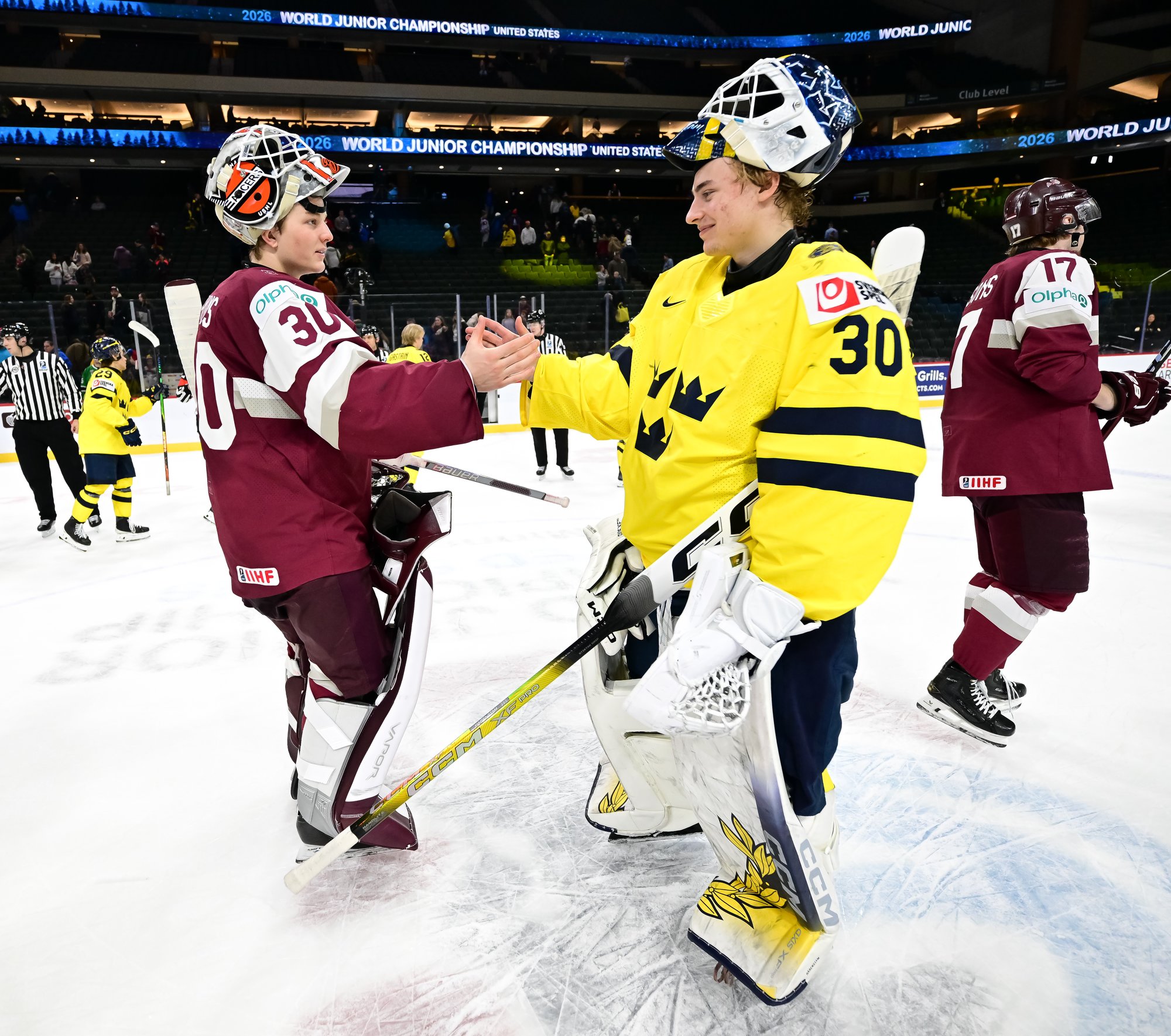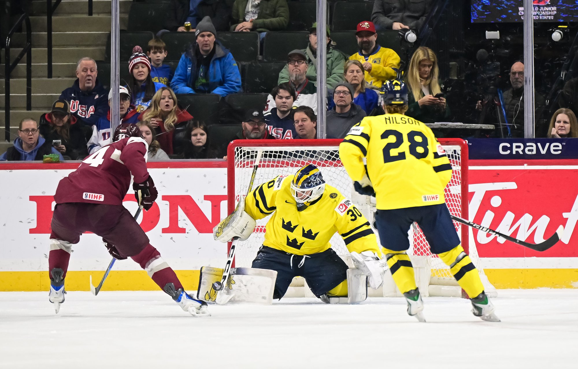 It was business as usual. Undefeated Sweden employed a balanced attack to down Latvia 6-3 in the first quarter-final of the 2026 IIHF World Junior Championship on Friday.