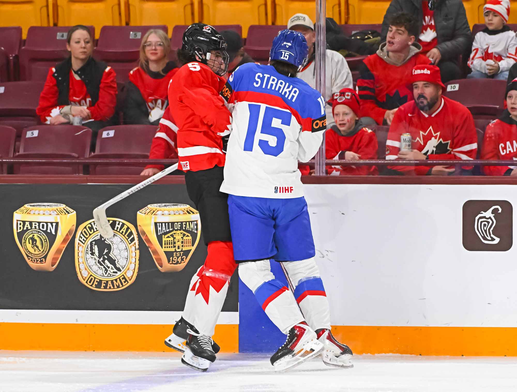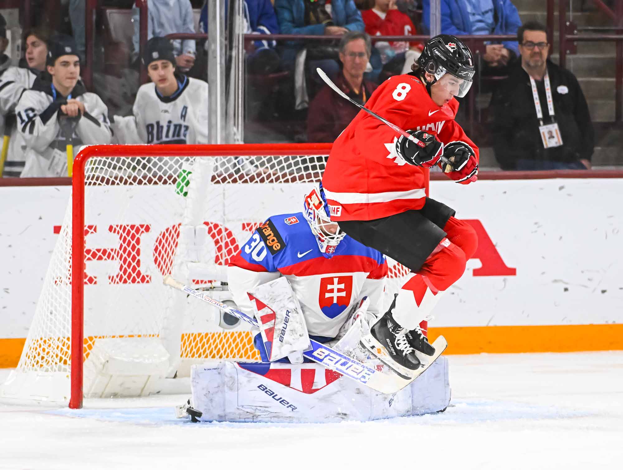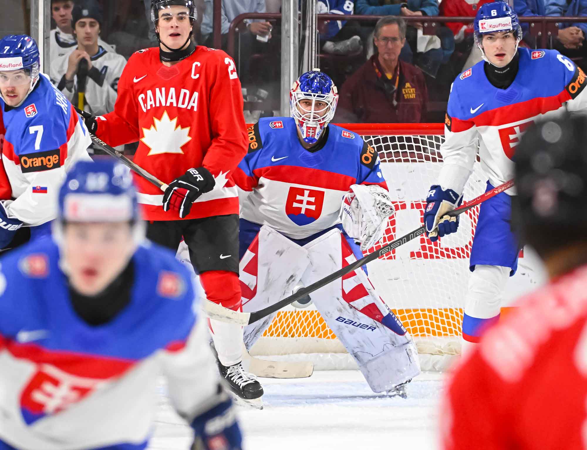 The Canadians took their foot off the gas briefly, and Slovakia sensed as much, producing their best couple of minutes of the game. They got some measure of satisfaction by breaking Jack Ivankovic’s shutout. Jan Chovan snapped a high shot from the slot at 16:50 to make it a 7-1 game.