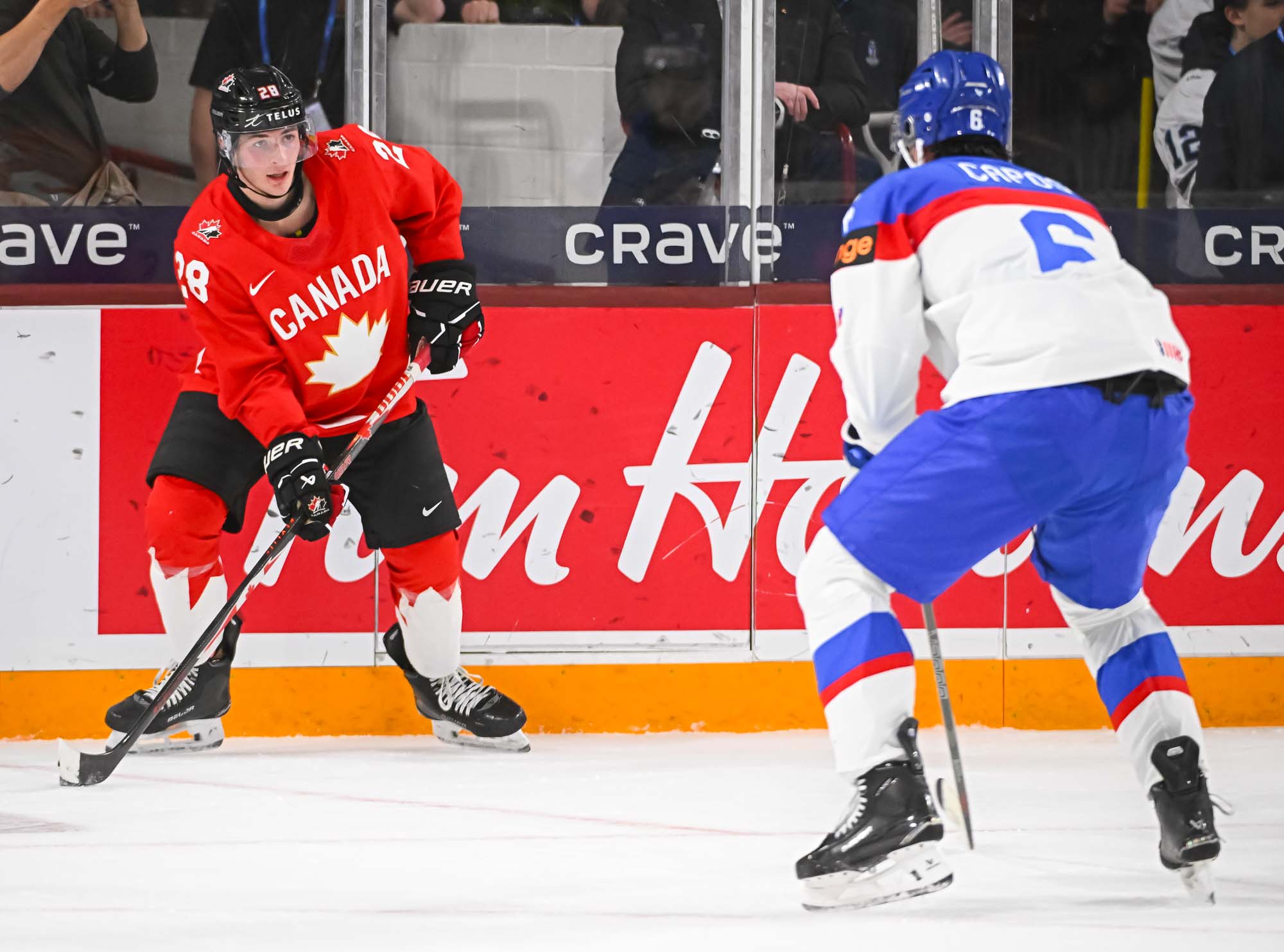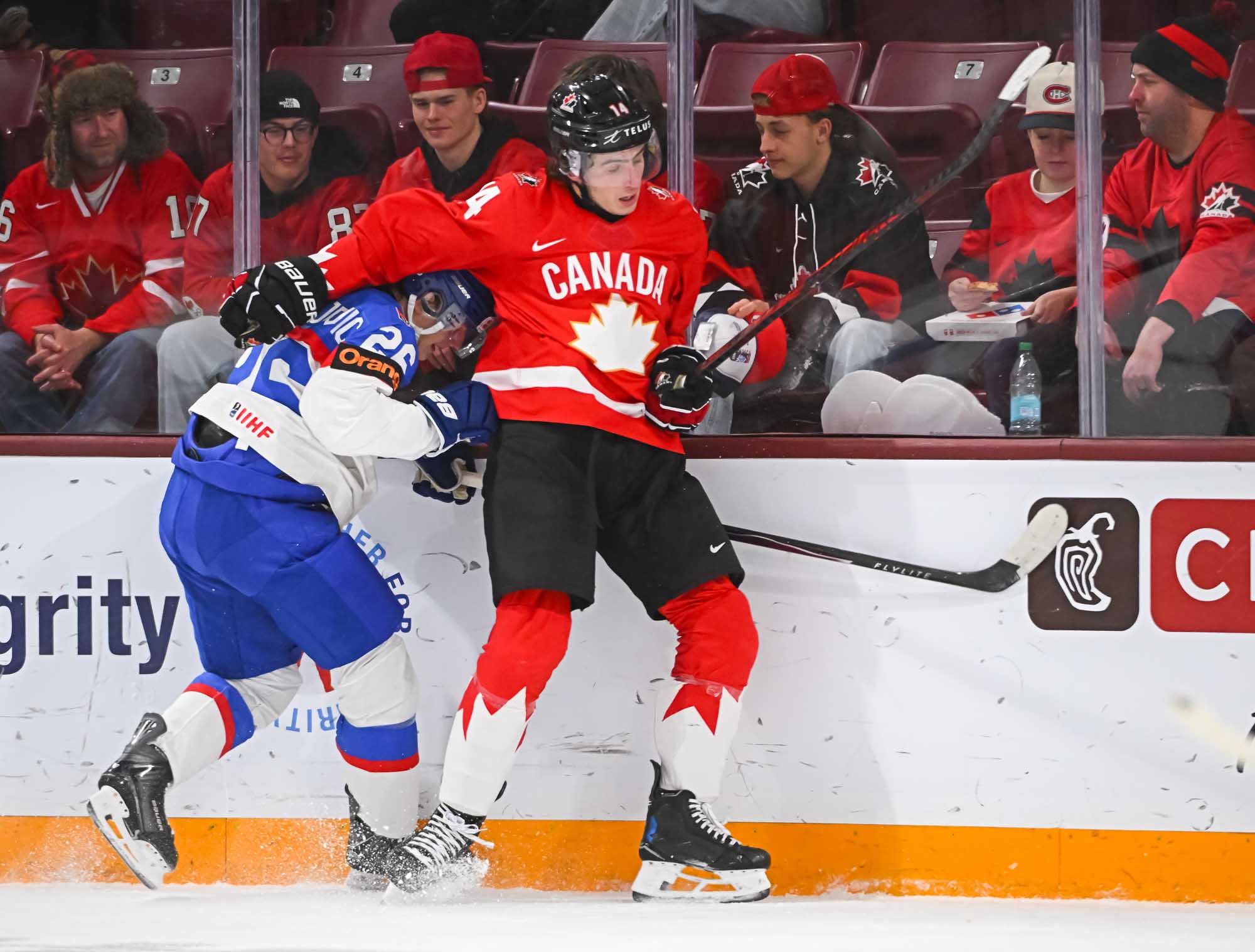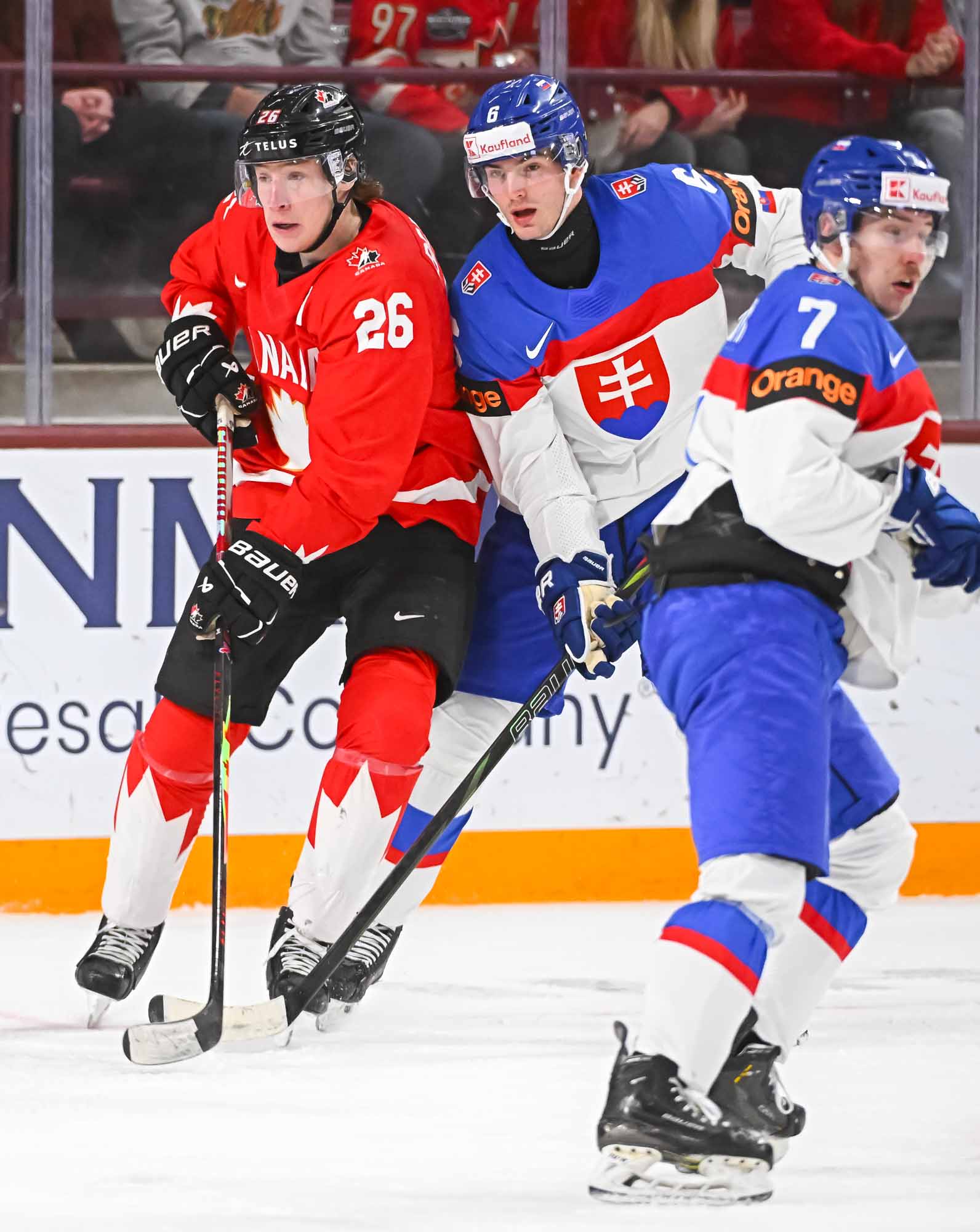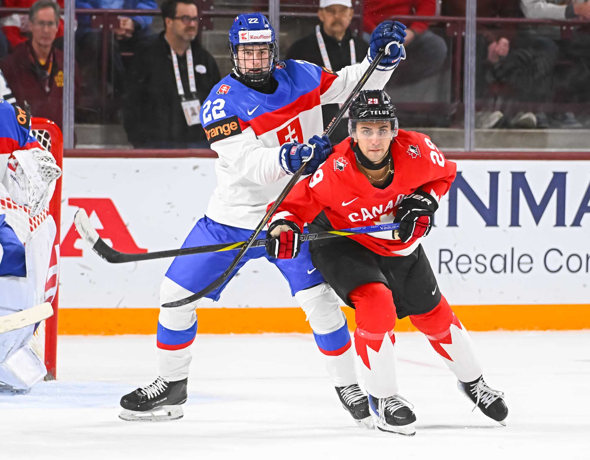 The Canadians took their foot off the gas briefly, and Slovakia sensed as much, producing their best couple of minutes of the game. They got some measure of satisfaction by breaking Jack Ivankovic’s shutout. Jan Chovan snapped a high shot from the slot at 16:50 to make it a 7-1 game.