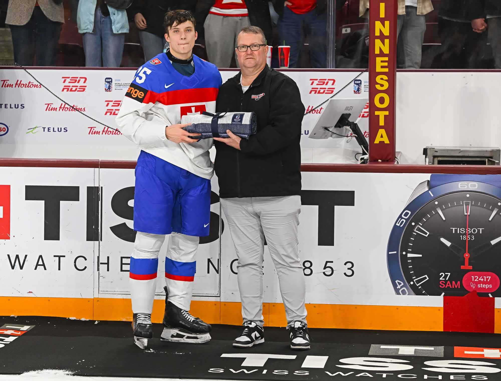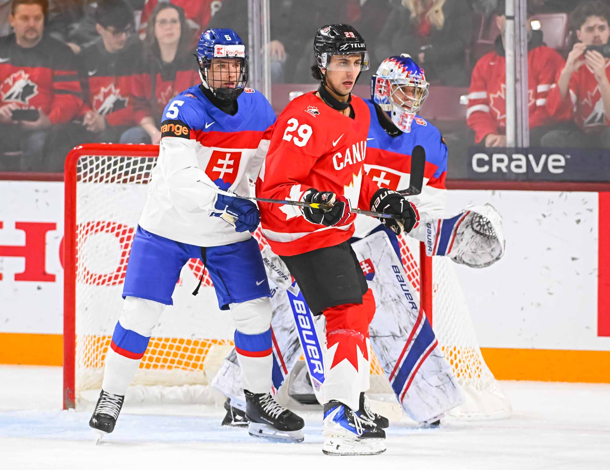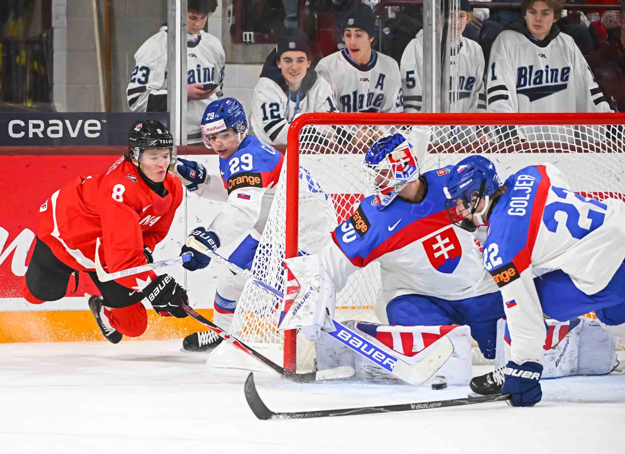 Then, in the dying seconds, Canada scored on the power play with 12.9 seconds remaining. The players whipped the puck around with impressive speed, and in the end Gavin McKenna found Brady Martin at the back door to make it an even 5-0 as a shell-shocked Slovakian team hurried to the dressing room to re-group.