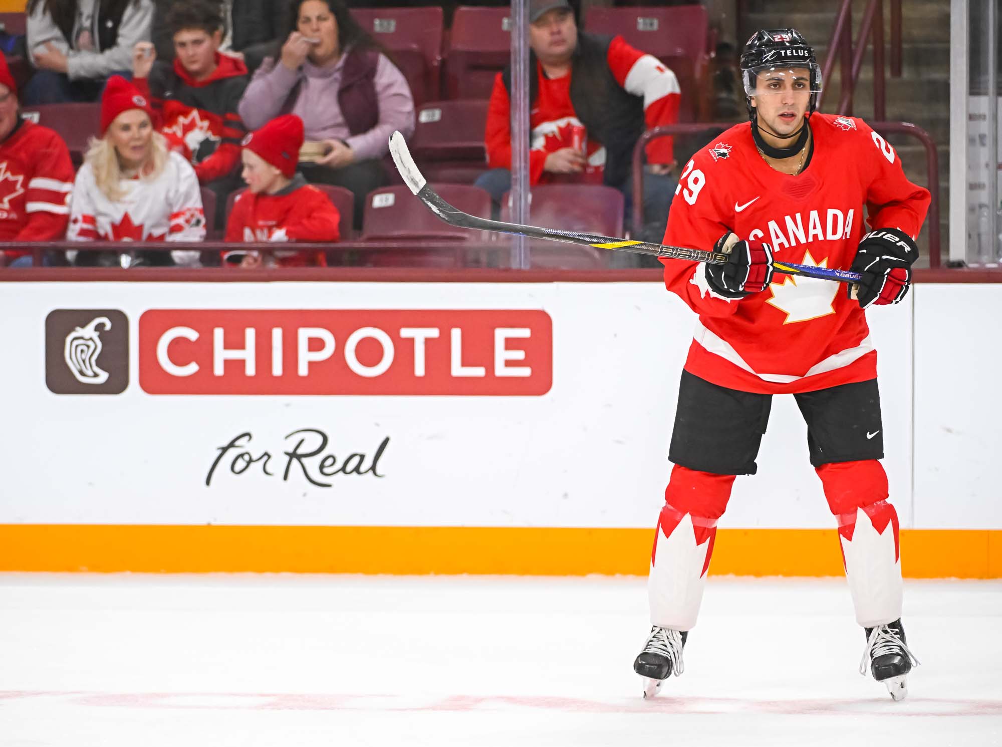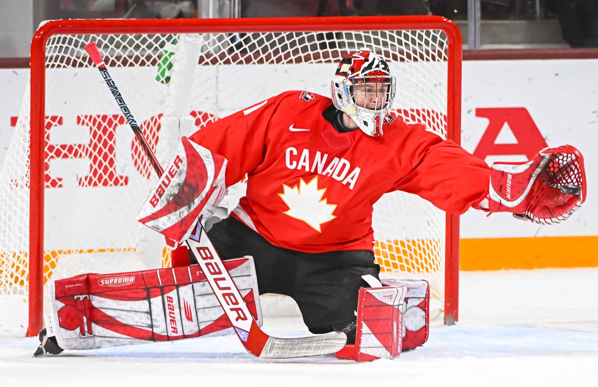 Just 44 seconds later, Canada struck again. Tij Iginla wired a shot from the left wing with Pradel deep in his net, giving Jarome’s son plenty of net to work with. Fast forward another minute and a half, and Michael Misa beat Pradel with a low shot through traffic.