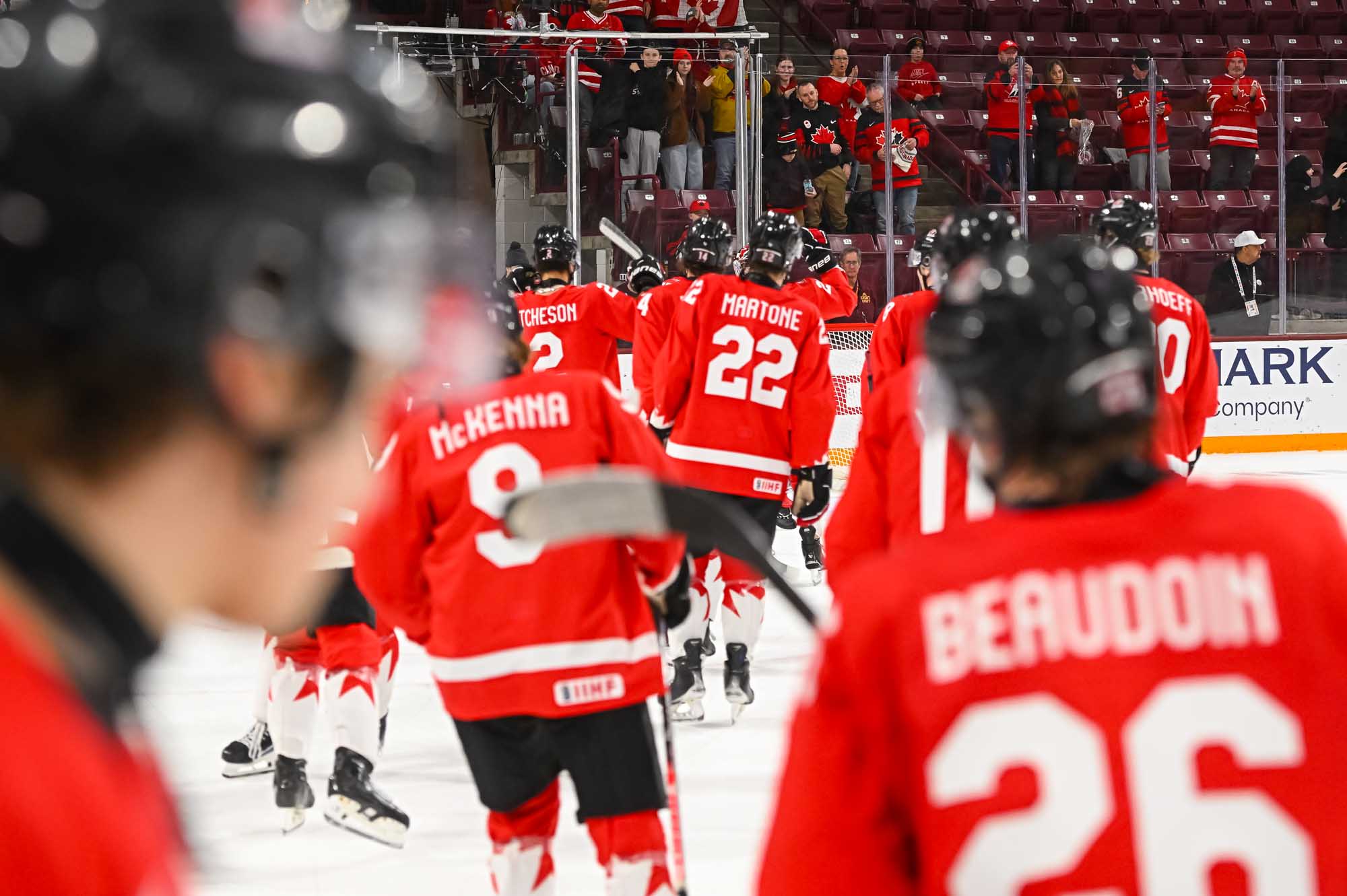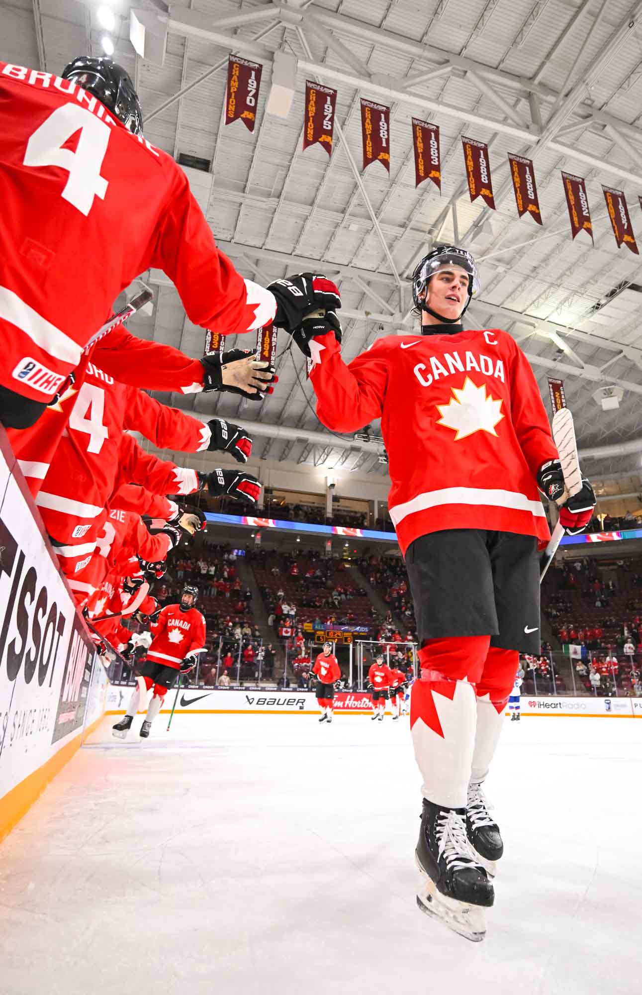 "We had a game plan and we stuck to it, and I think that's why we were able to get that big lead," said Canada's Cole Reschny. "Hockey is a game of momentum. We got one and then another, and we kept going and going and didn't let up at all."