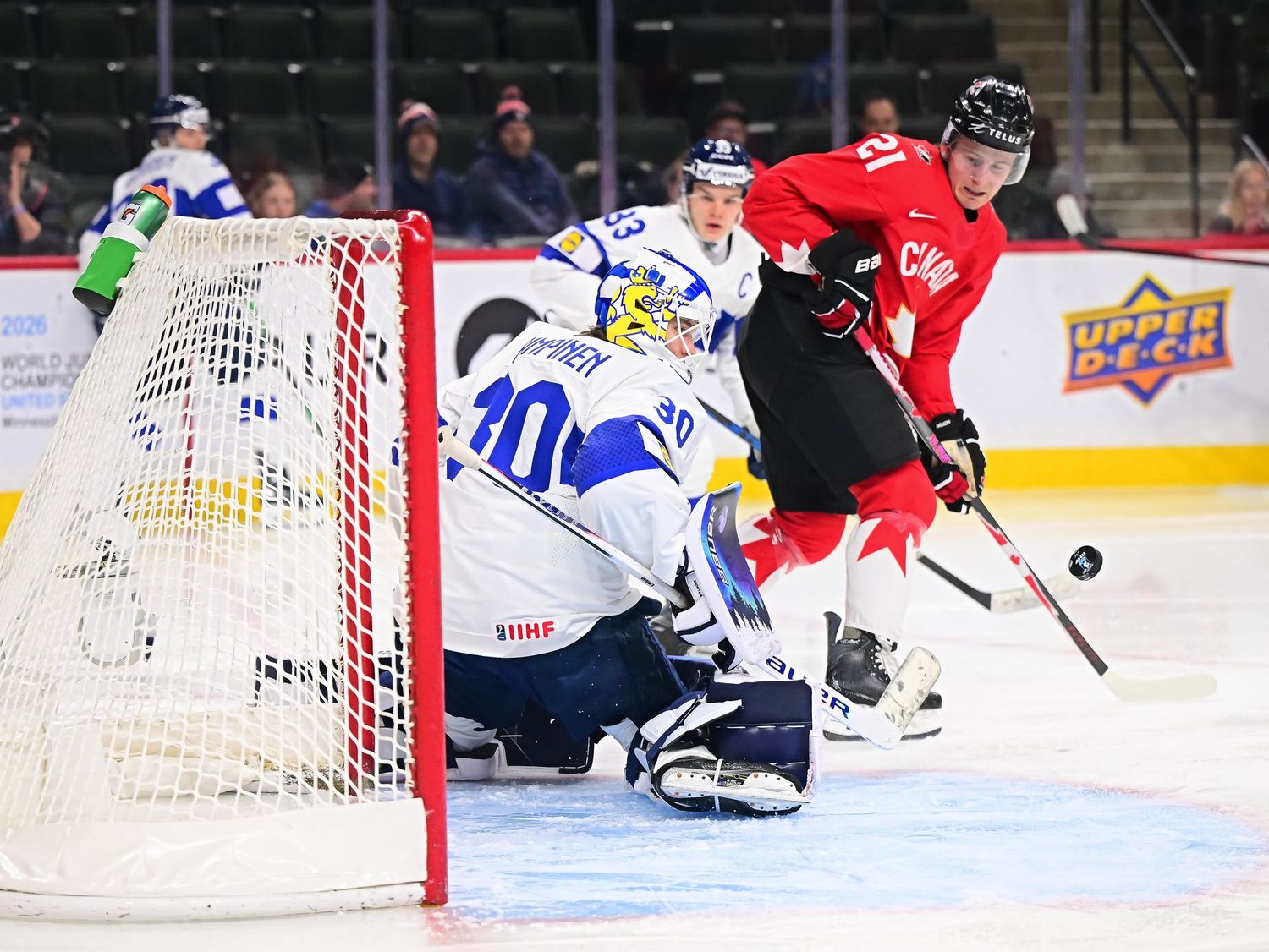 The third period saw Rimpinen stopping Jett Luchanko on a shorthanded breakaway. But his Finnish teammates couldn't pay him back by getting a goal, despite outshooting Canada 17-6 in the last 20 minutes.