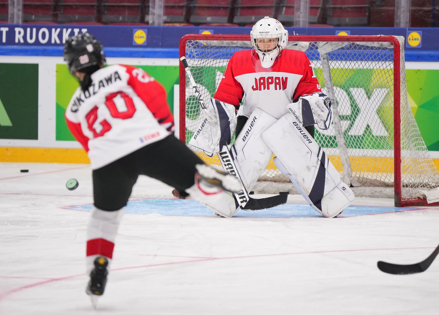 Lopusanova keräsi toisen pisteensä kolme minuuttia ennen erän loppua. Hän otti kiekon puolustusalueen aloituksesta, purjehti keskialueen läpi, ohitti Japanin puolustuksen ja laukoi kiekon Kuromarun hanskakäden puolelle.