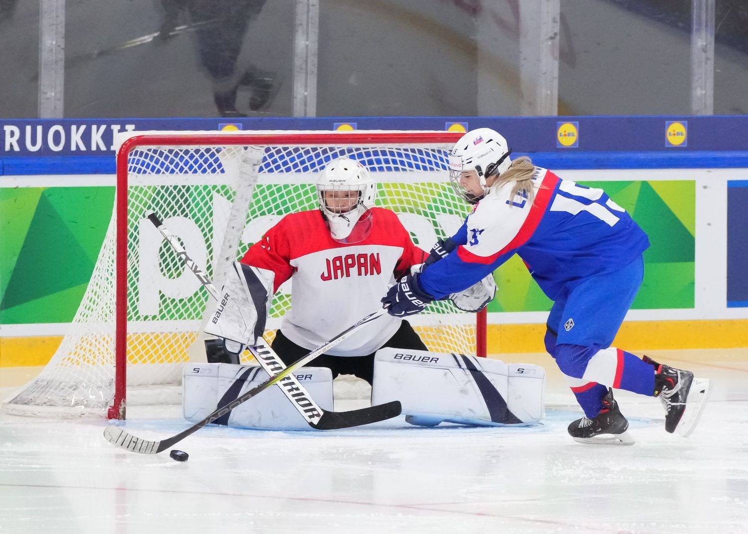 Erän viimeisellä minuutilla Lenka Karkoškova poimi irtokiekon hyökkäyssiniviivalla ja laukoi ranteella kiekon Kuromarun hanskakäden yläkulmaan.